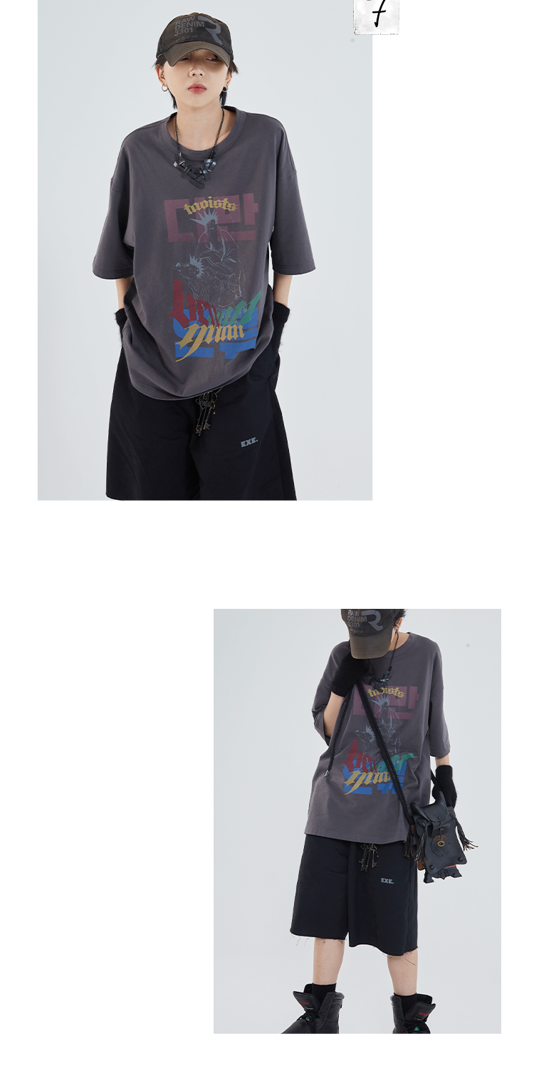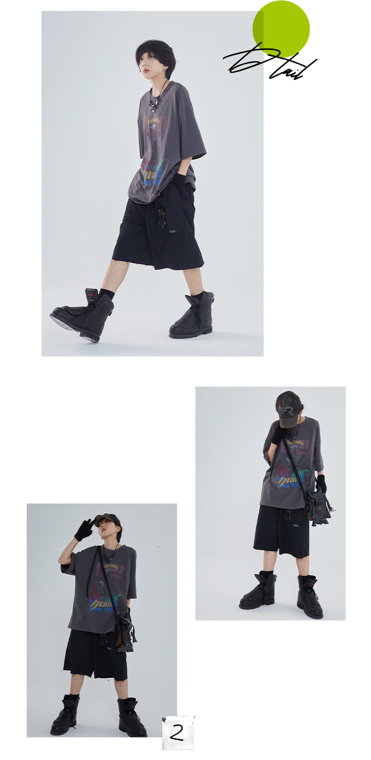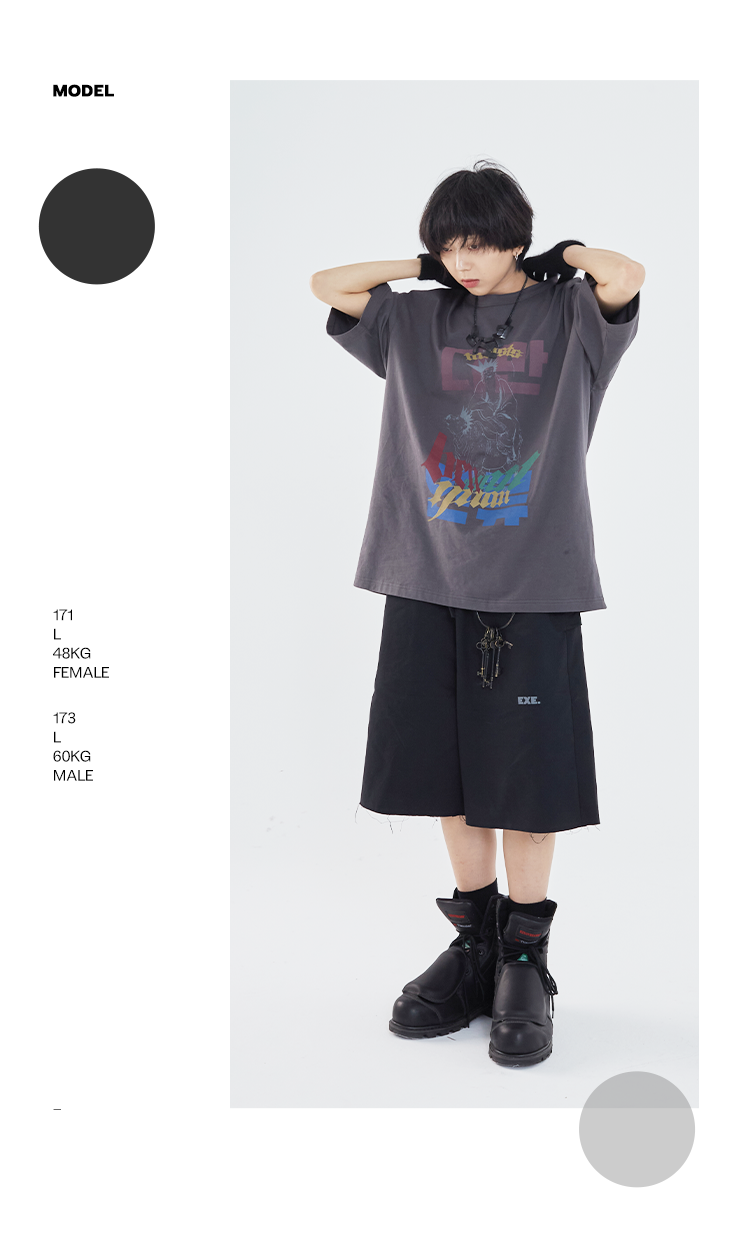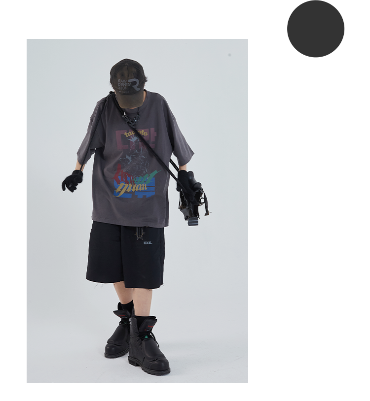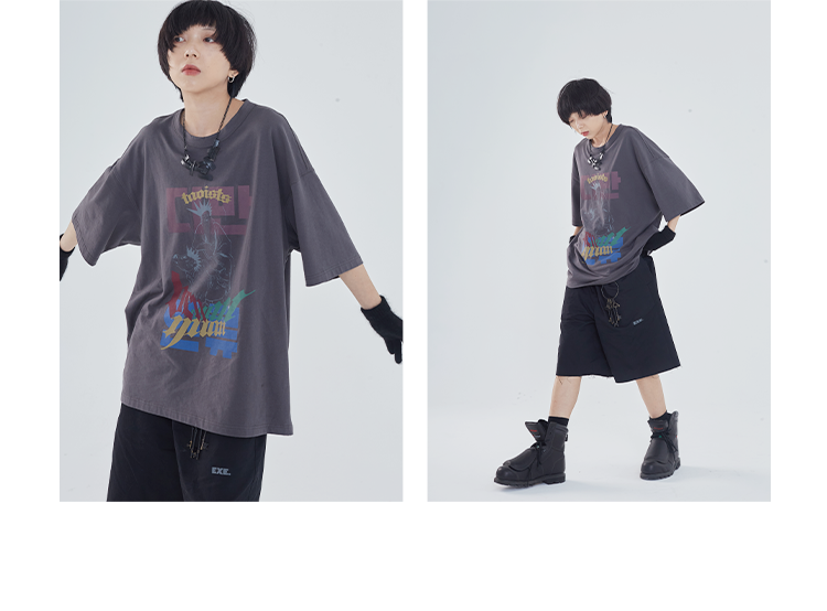 POH「道」街头休闲印花国潮落肩短袖男夏季潮牌设计感规格潮流T恤