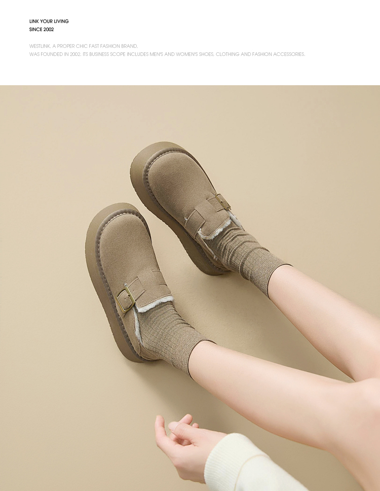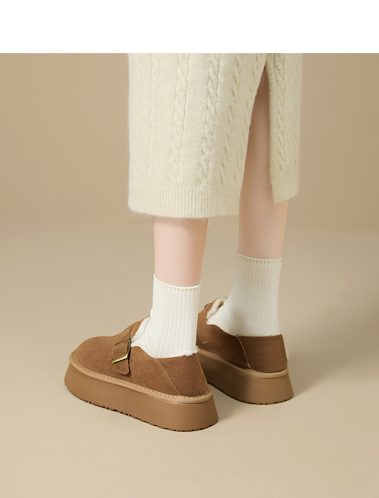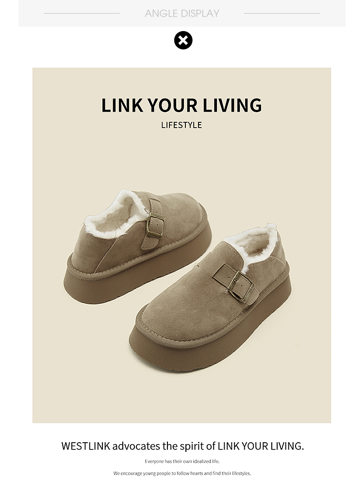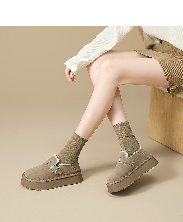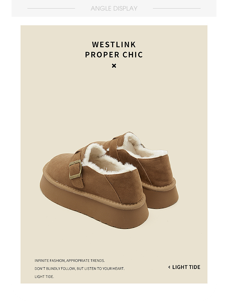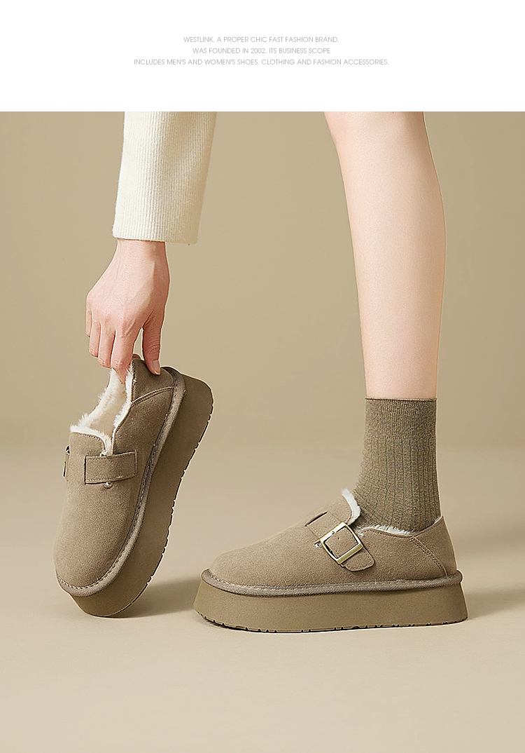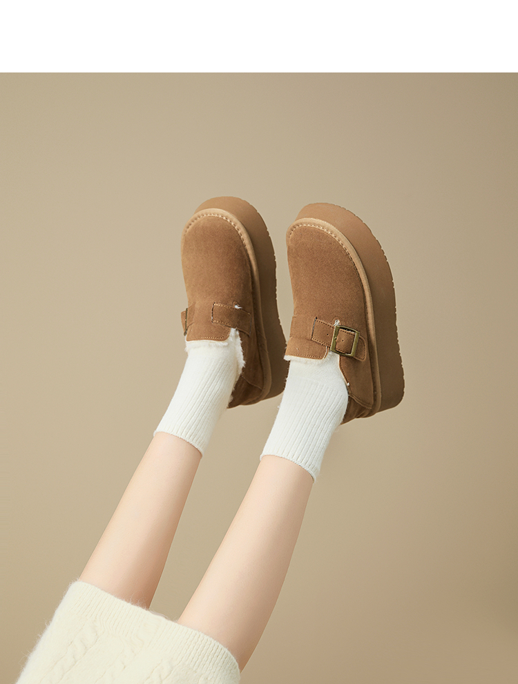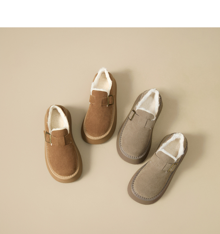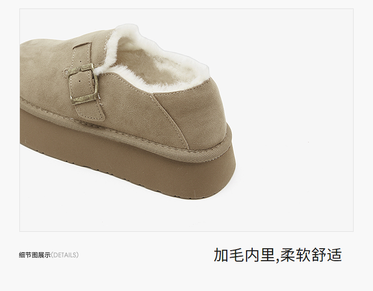 西遇厚底加绒勃肯鞋女新款冬季毛毛博肯雪地靴外穿保暖棉鞋D0034415
