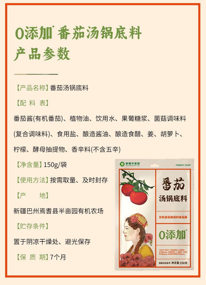 番茄汤锅底料(新疆有机番茄加工)150g/袋*4袋 商品图7