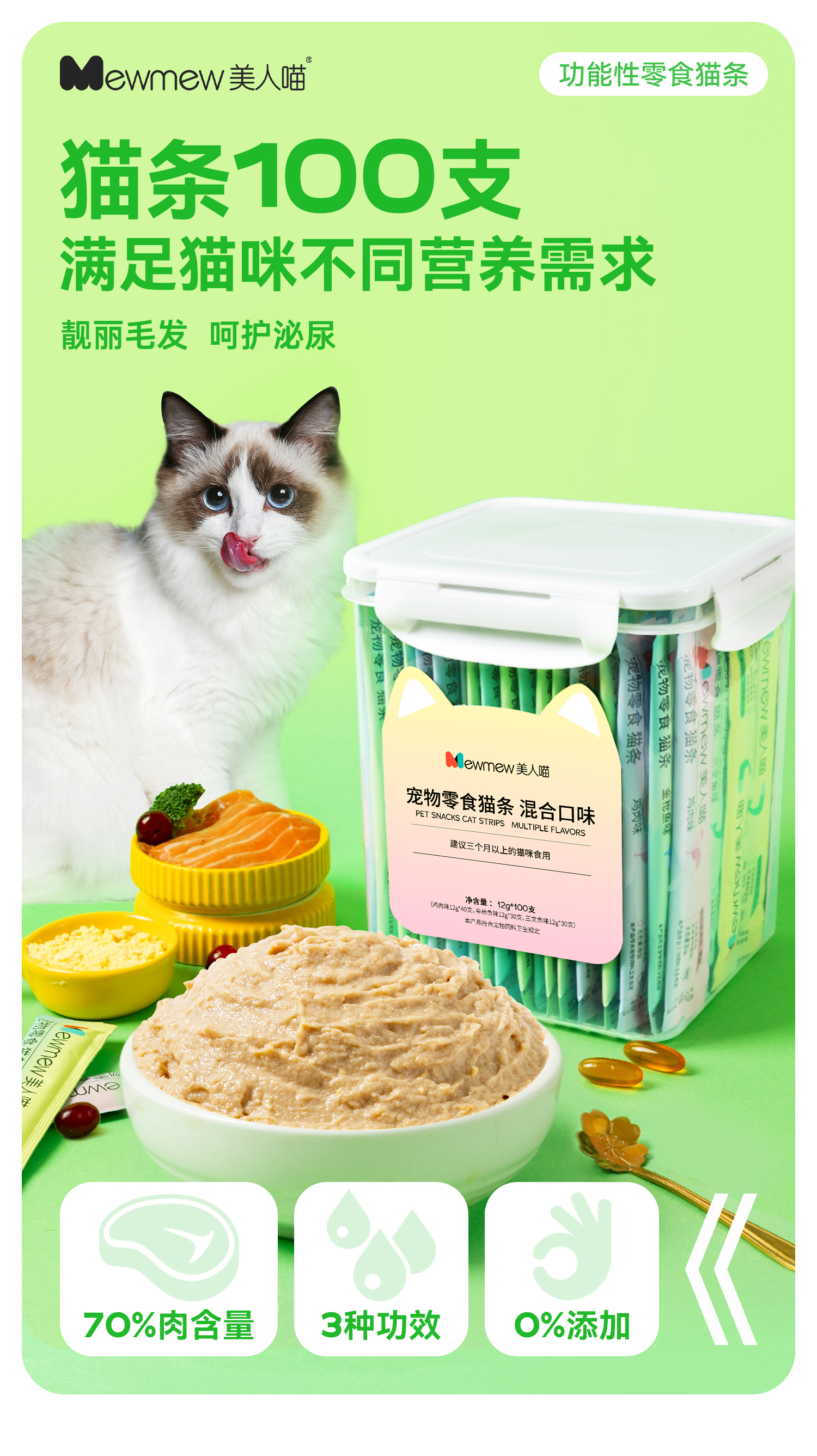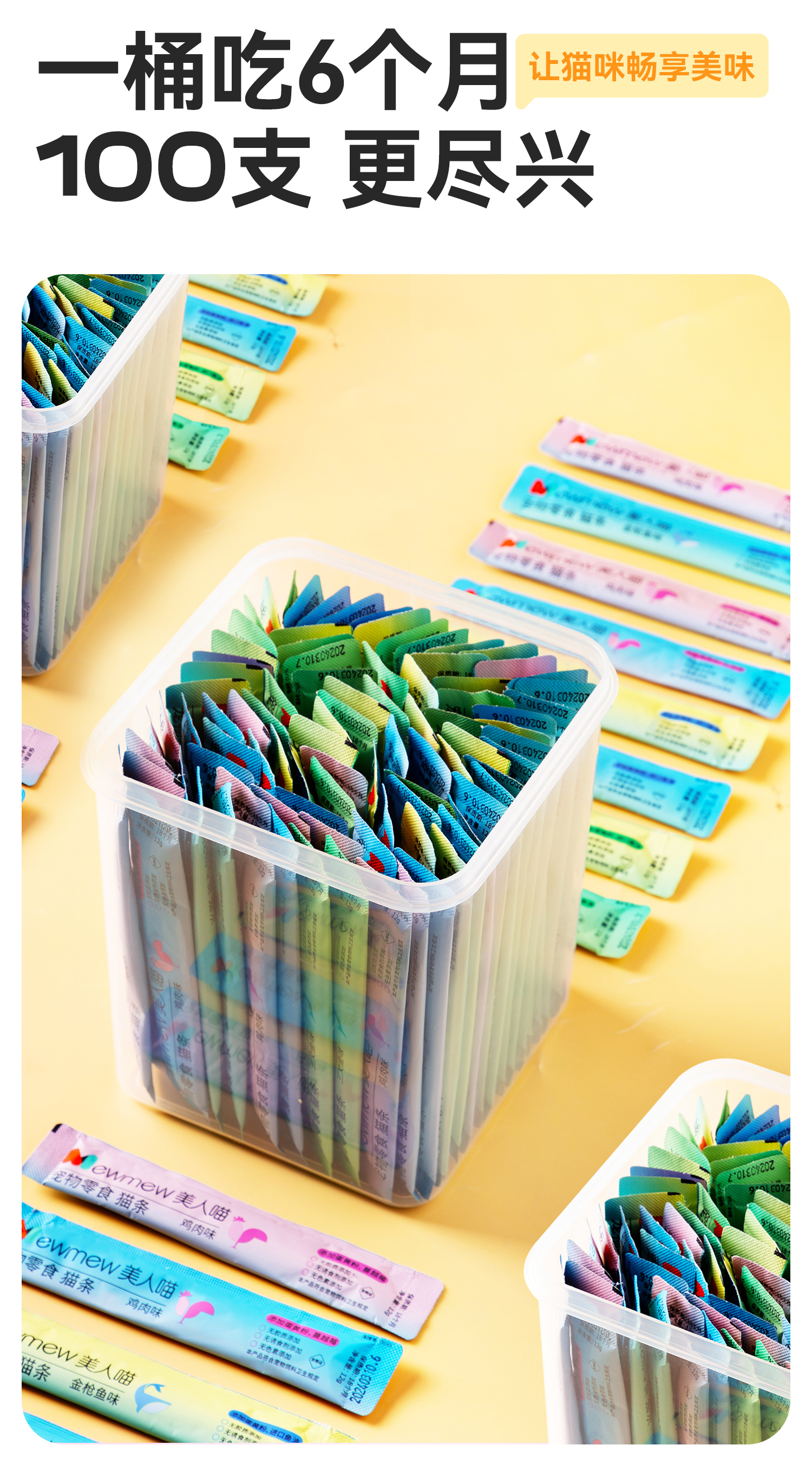 【新品特惠】猫条100支桶装 猫咪零食鱼油防掉毛小幼猫专用营养增肥成猫罐头