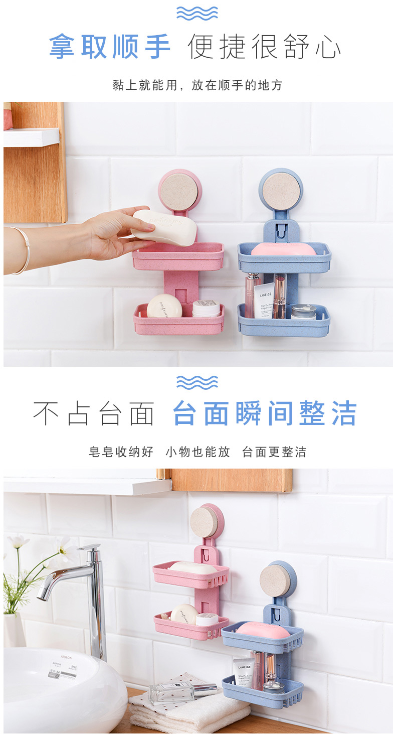 传枫 浴室香皂置物架肥皂收纳盒免打孔双层(颜色随机) CF-2026