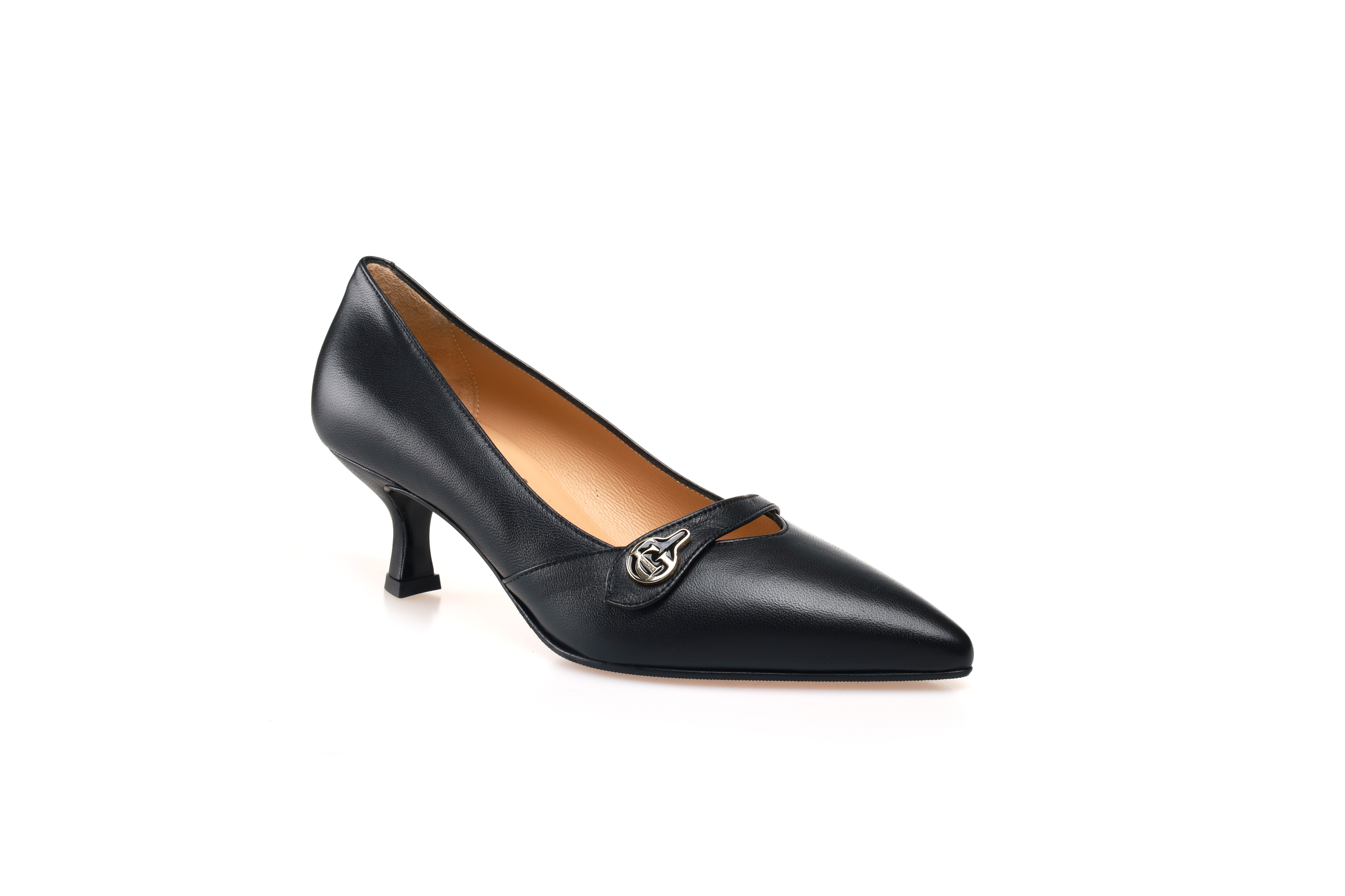 豪麟名鞋奥莱进口迪嘉女鞋皮鞋羊皮革FW23443P黑色 原价4260元