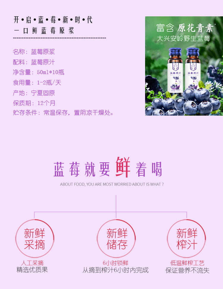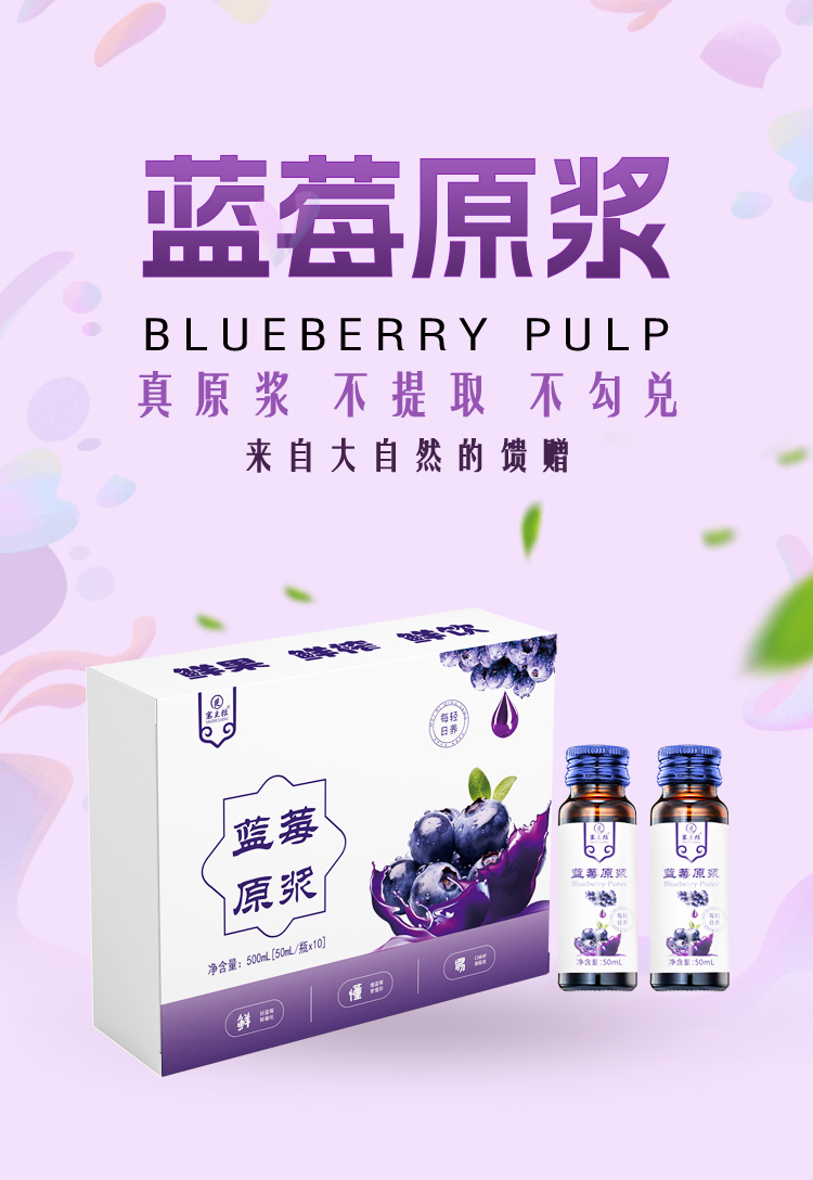 【质农】大兴安岭蓝莓原浆50ml*10瓶礼盒