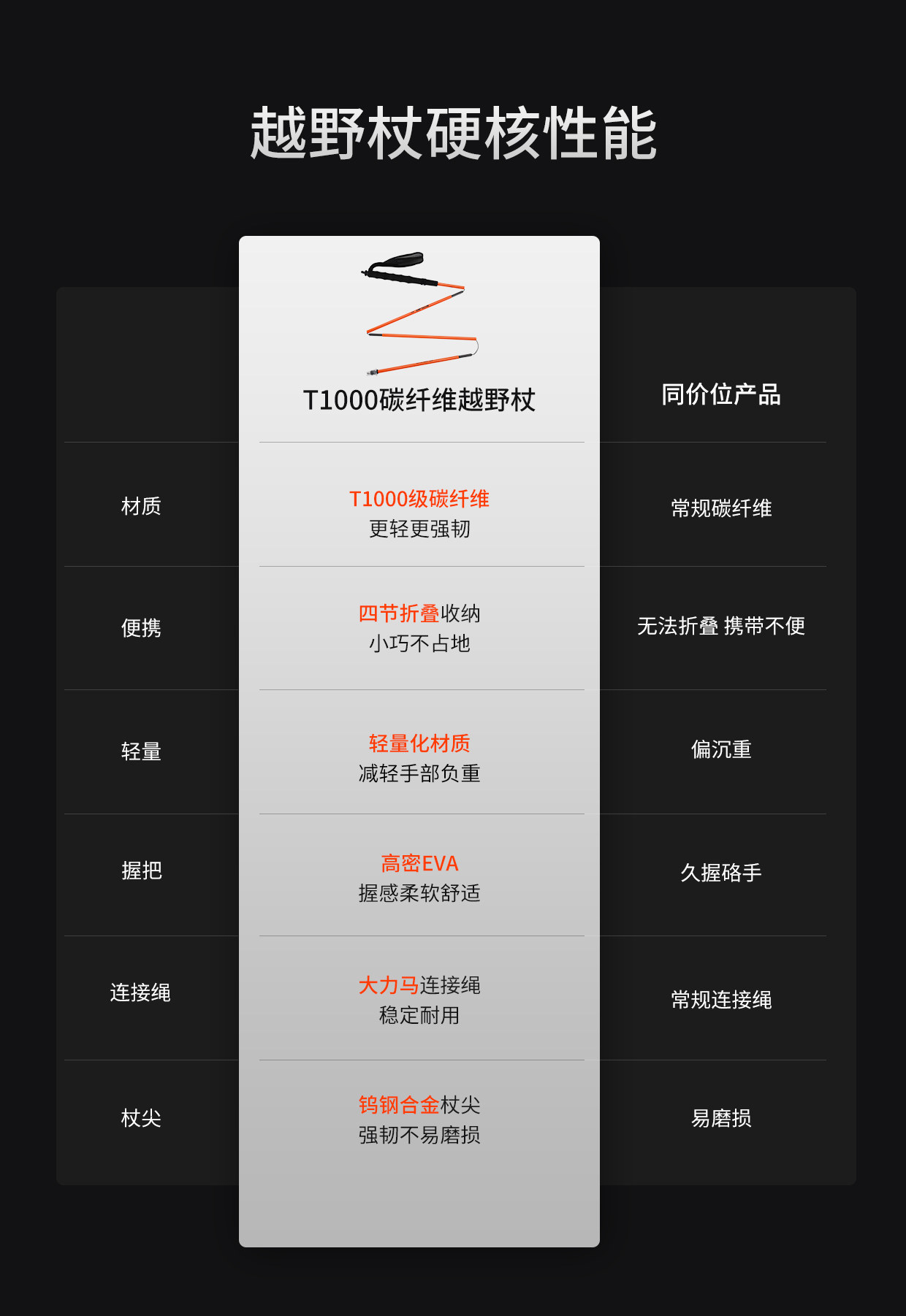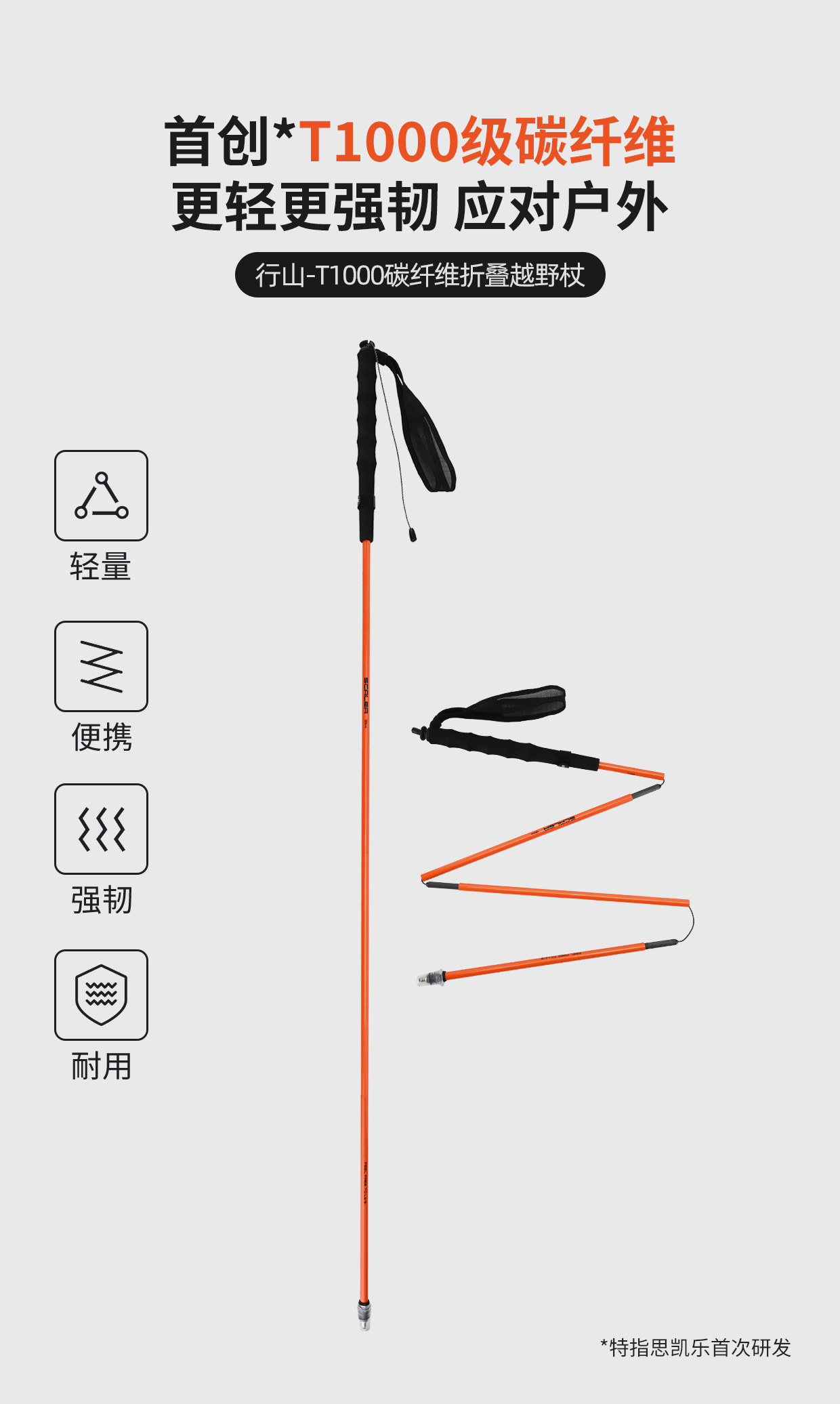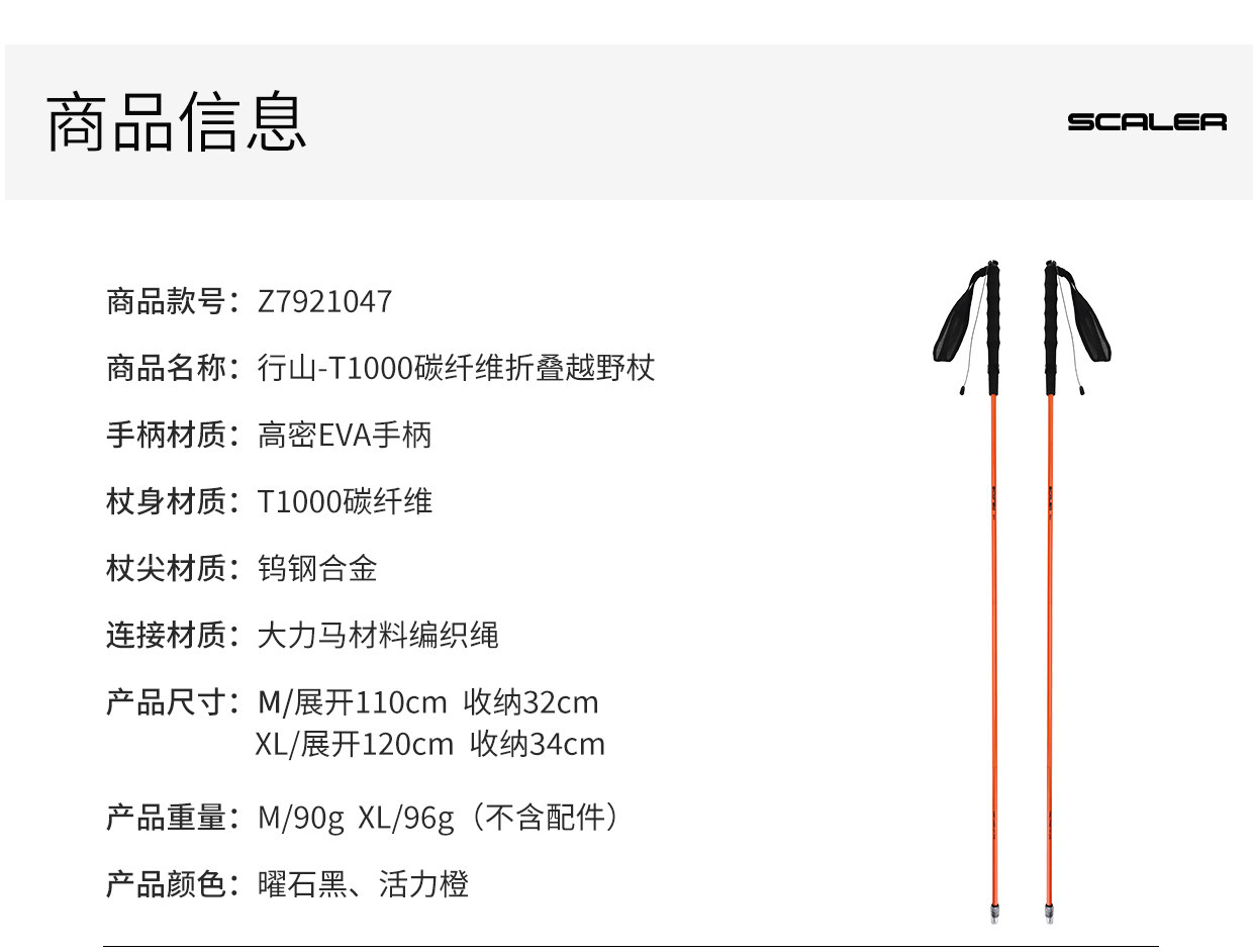 +【乐粉专属】[行山T-1000]思凯乐户外登山杖折叠碳纤维竞速跑步徒步专业越野杖Z7921047