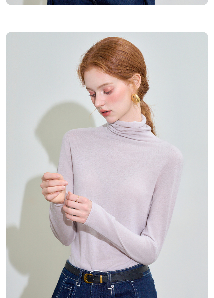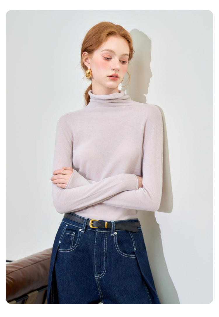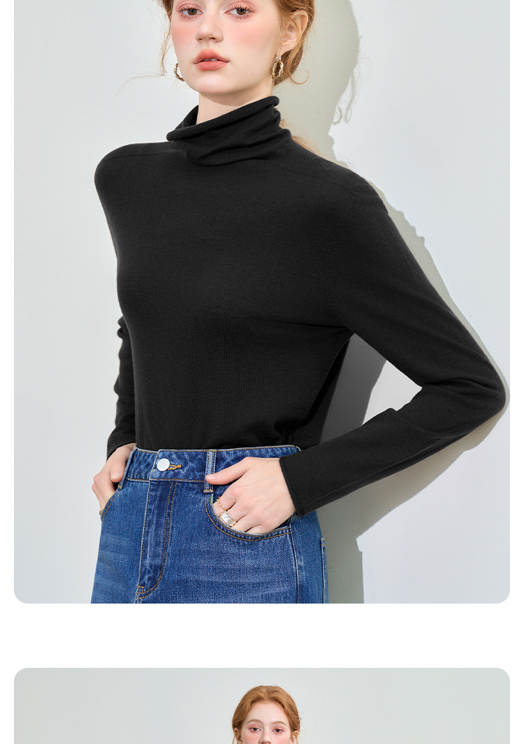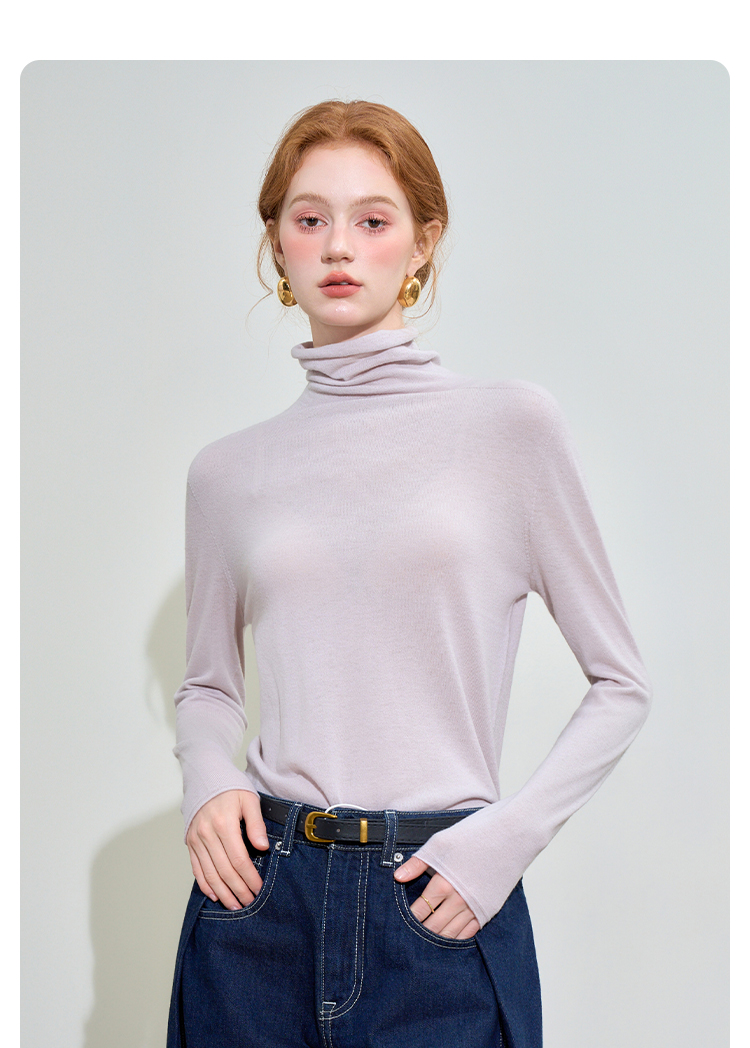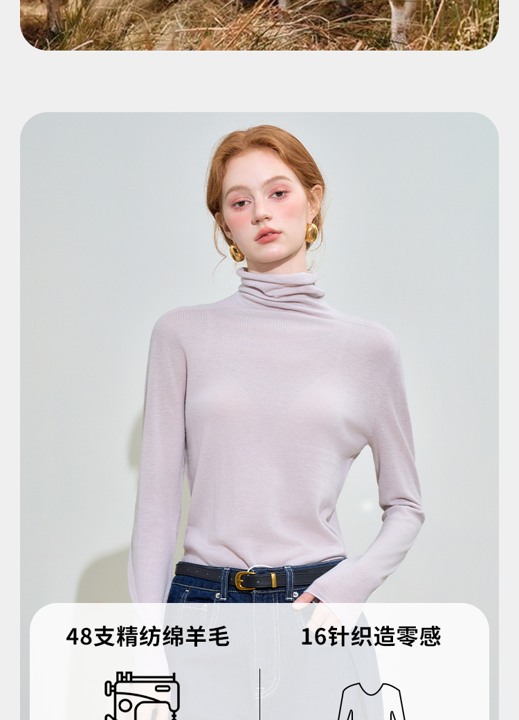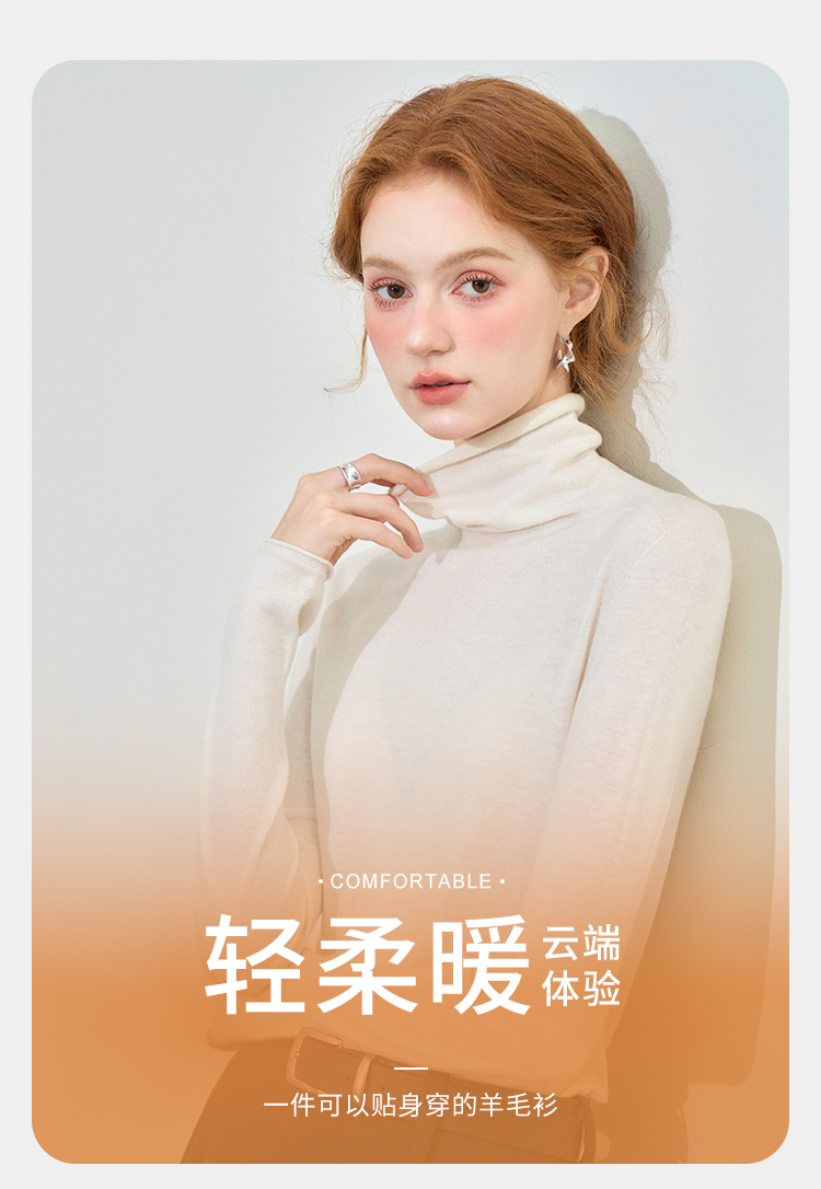 100%羊毛高领长袖毛衣女秋季轻薄保暖内搭上衣SS140279