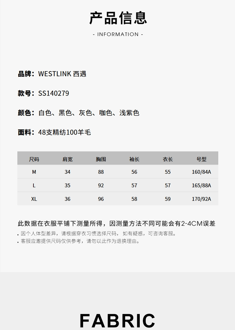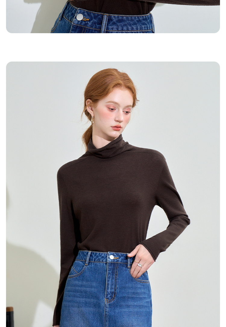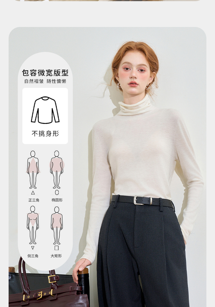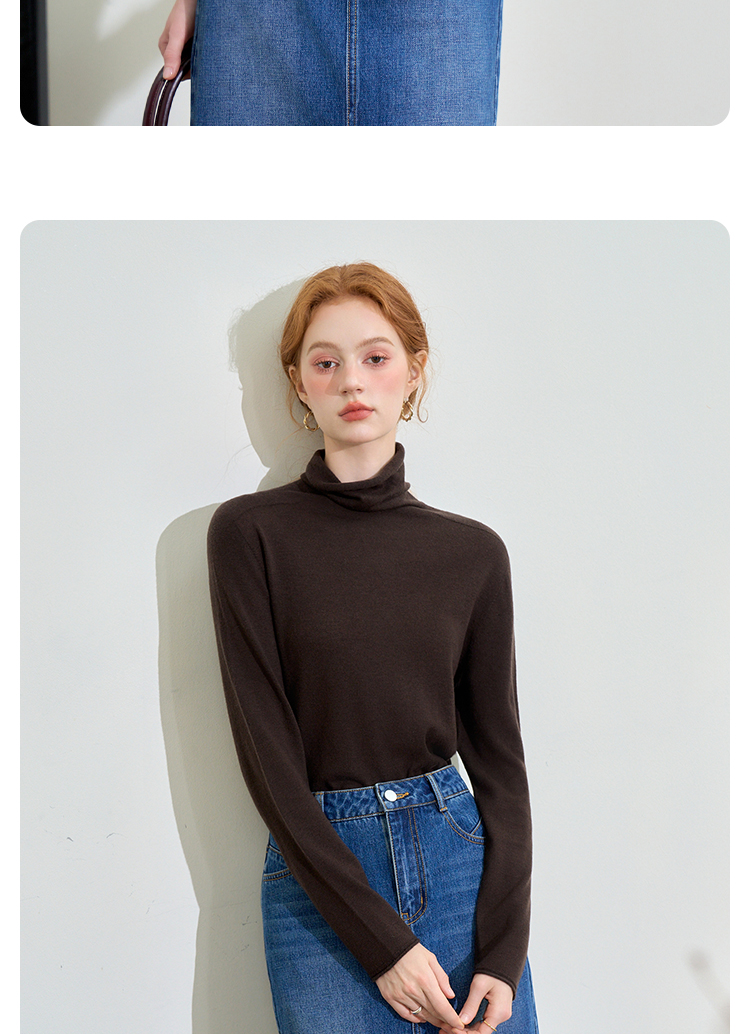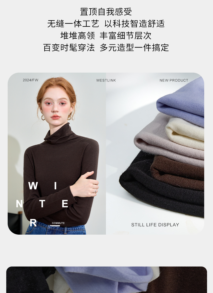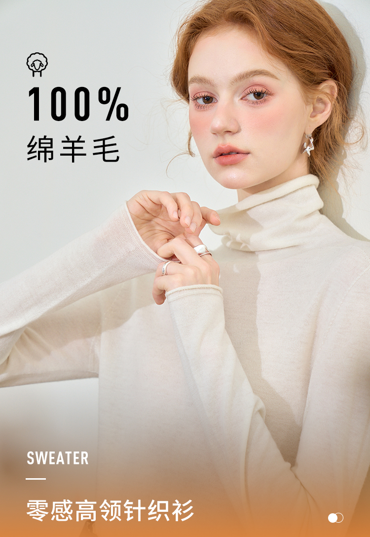 100%羊毛高领长袖毛衣女秋季轻薄保暖内搭上衣SS140279