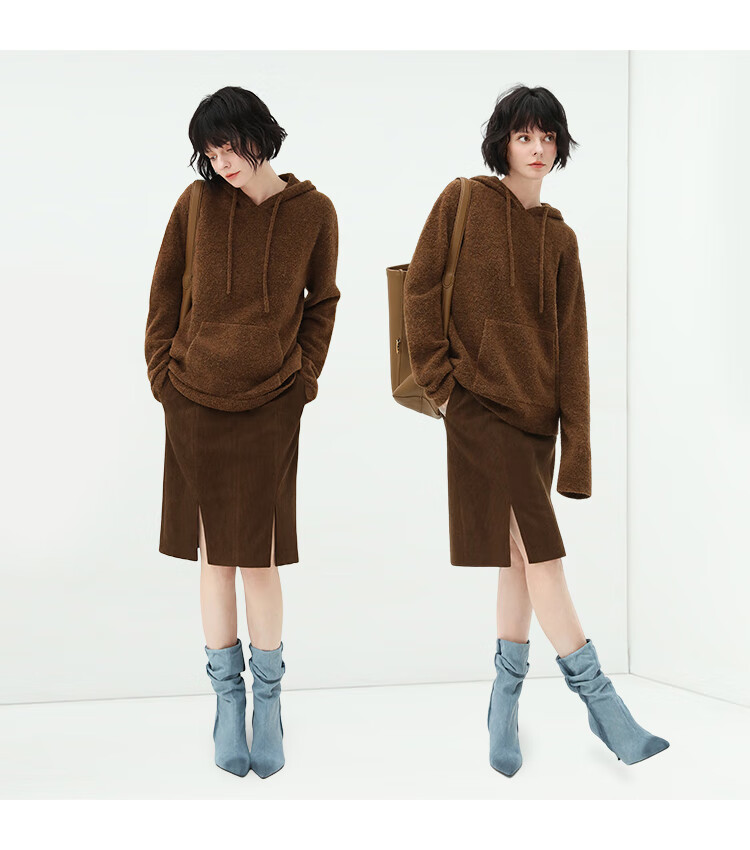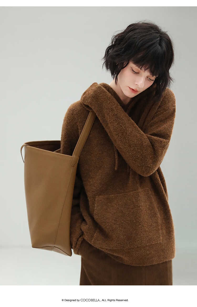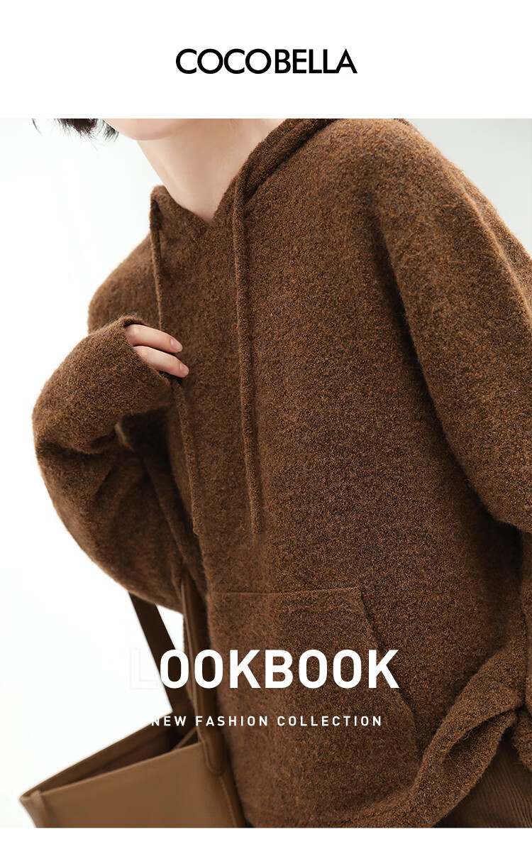COCOBELLA美拉德风蓬松圈圈纱连帽毛衣秋冬软糯保暖针织卫衣MZ302