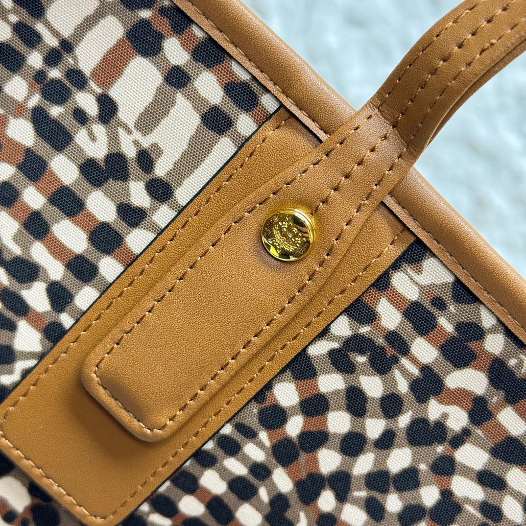 这款中号Liz购物袋将两个经典外型合二为一,是一款标志性的日常包袋。包袋采用米白色Visetos及Nappa皮革制成,双面棉质帆布的表面上印有迷人的Cubic经典花纹。随附的可拆卸拉链手拿包则使其拥有了更强的实用功能,在短途旅行中可作为独立的钱包使用。