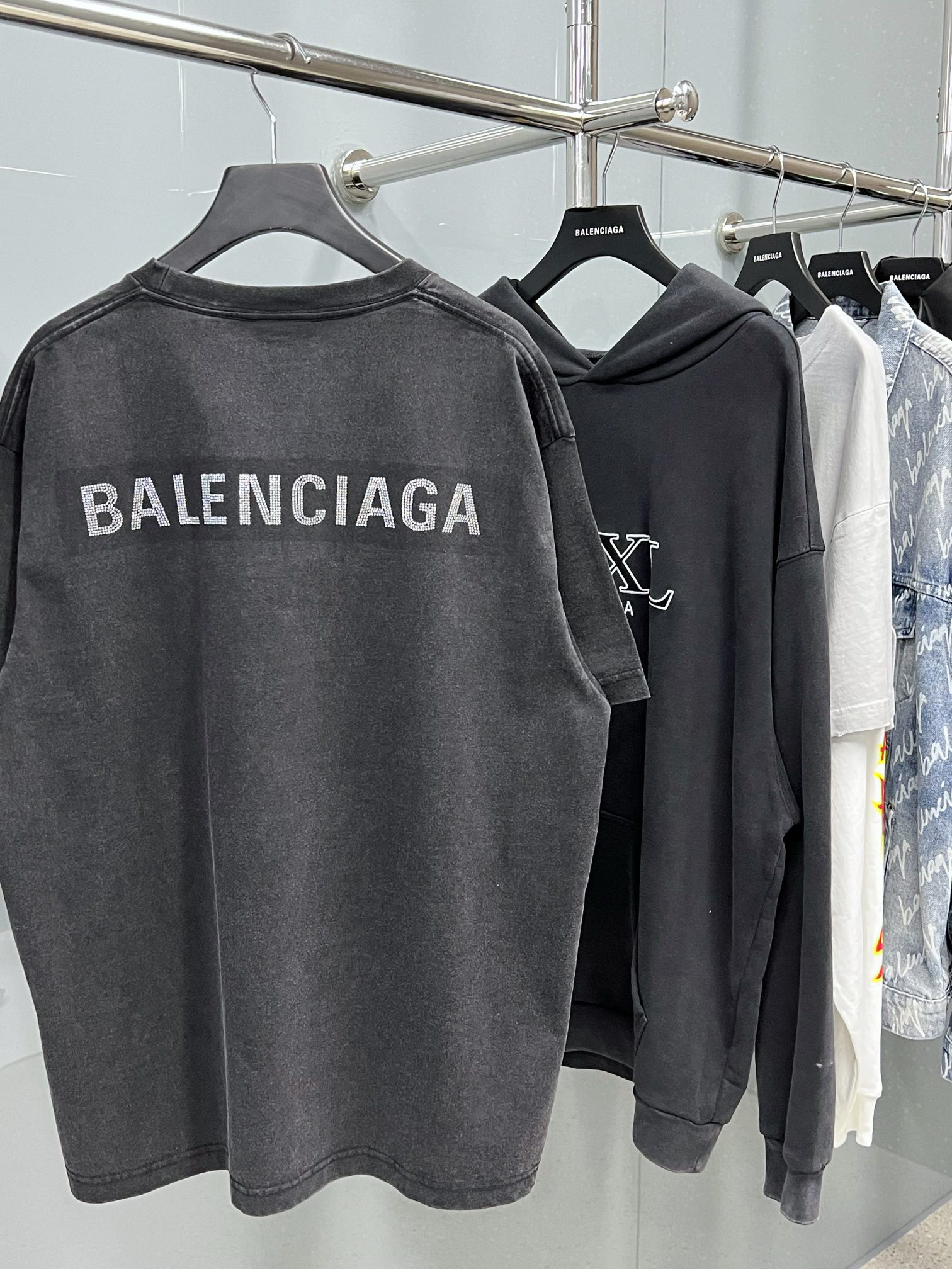 巴黎世家 后背烫钻T恤