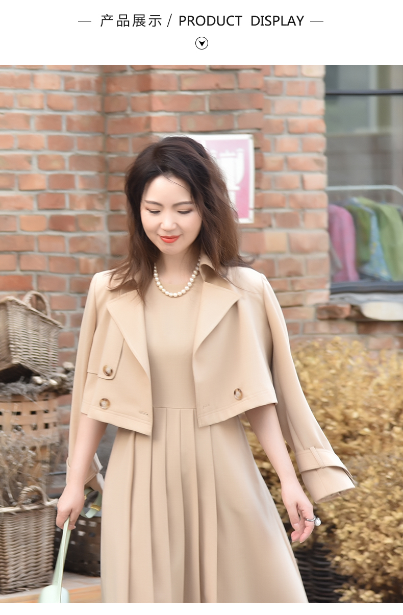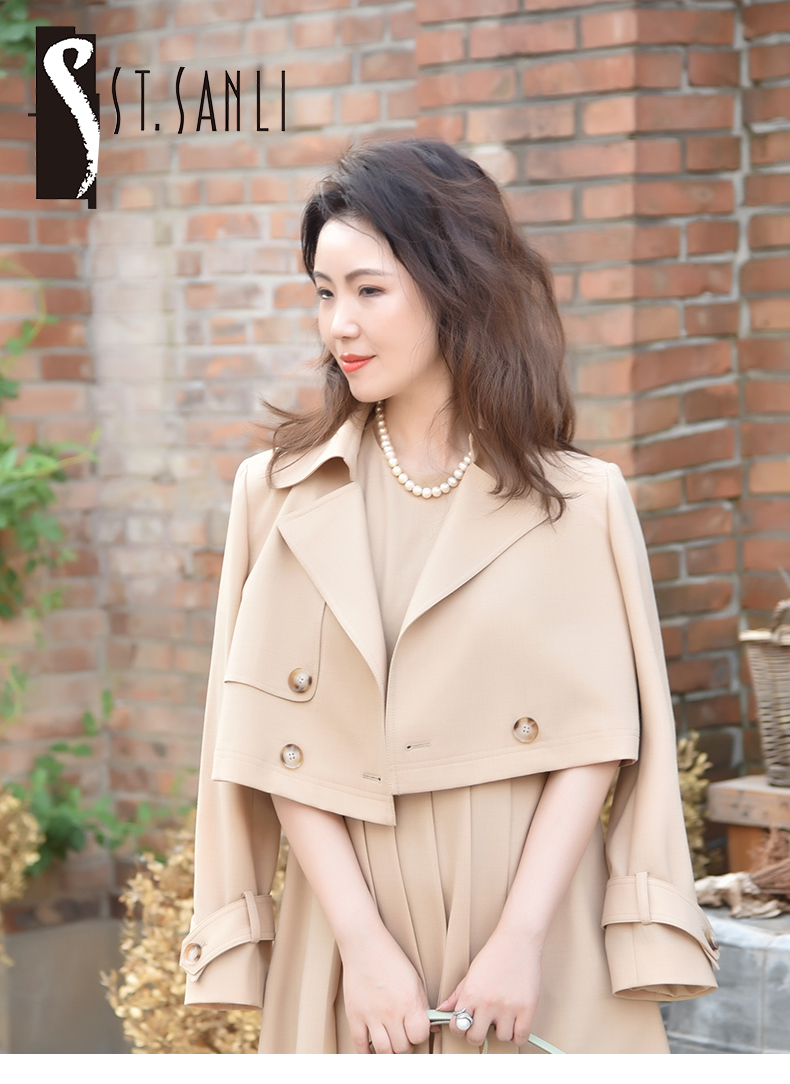 圣三利女装春秋季纯色西装领短款风衣SL121A29