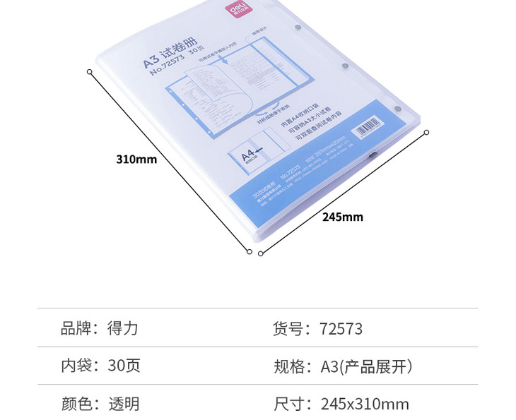 齐心 Q310-1-X 超省钱 报告夹 A4 抽杆式 30张 蓝
