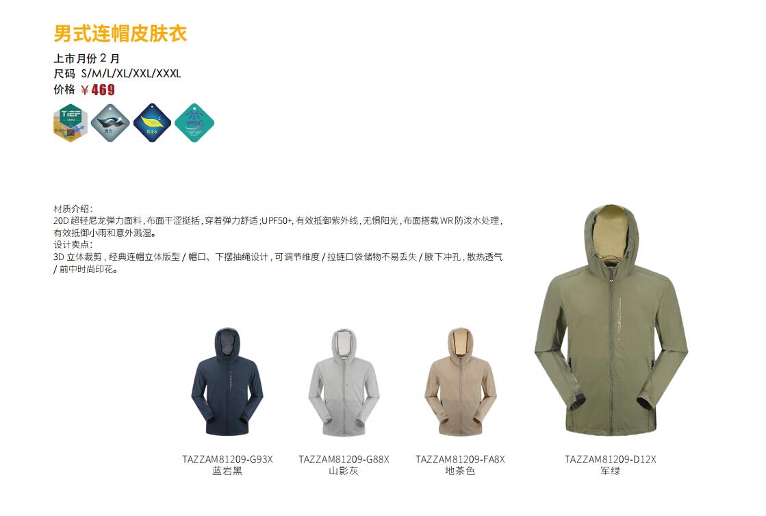 探路者男式连帽皮肤衣TAZZAM81209