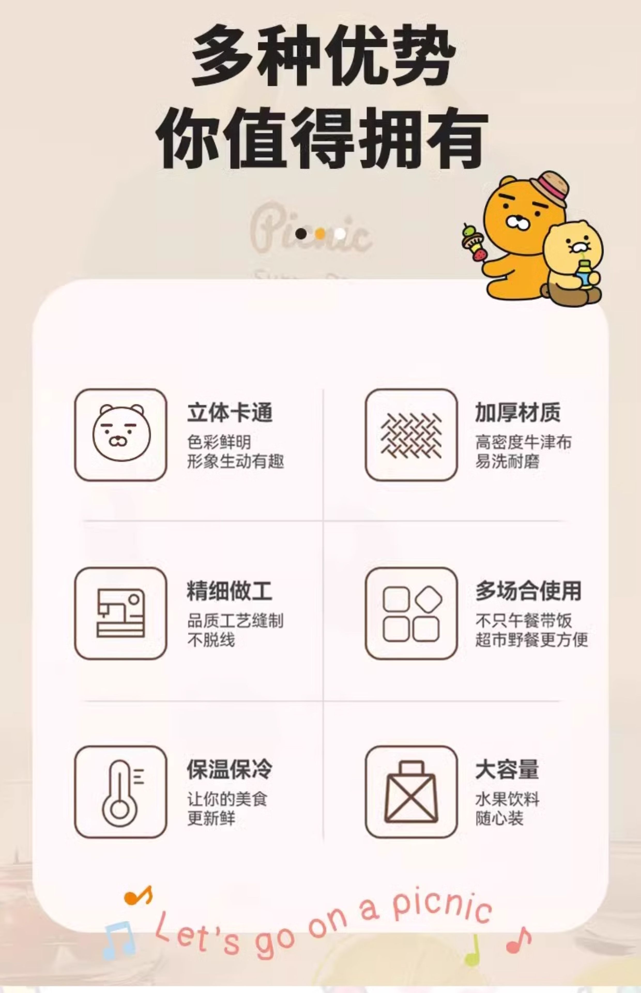 KAKAO FRIENDS 卡通便当手提包1个+勺筷1套