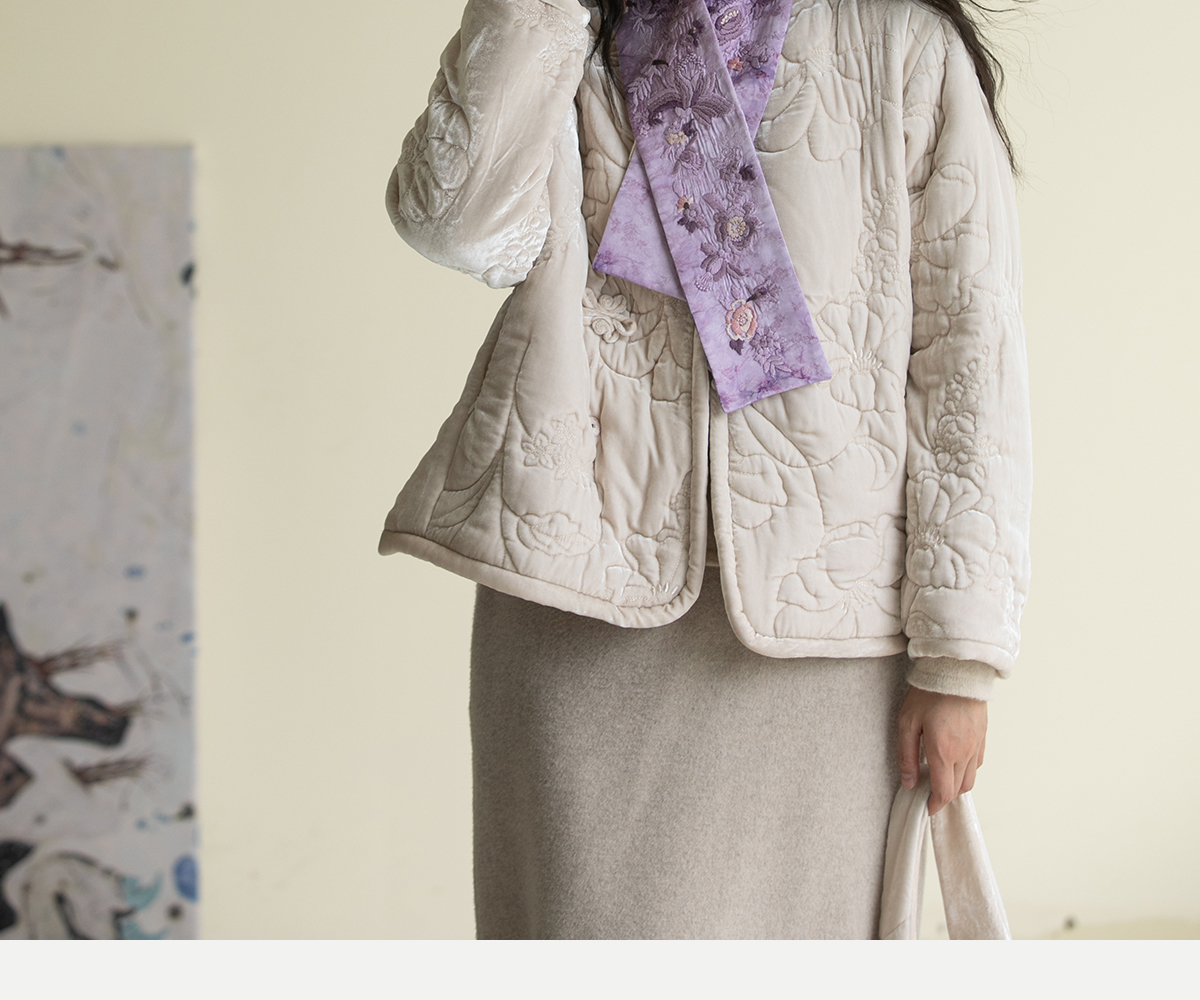 牧衣游原创设计 花意扎染手工刺绣夹棉围巾 花期【不支持会员折】