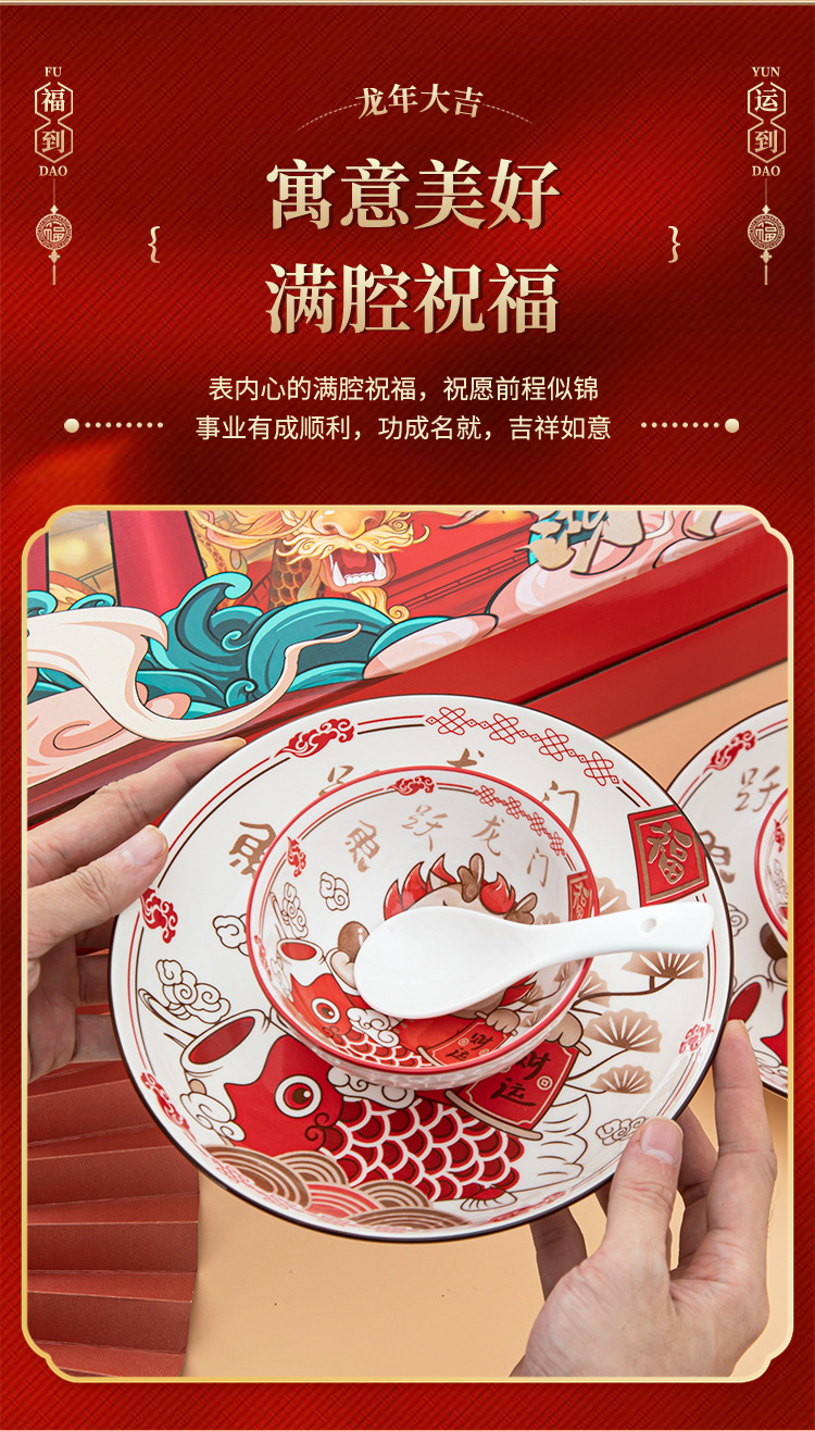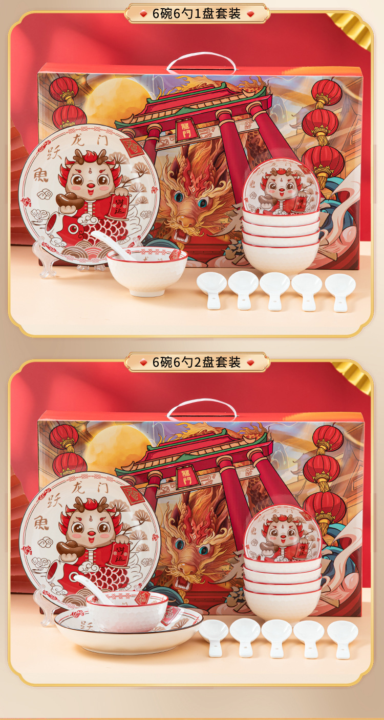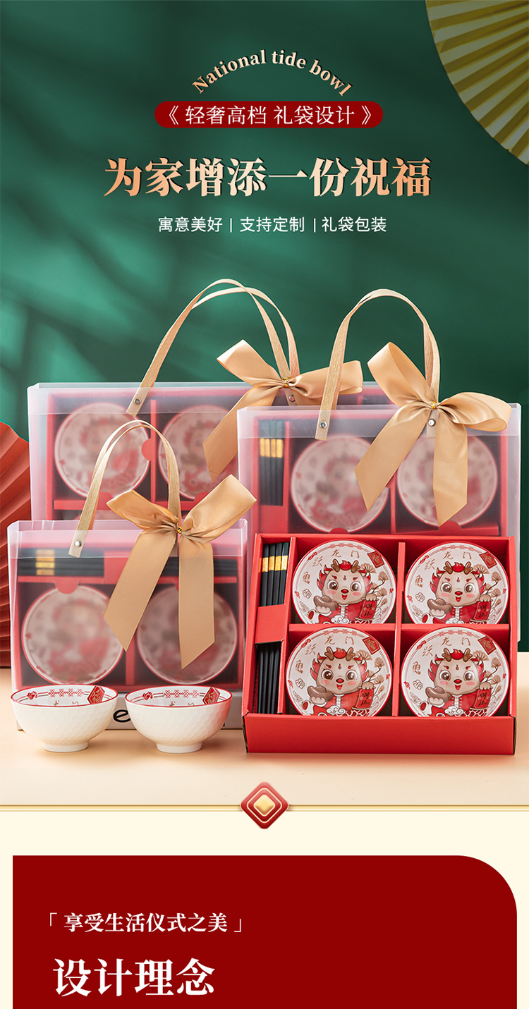 【陶瓷碗筷餐具❗️蛇年大吉礼盒套装】带提绳蛇年礼物实用套装礼品圣诞活动促销新年伴手礼 送礼更有范,蛇年新春新年圣诞节七夕情人节伴手礼伴手礼三八妇女节新年礼盒年货礼盒