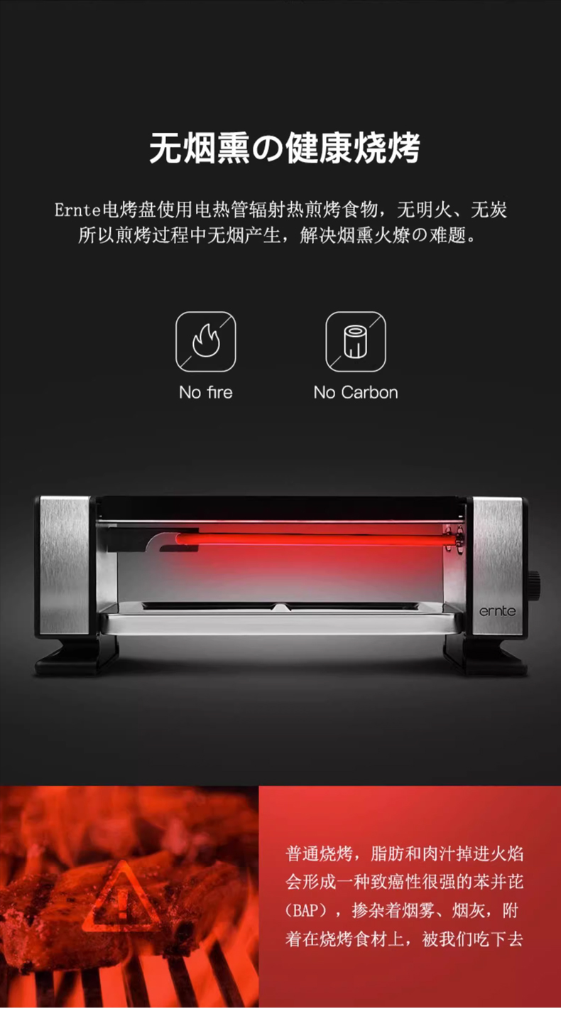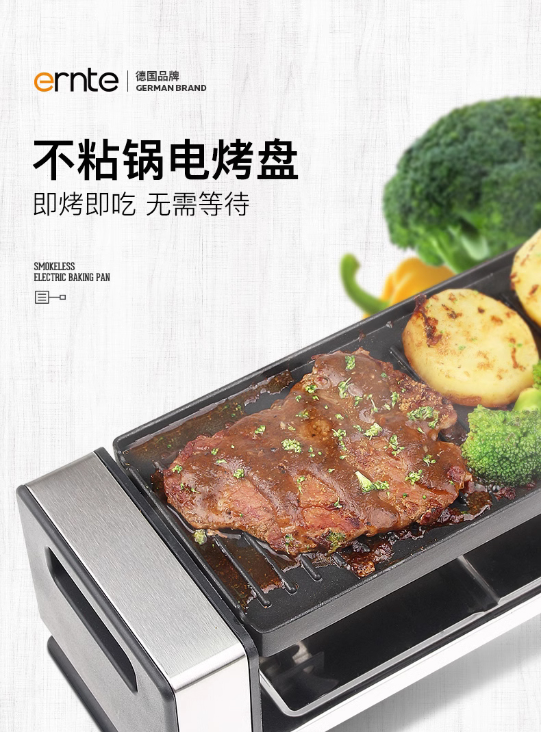 德国ernte电烤盘家用无烟烧烤机小型电烤炉烤串机多功能BBQ烤肉架
