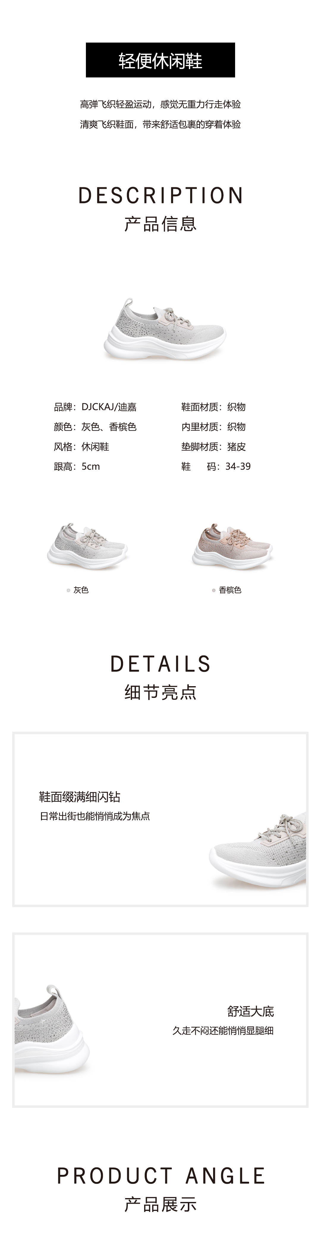 豪麟名鞋奥莱迪嘉女鞋织物时尚休闲鞋DJSKA52WX052香槟色 原价1660元