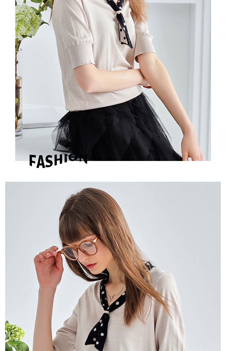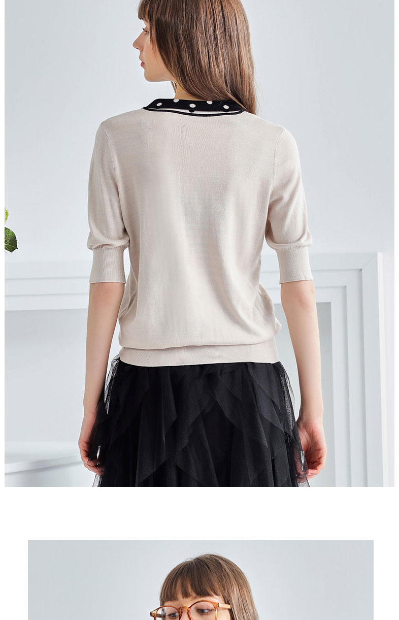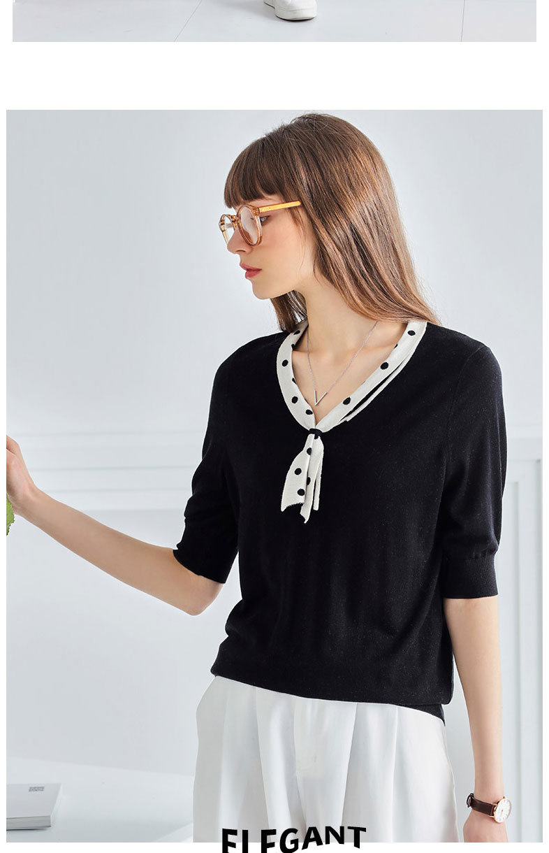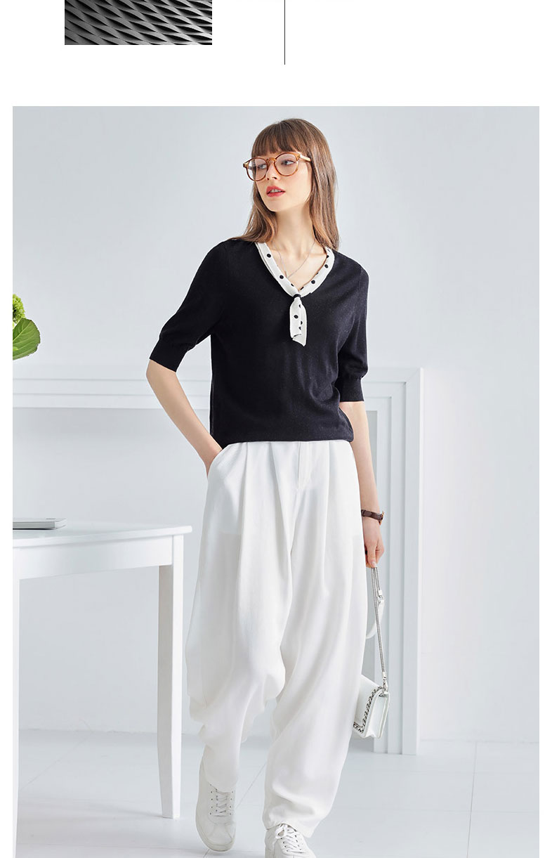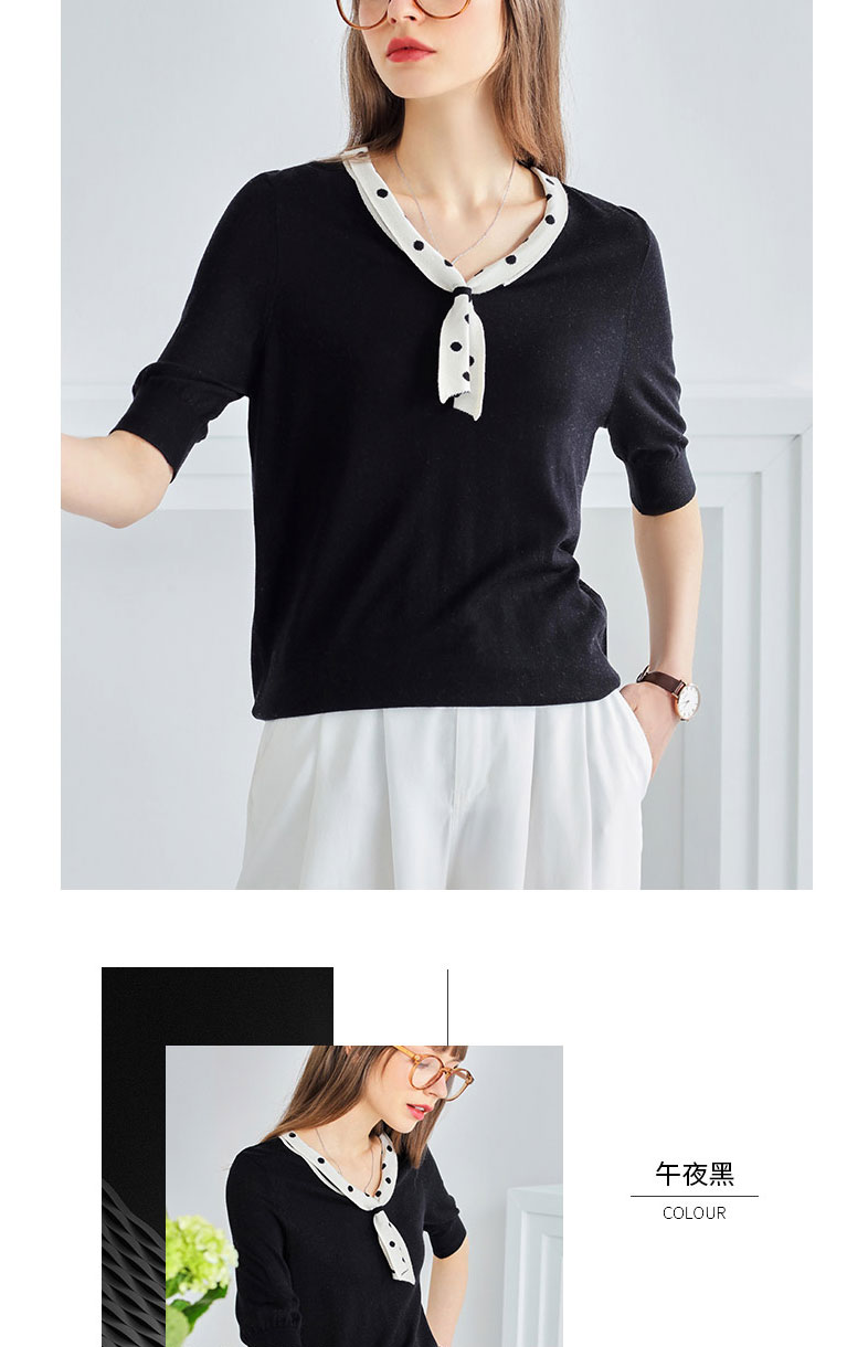 科蒙博卡春夏短袖真丝T恤女系带圆领五分袖桑蚕丝上衣小衫KSP1070H8156