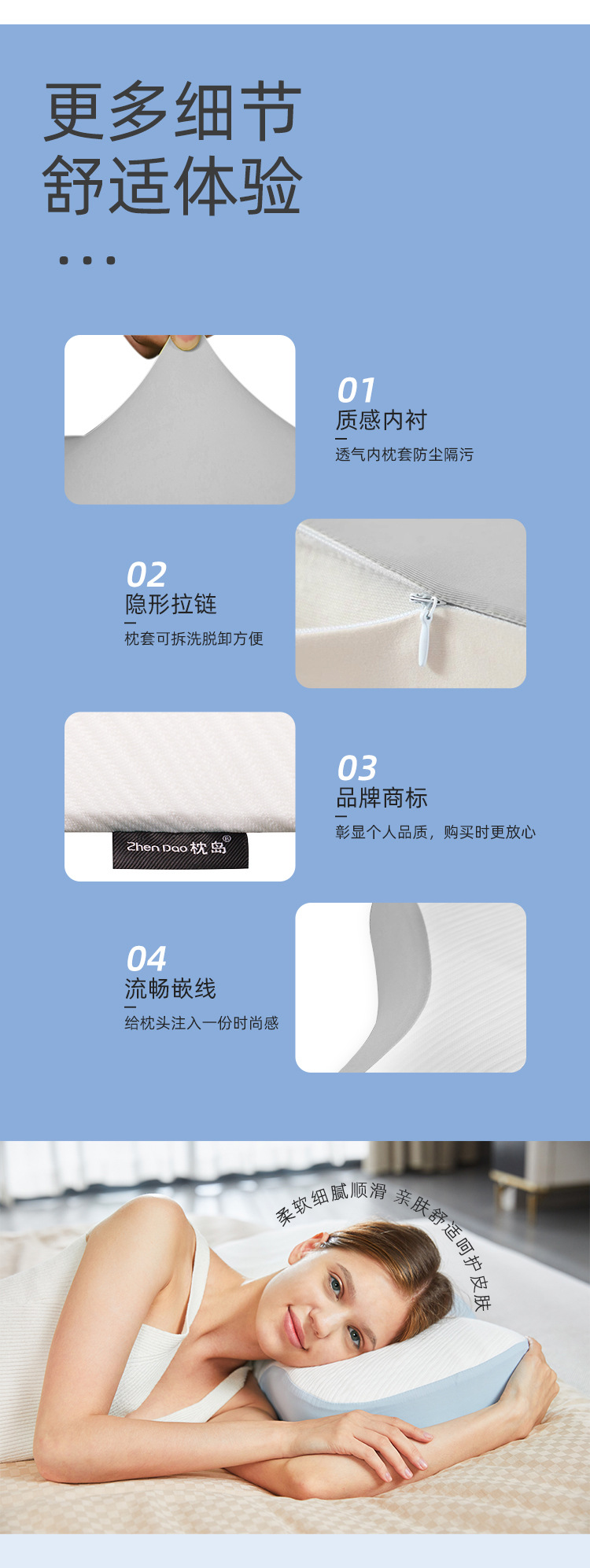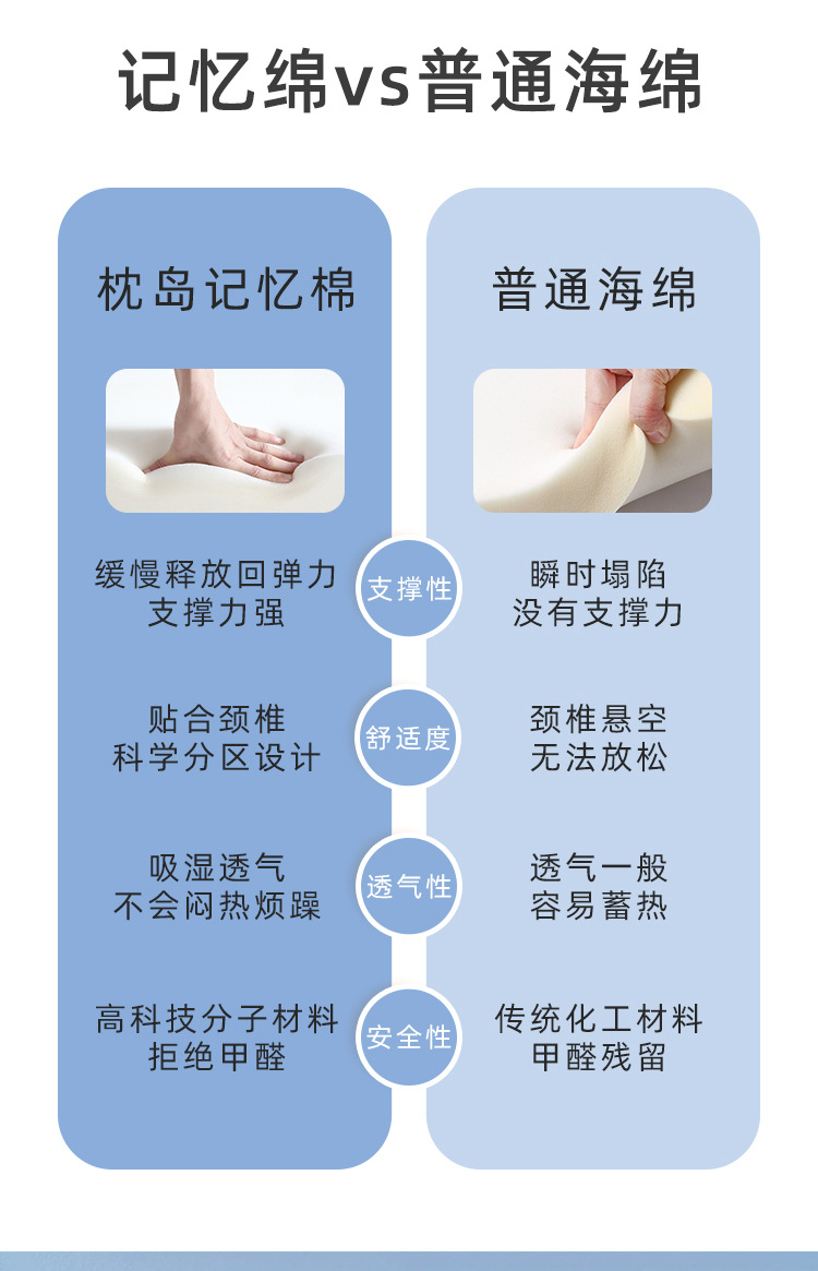 专为颈椎疲劳人群设计 多维度护颈 仰睡侧睡趴睡 怎么睡都舒服 枕岛同款记忆棉枕头慢回弹枕芯不塌陷记忆枕睡眠颈椎枕枕头新款新品