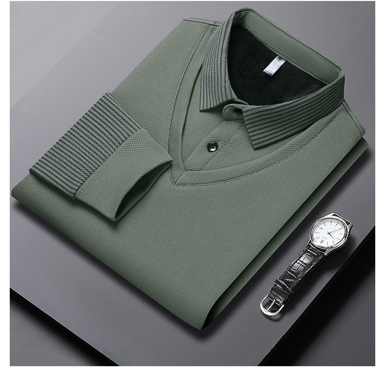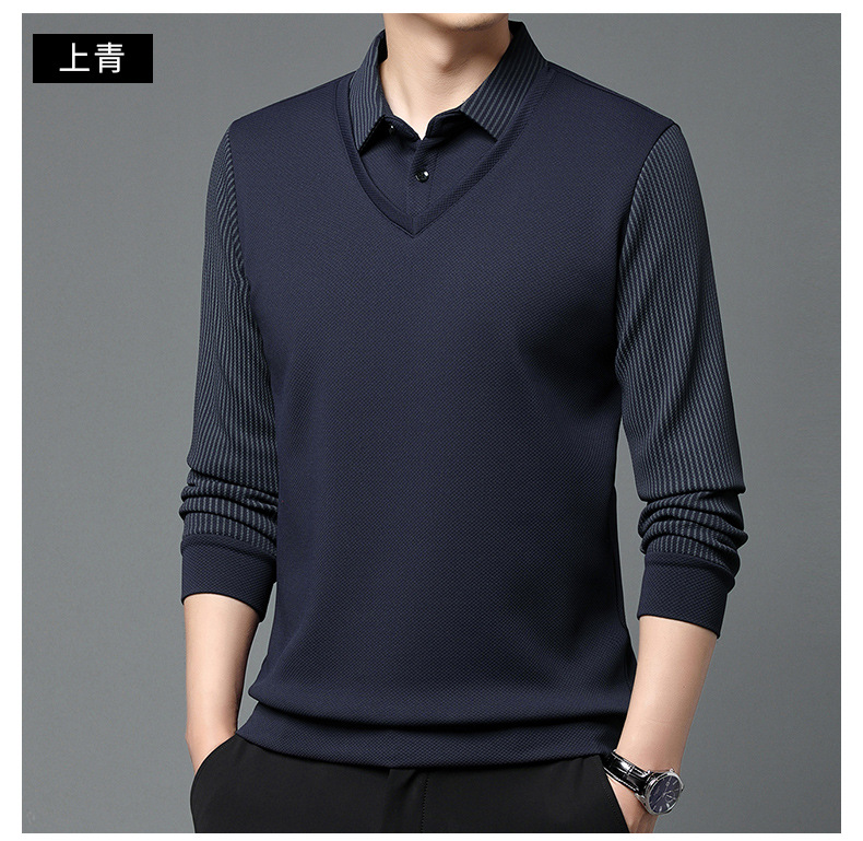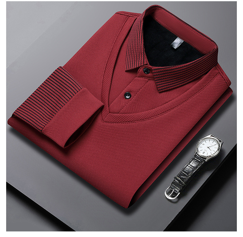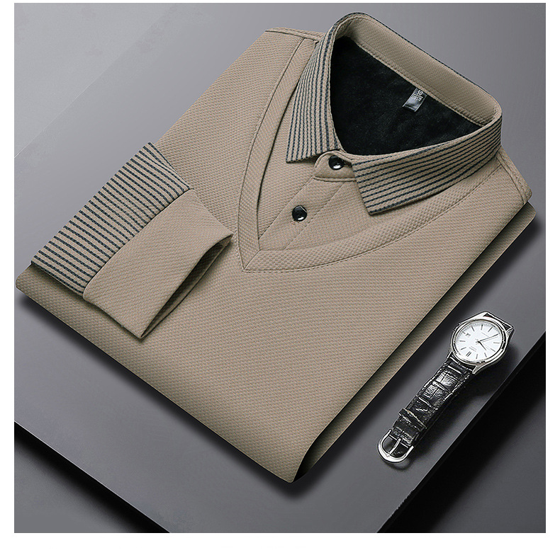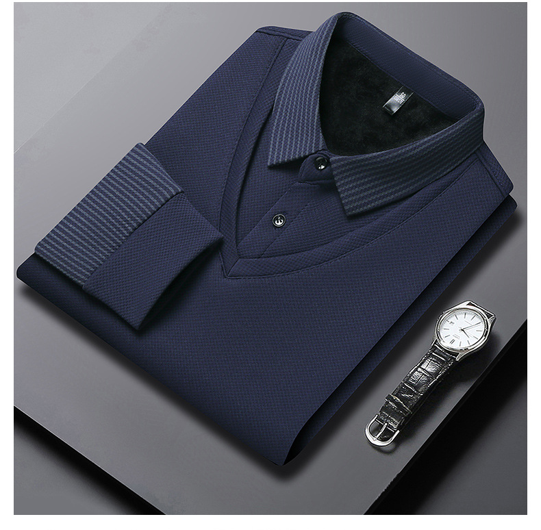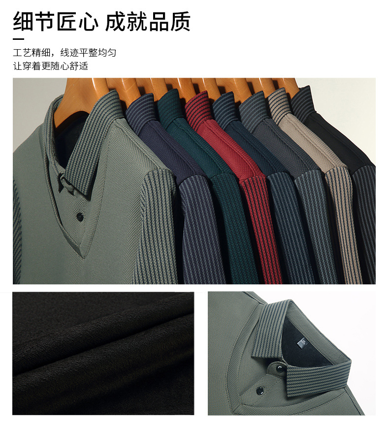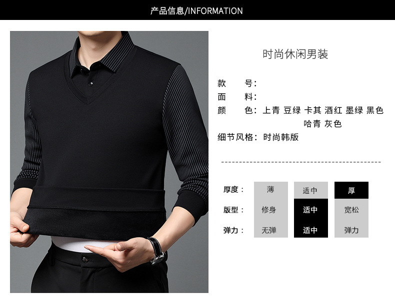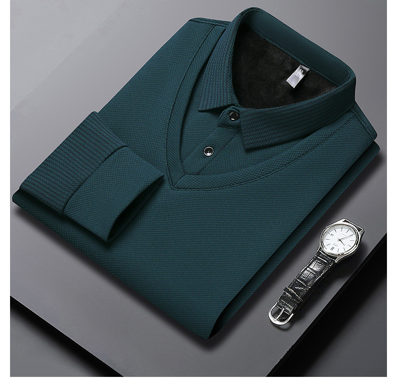 直播爆款冬季男士加绒加厚保暖polo衫男衬衫领假两件打底衫上衣男