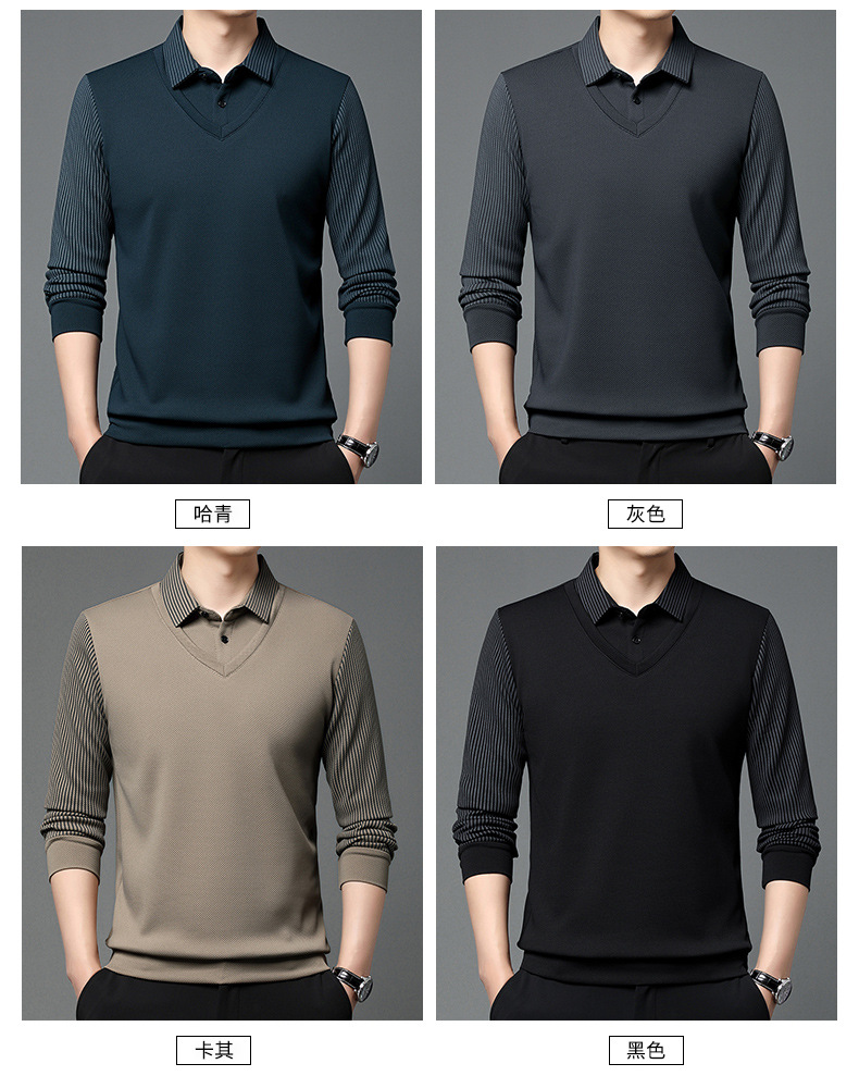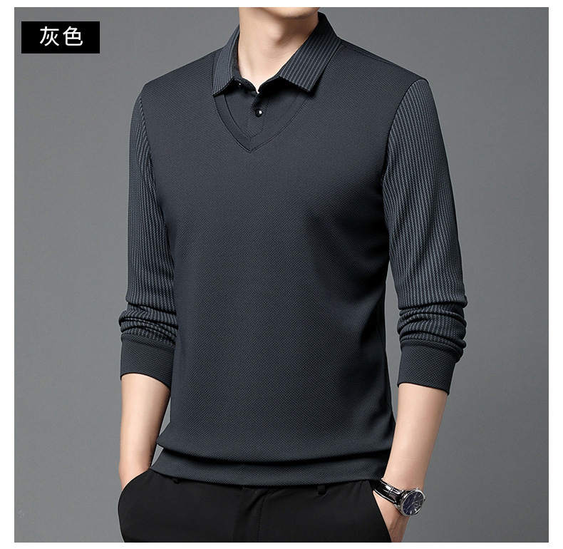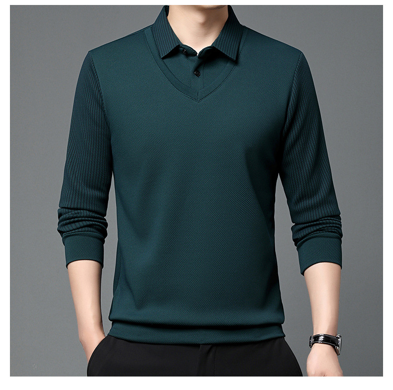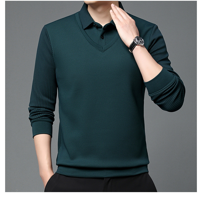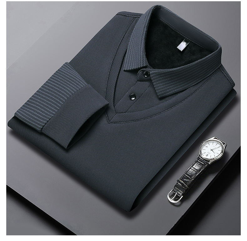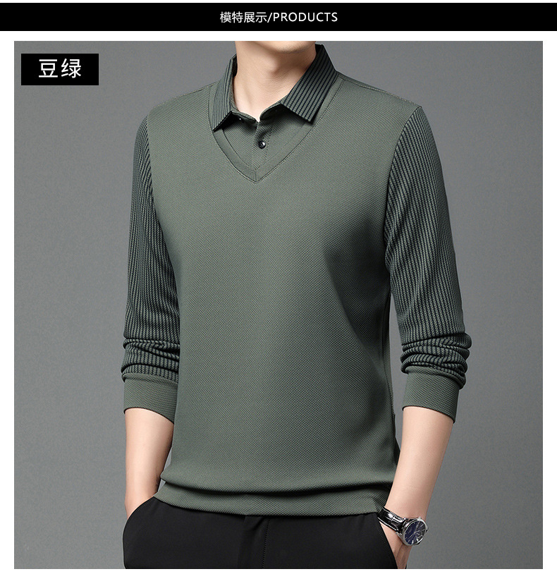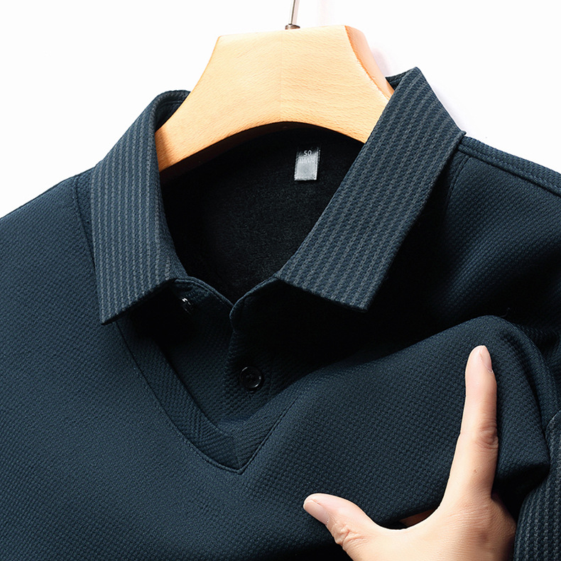 直播爆款冬季男士加绒加厚保暖polo衫男衬衫领假两件打底衫上衣男