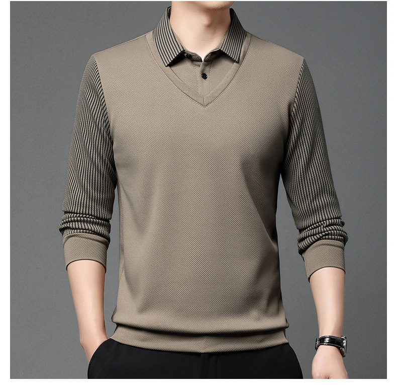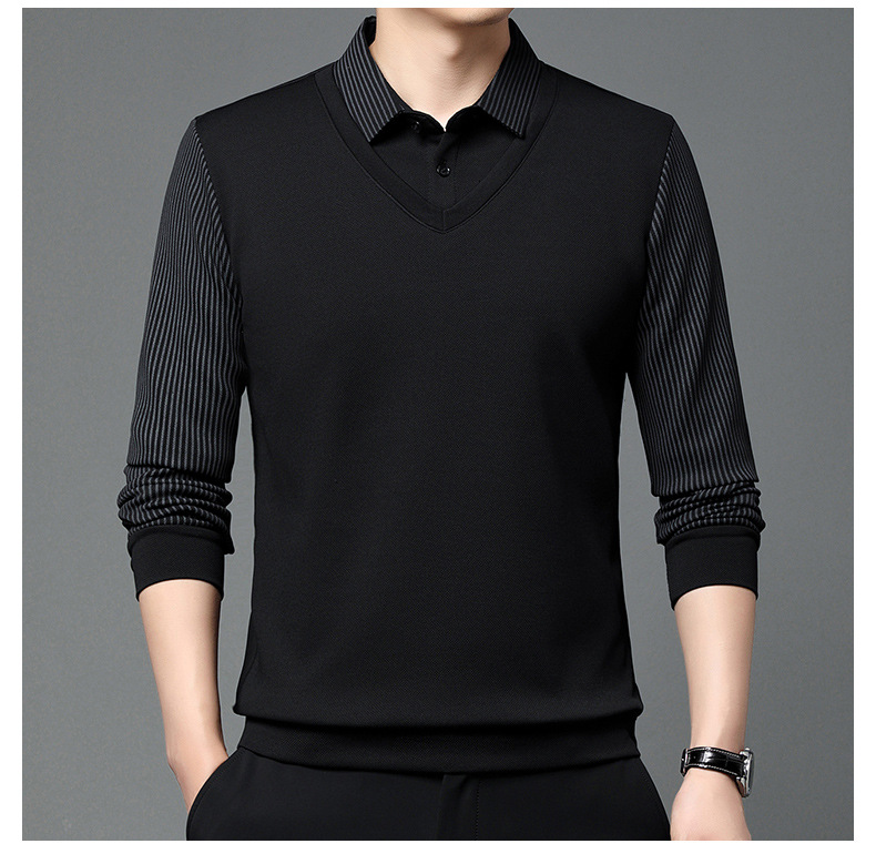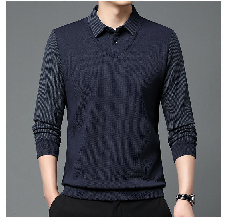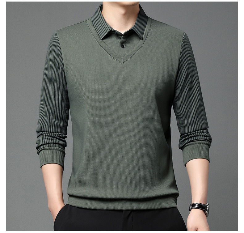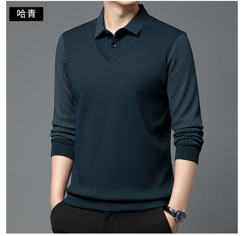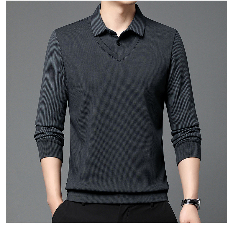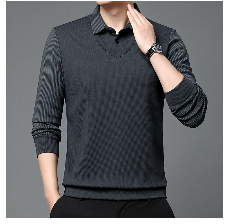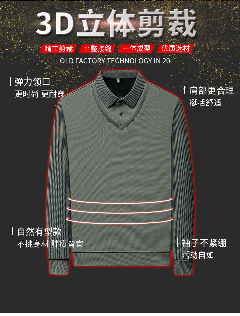 直播爆款冬季男士加绒加厚保暖polo衫男衬衫领假两件打底衫上衣男