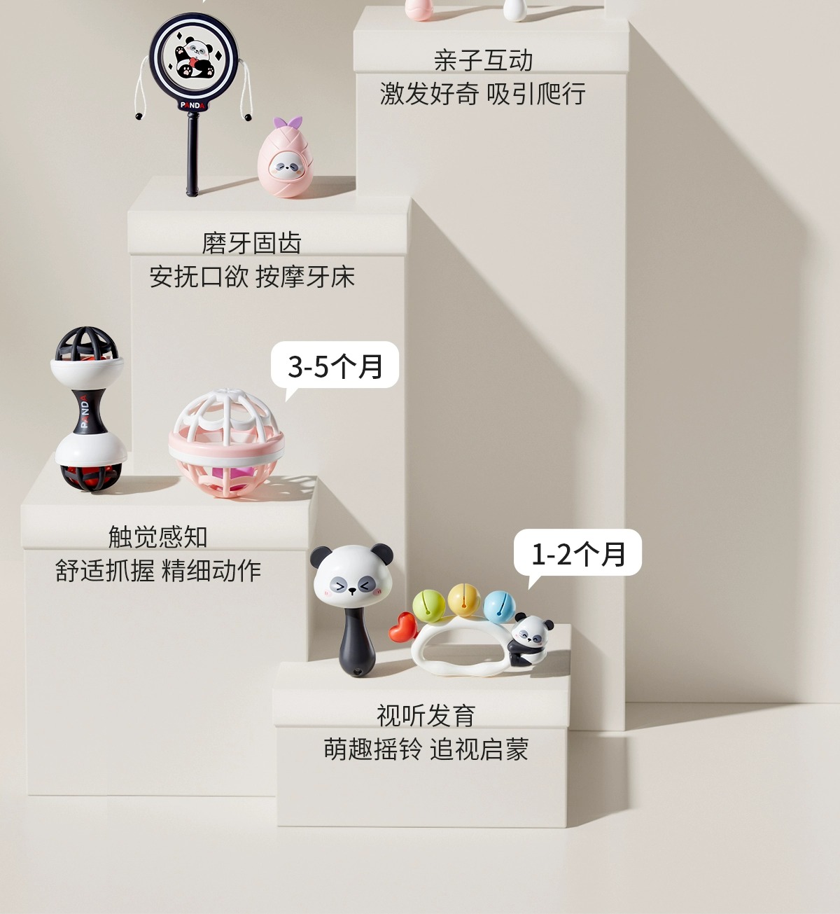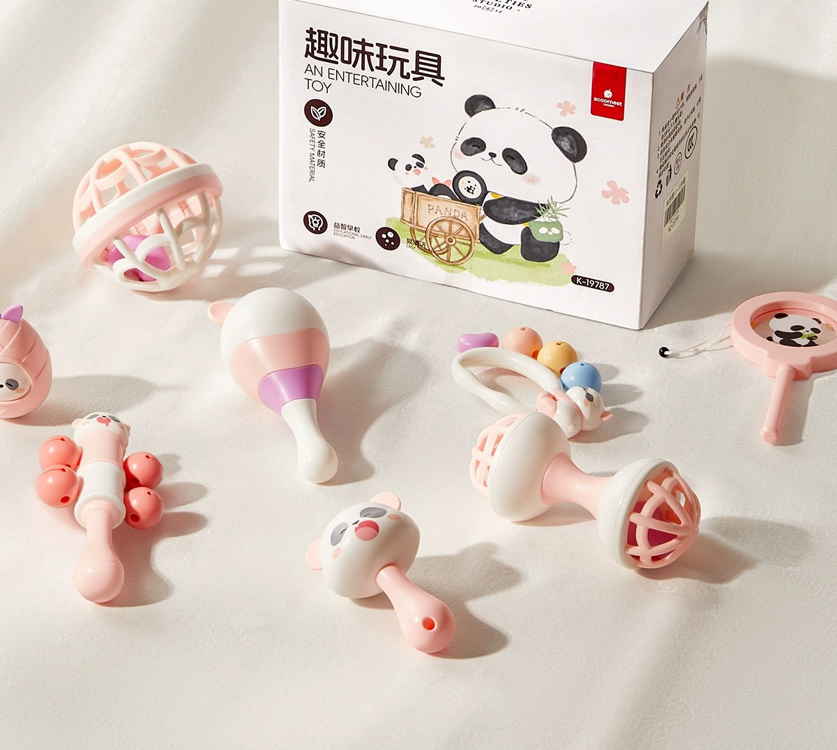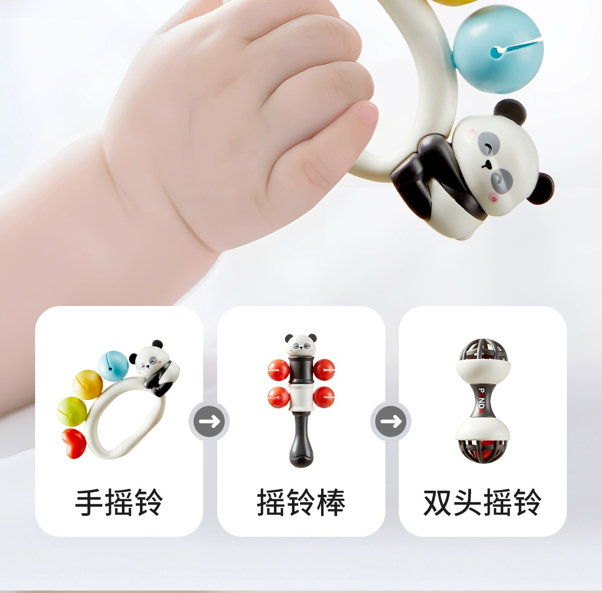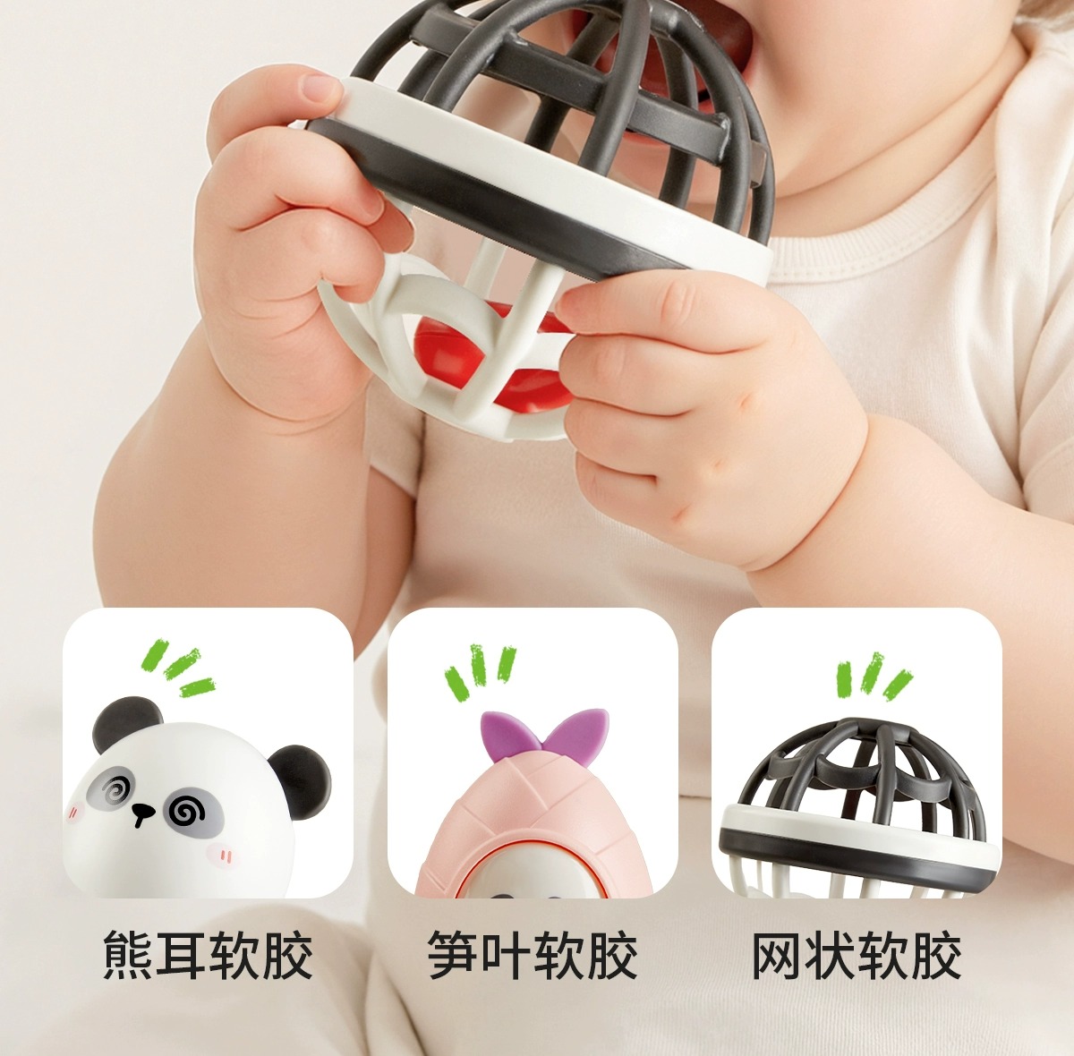 科巢宝宝手摇铃新生婴儿玩具早教益智抓握训练可咬牙胶0到3-6个月