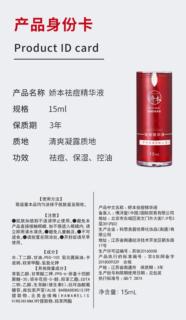 娇本祛痘精华液