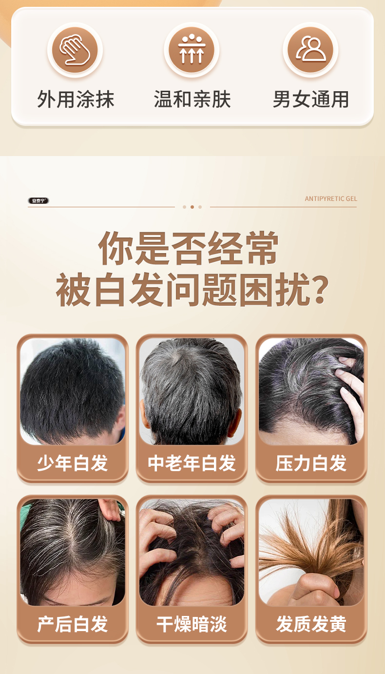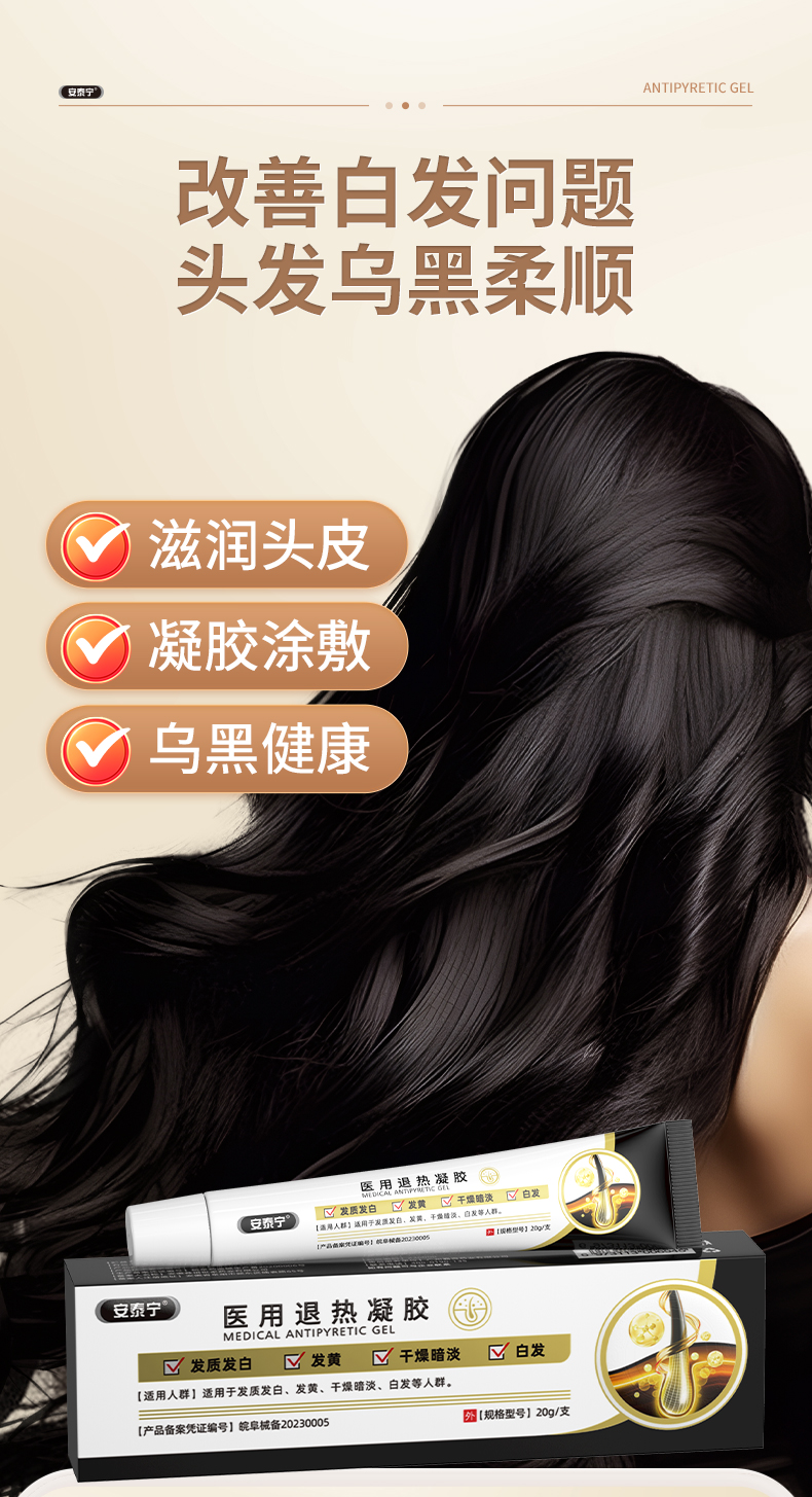 安泰宁医用退热凝胶白发根转黑发改善黄干燥暗淡养发正品