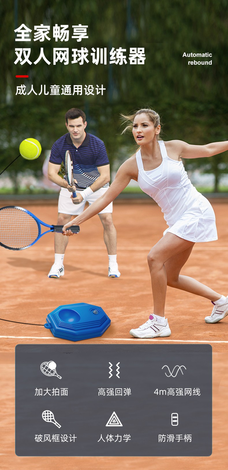 「全家畅享!网球训练器」致佳网球拍训练器 儿童初学者发球回弹培训大学生网球拍套装体育用品