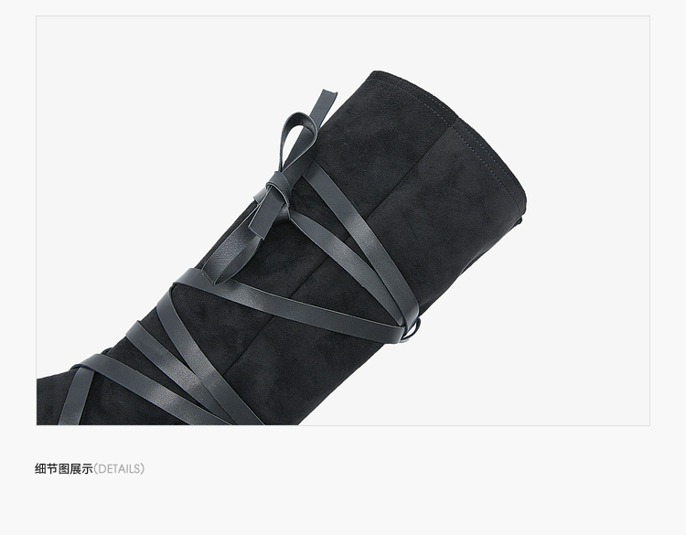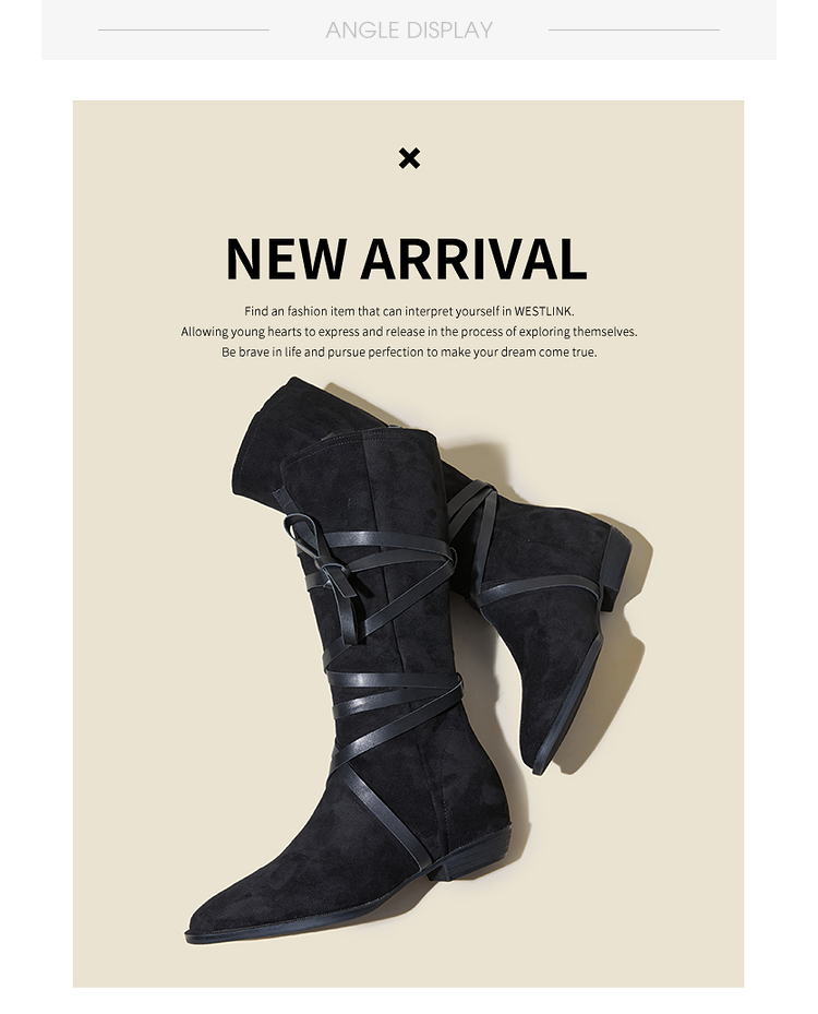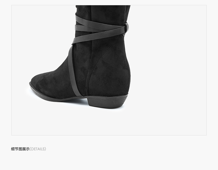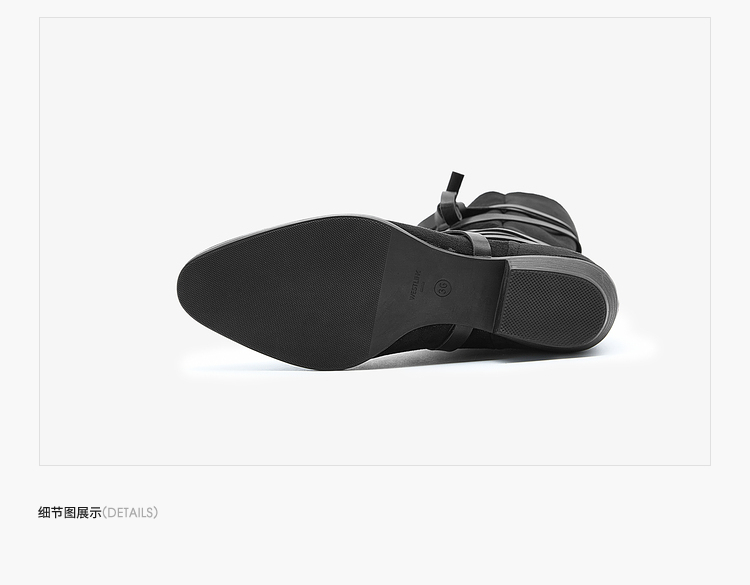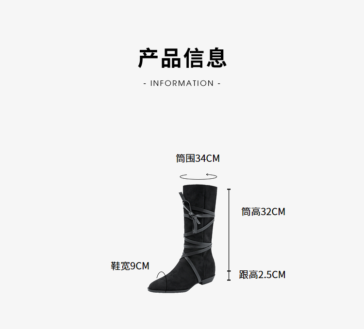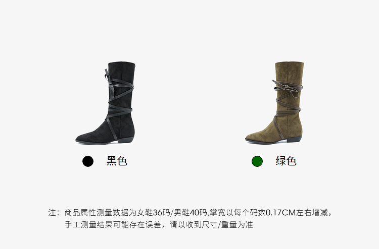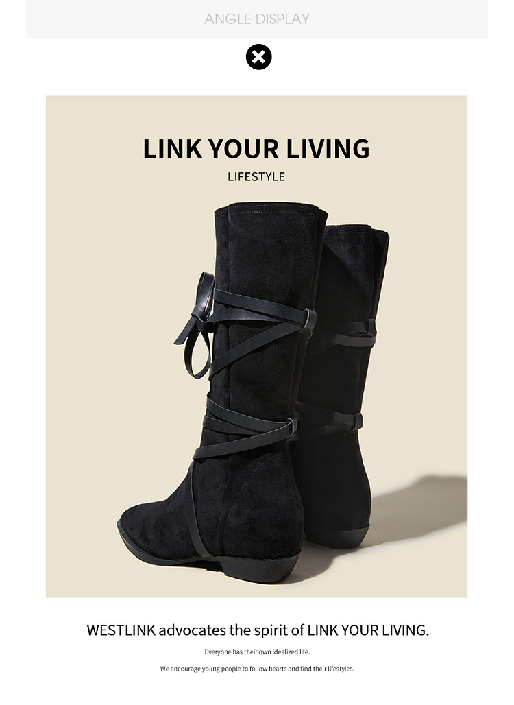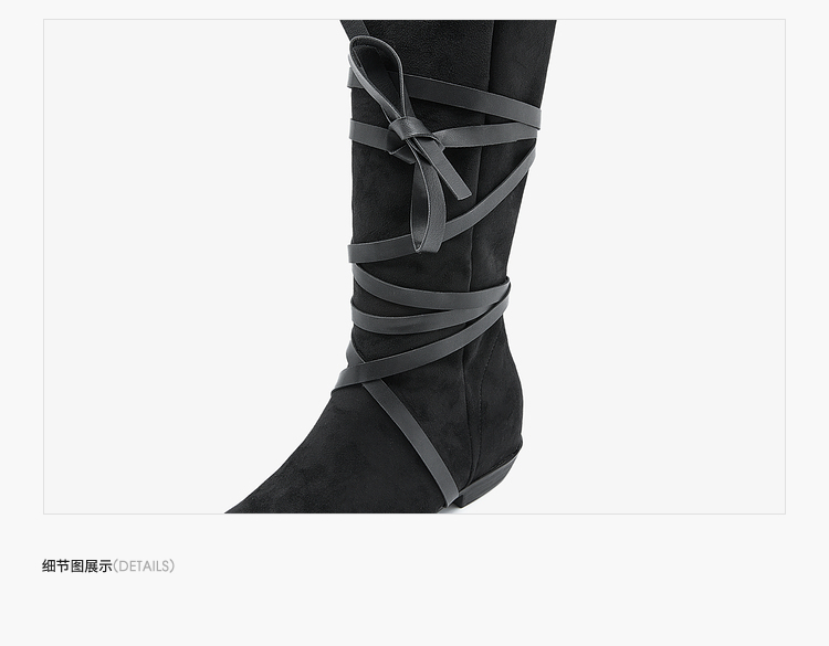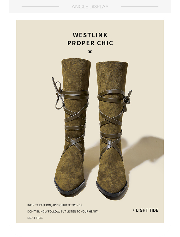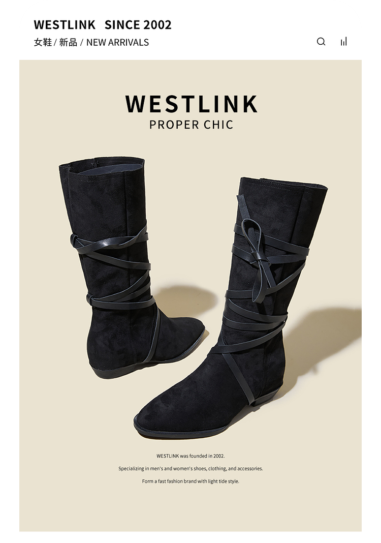 西遇西部牛仔靴女新款秋冬绑带长靴废土风沙漠平底尖头长筒靴V3547547