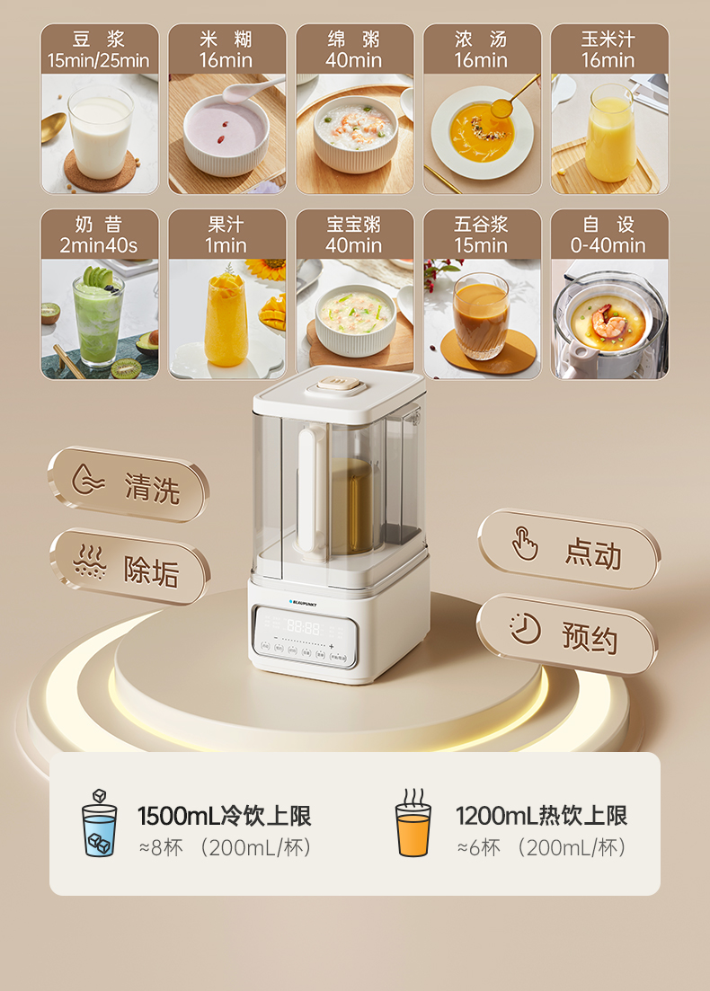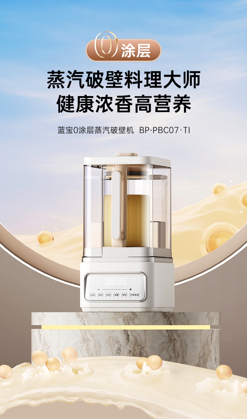 【德国蓝宝0涂层纯钛刀头破壁机】德国蓝宝蒸汽破壁机家用新款静低音无渣全自动豆浆料理