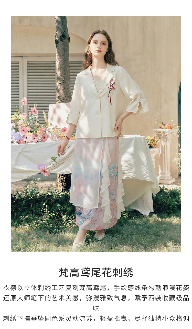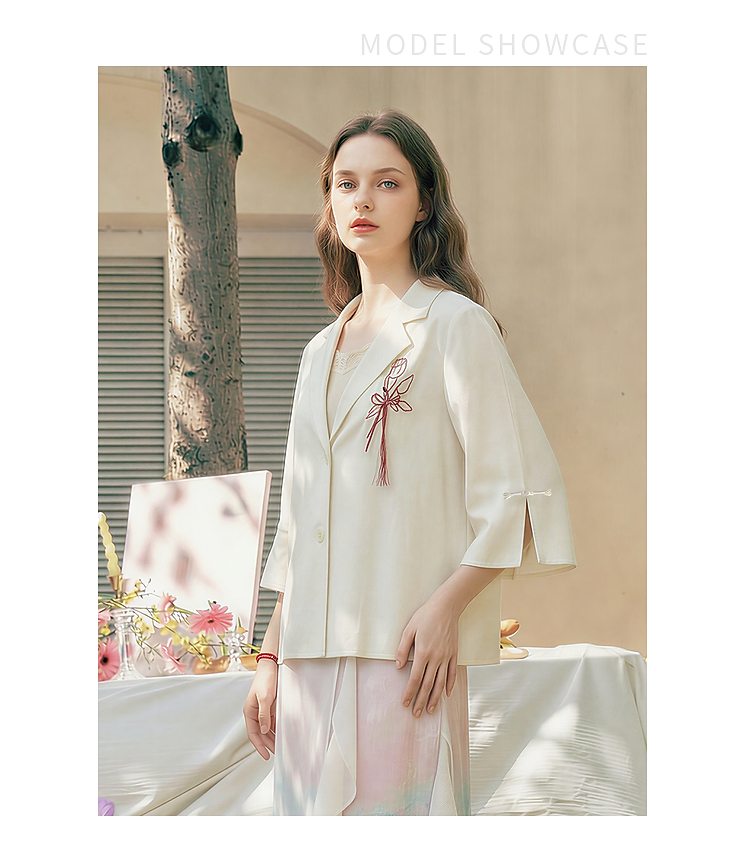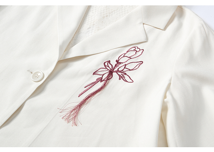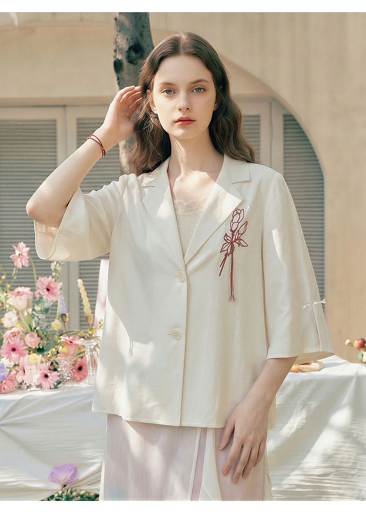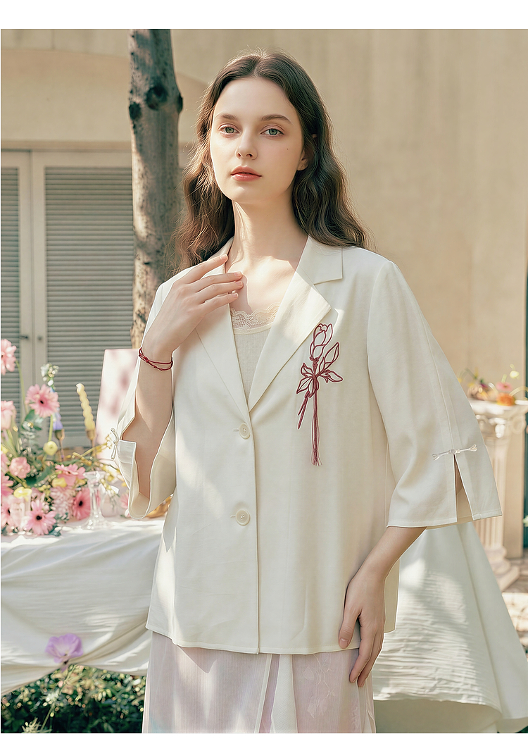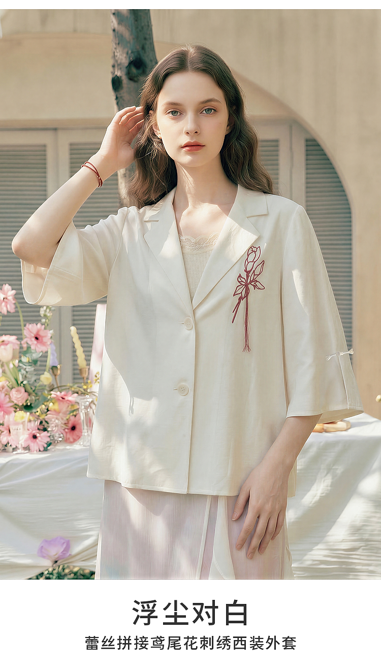 两三事梵高文艺浮尘对白2026夏季新款简约绣花毛边装饰西装外套女