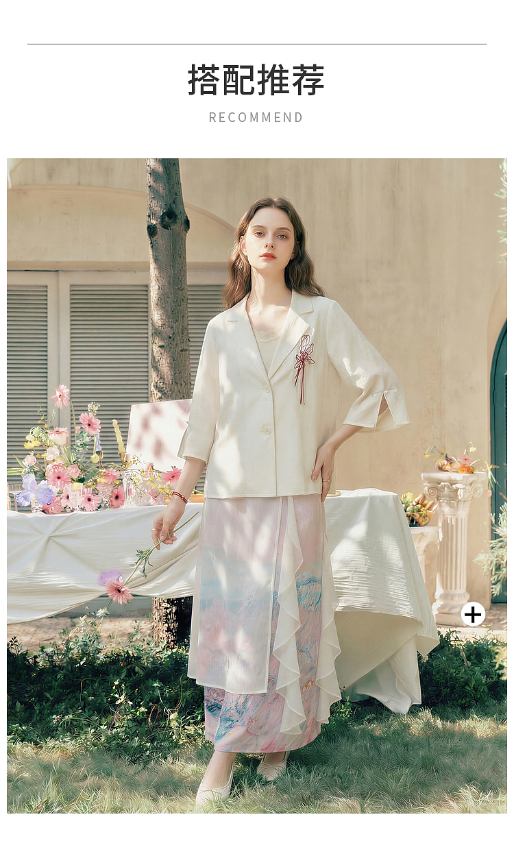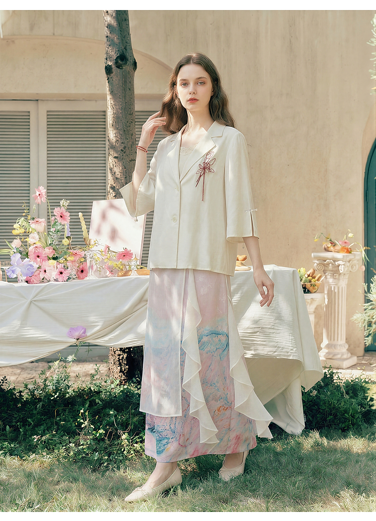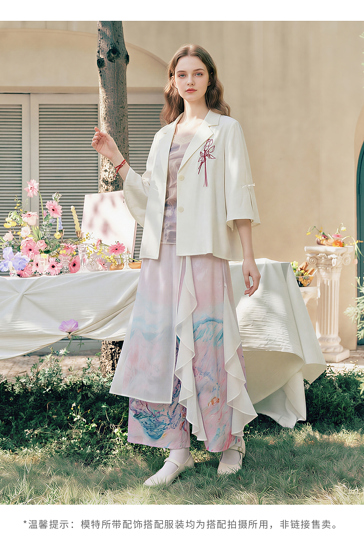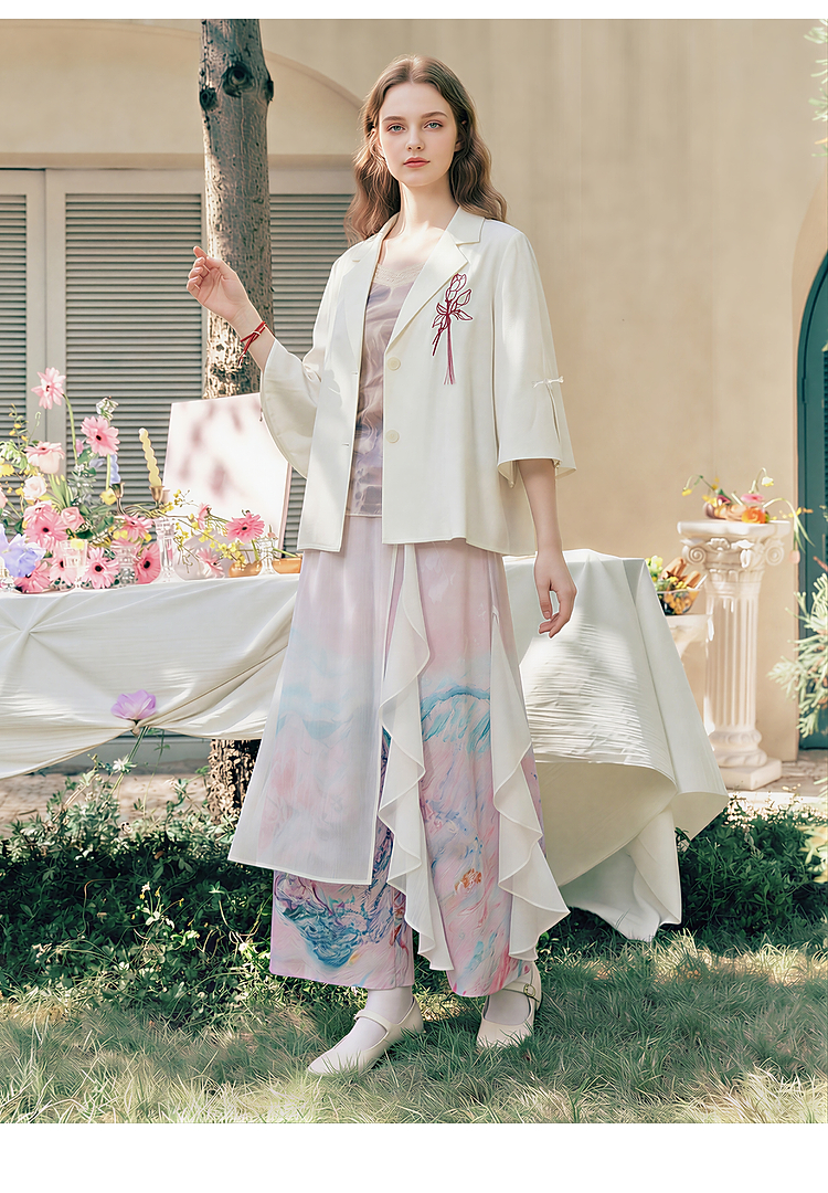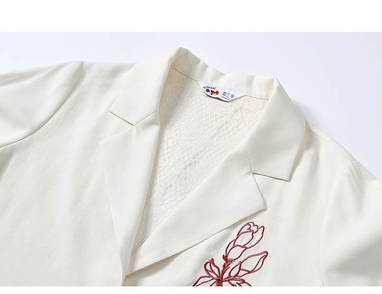 两三事梵高文艺浮尘对白2026夏季新款简约绣花毛边装饰西装外套女