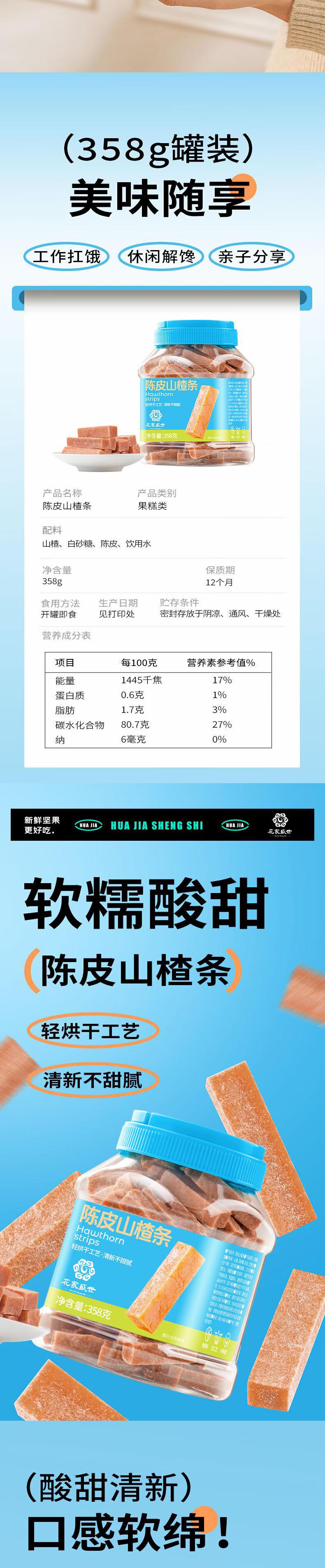 【自营】花家盛世 陈皮山楂条358g多巴胺罐装陈皮丝山楂干新会陈皮老陈皮长白山宁夏青海特级 HJSSJG022