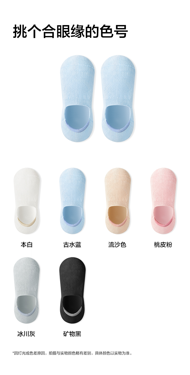【新品上新】【浅口网眼】有棵树棉质女士船袜5双装-S2014
