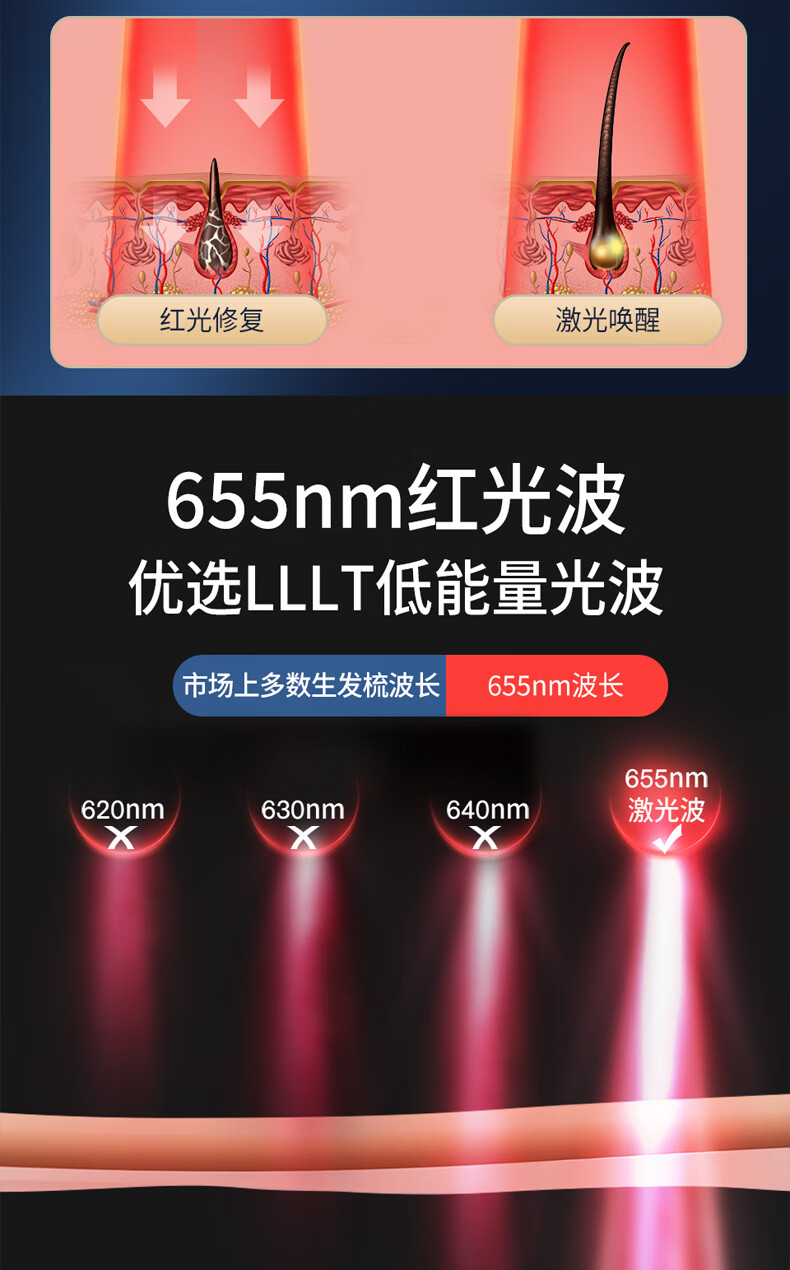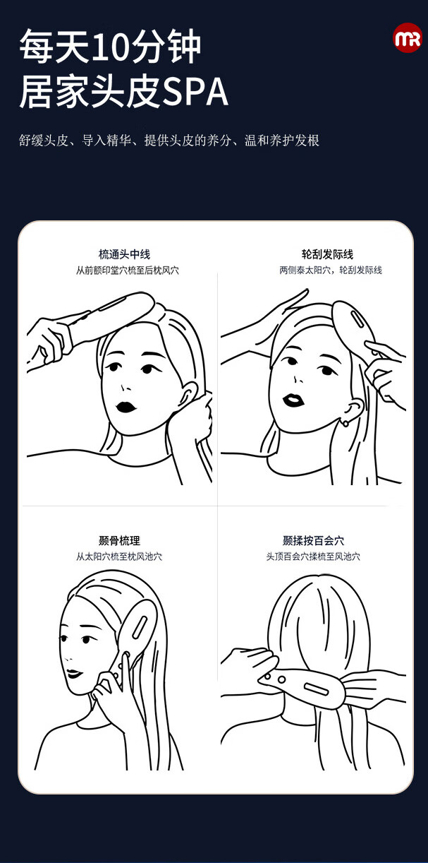 摩飞(MORPHYRICHARDS)健发按摩梳红蓝光波震动舒缓按摩器长柄梳按摩头皮 MF3108pro