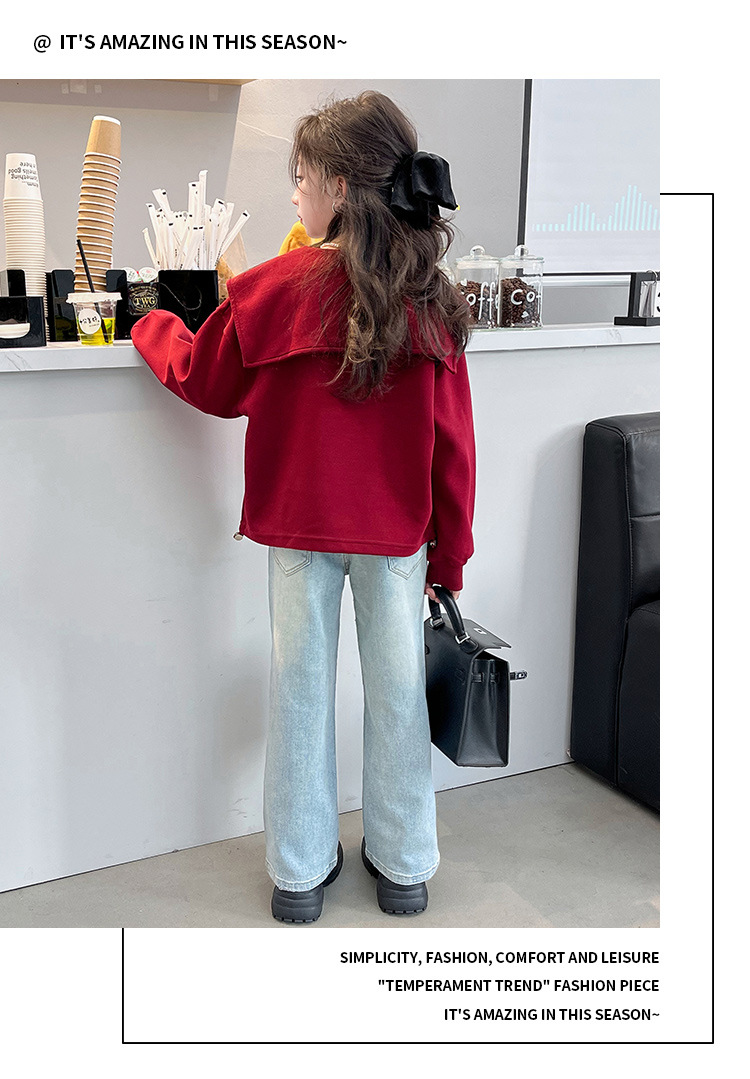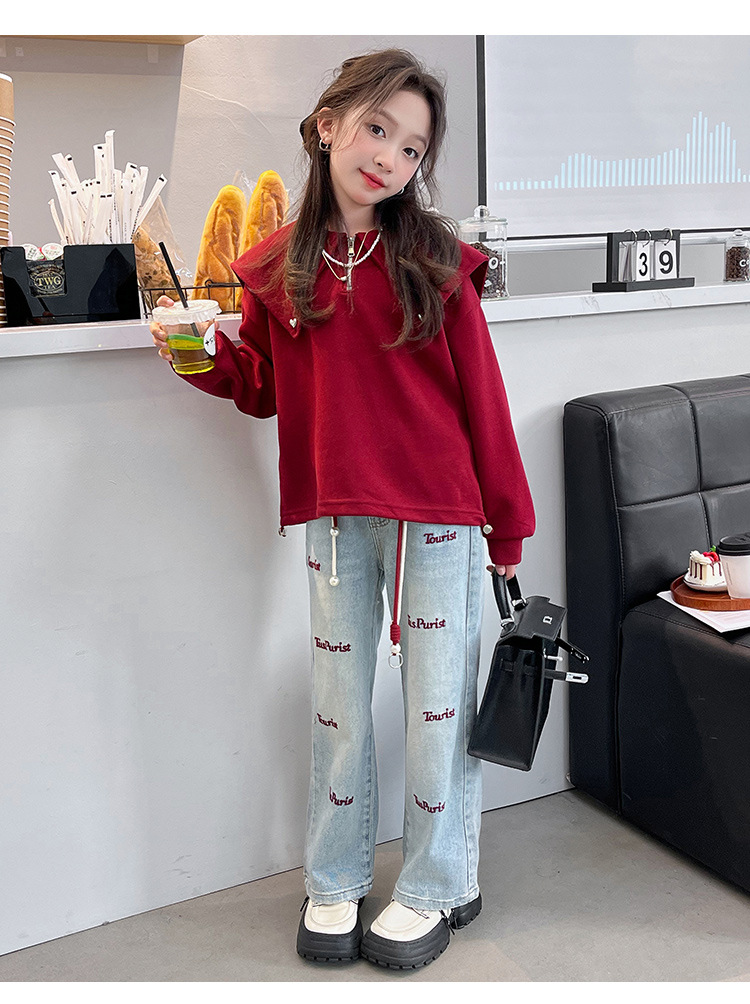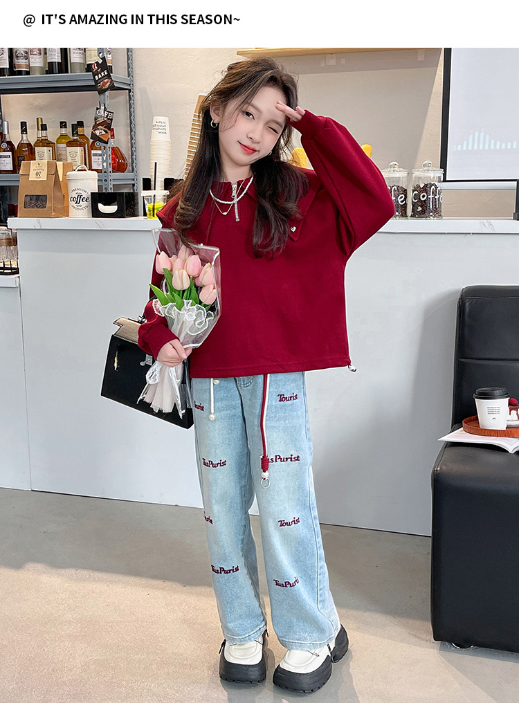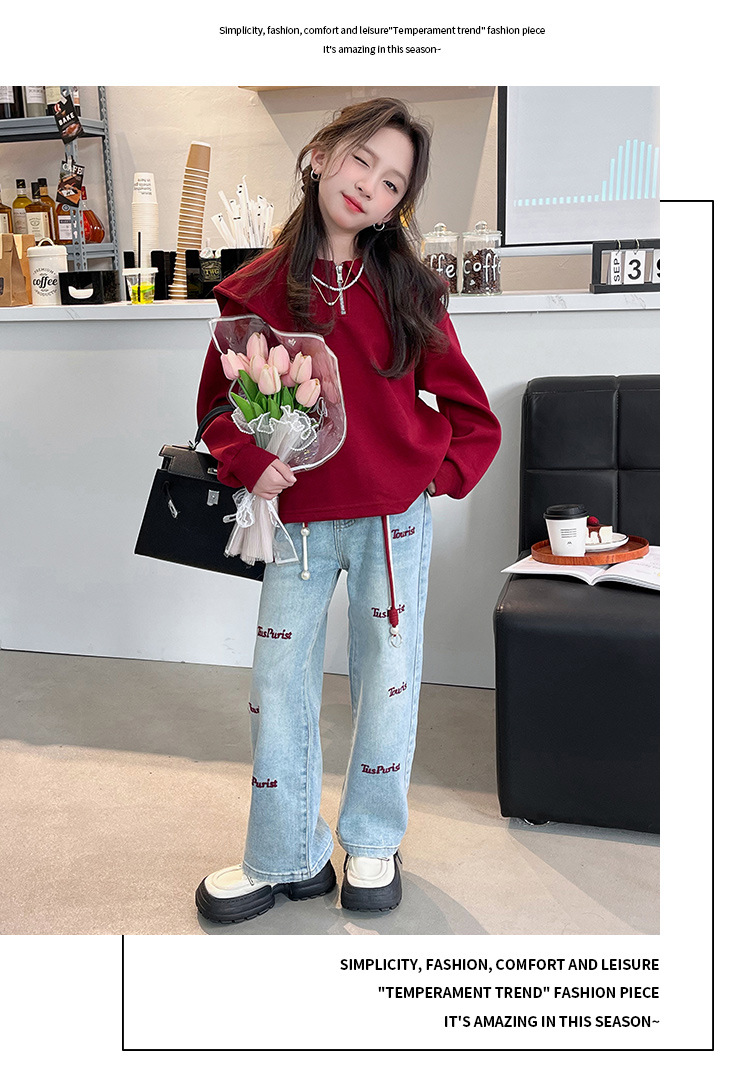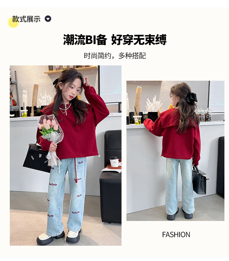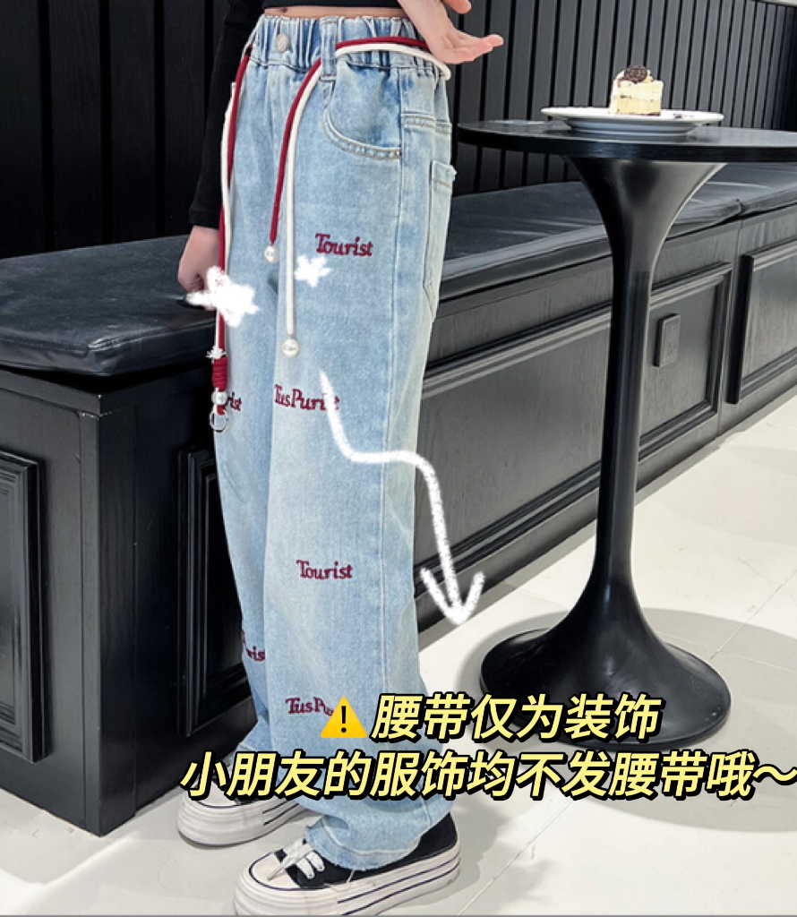 【儿童服饰丨复古英文绣花牛仔裤】面料亲肤舒适,走线工整布面平整,版型很立体,弹力裤腰设计,穿脱方便上身不束缚,时尚简约,多种风格随意切换,男孩女孩都能穿