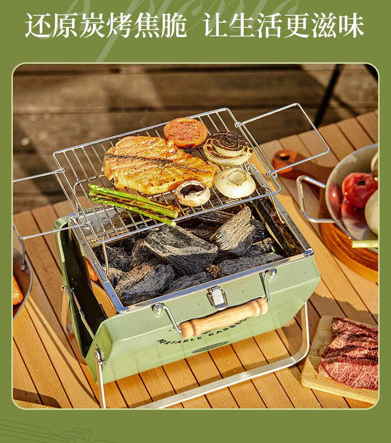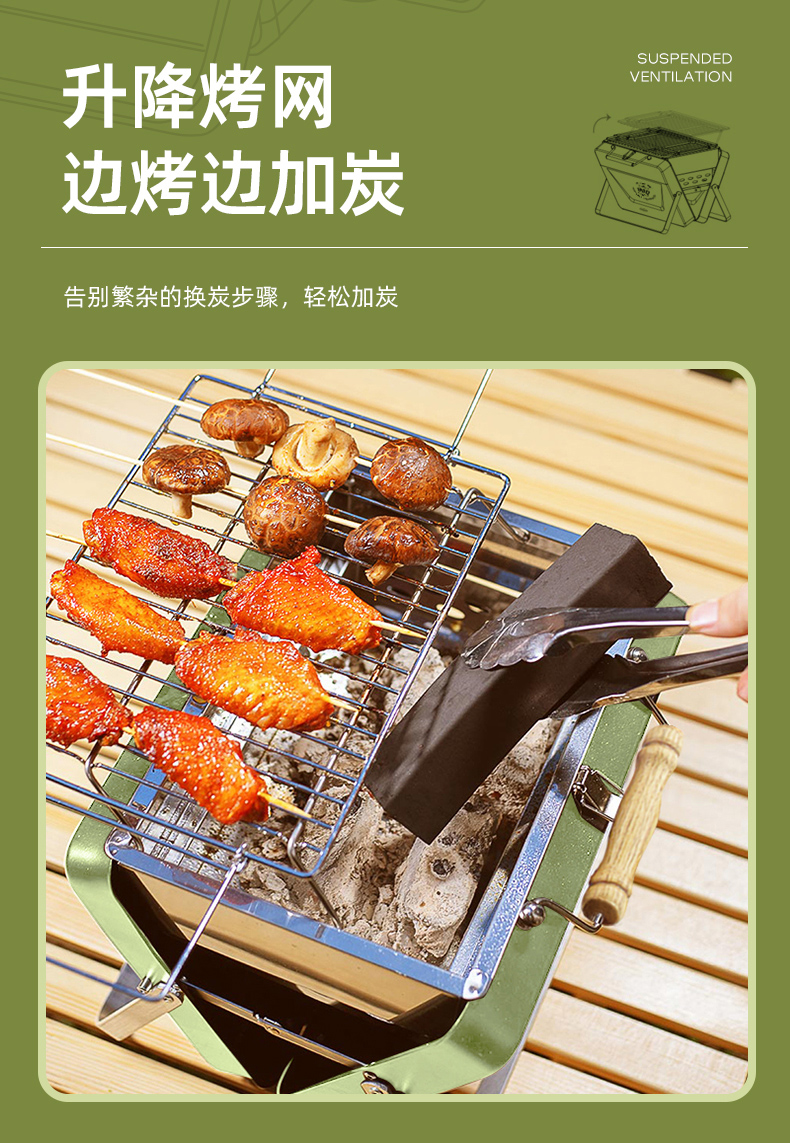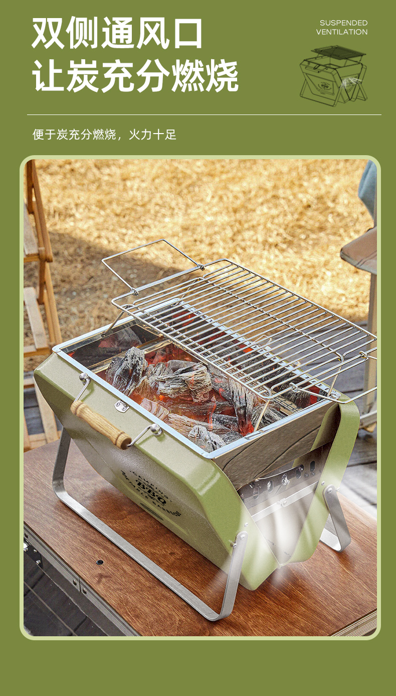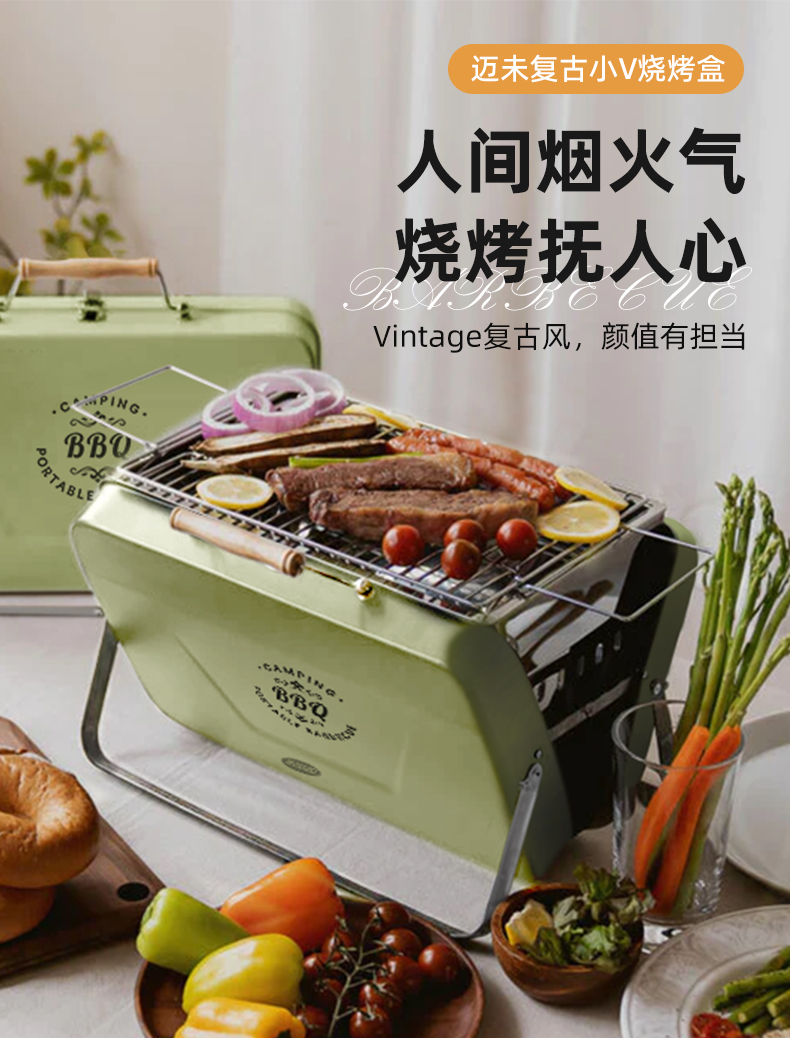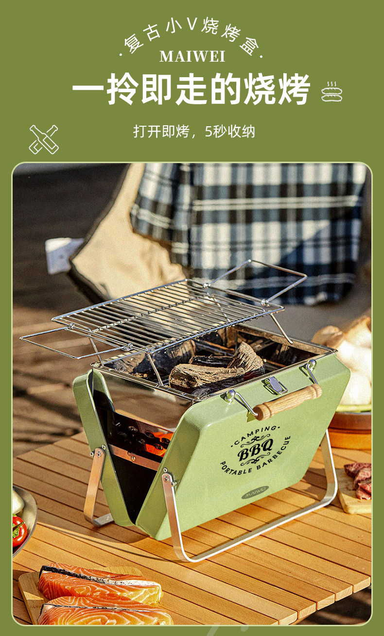 迈未复古折叠烧烤炉 升降烤网 可拆卸式不锈钢碳槽