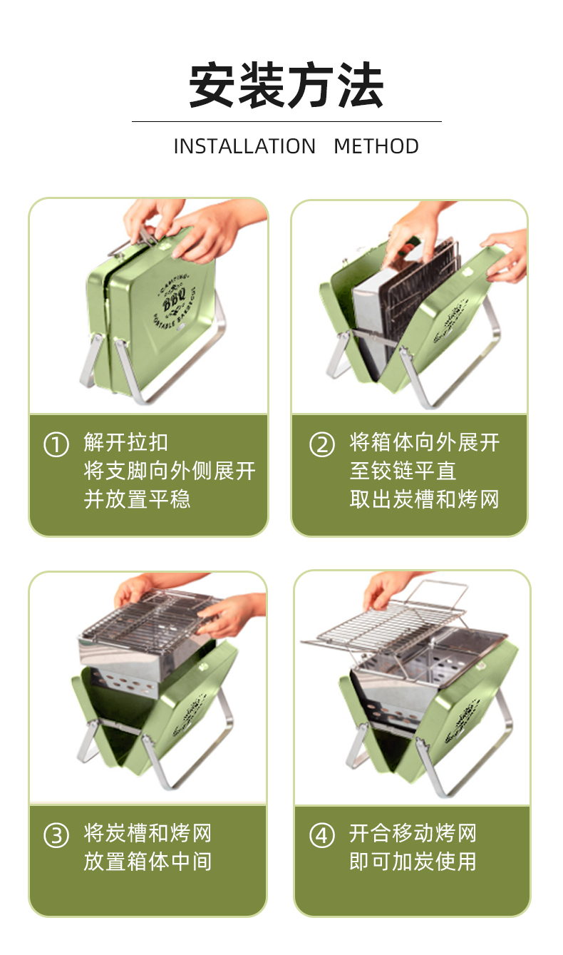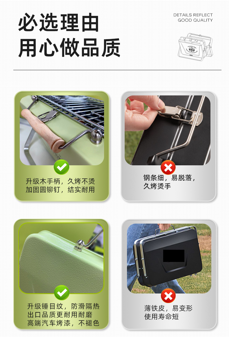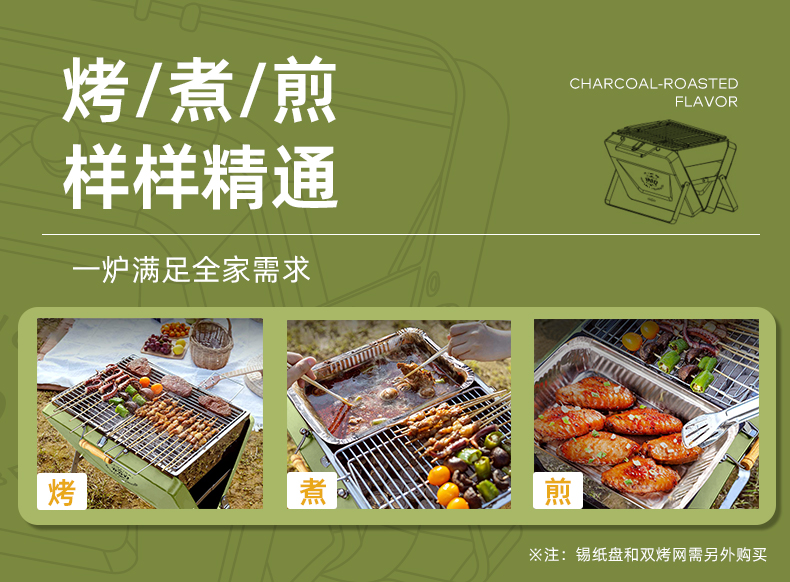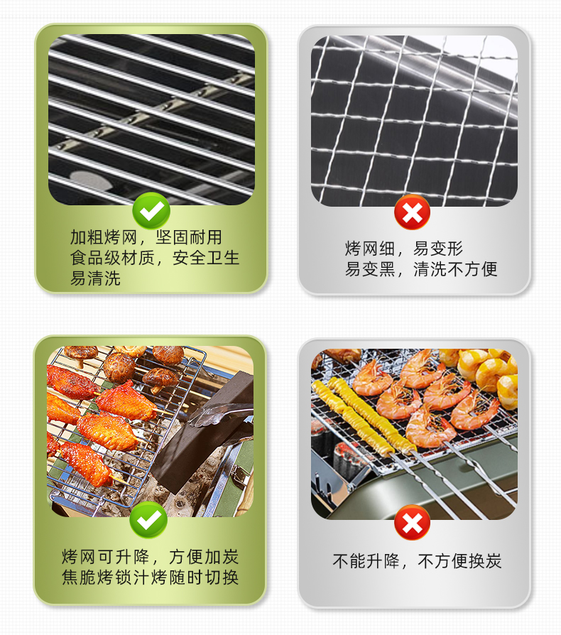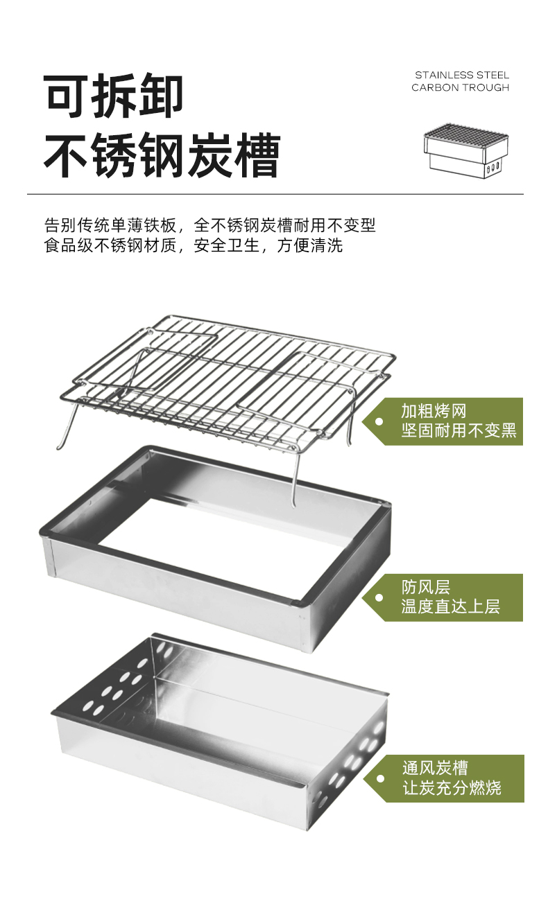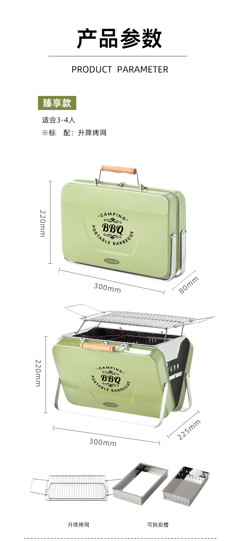 迈未复古折叠烧烤炉 升降烤网 可拆卸式不锈钢碳槽