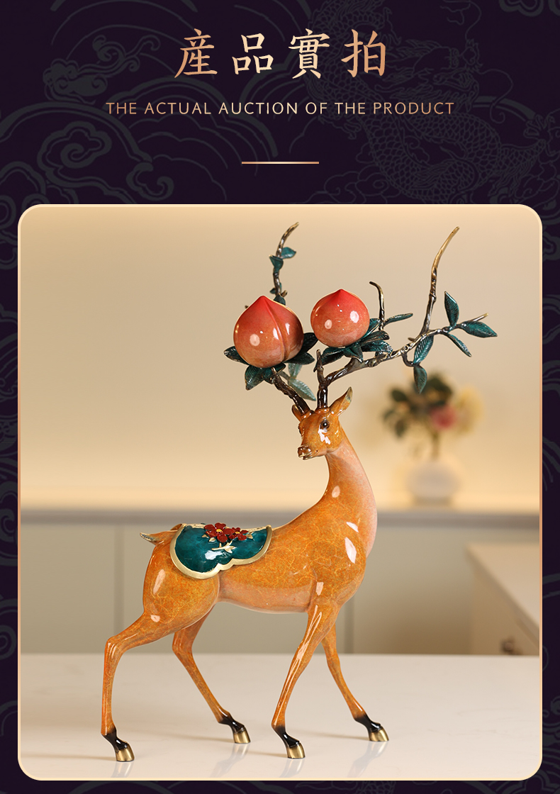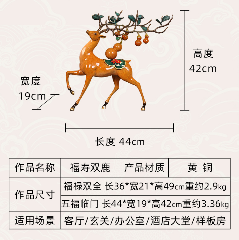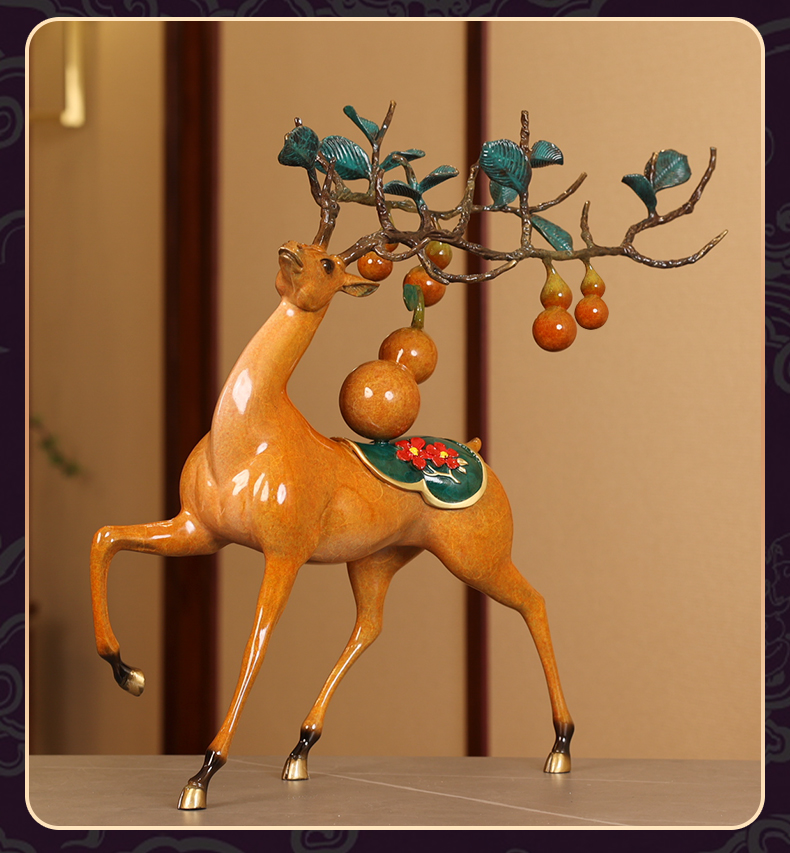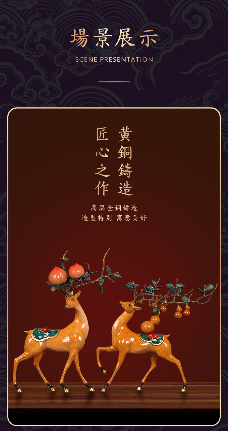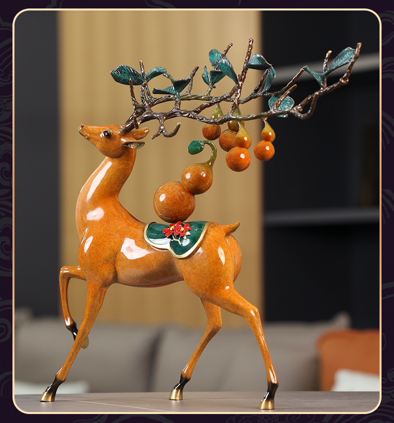E-QK-BJ1220 五福临门大号铜鹿摆件