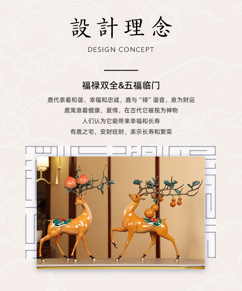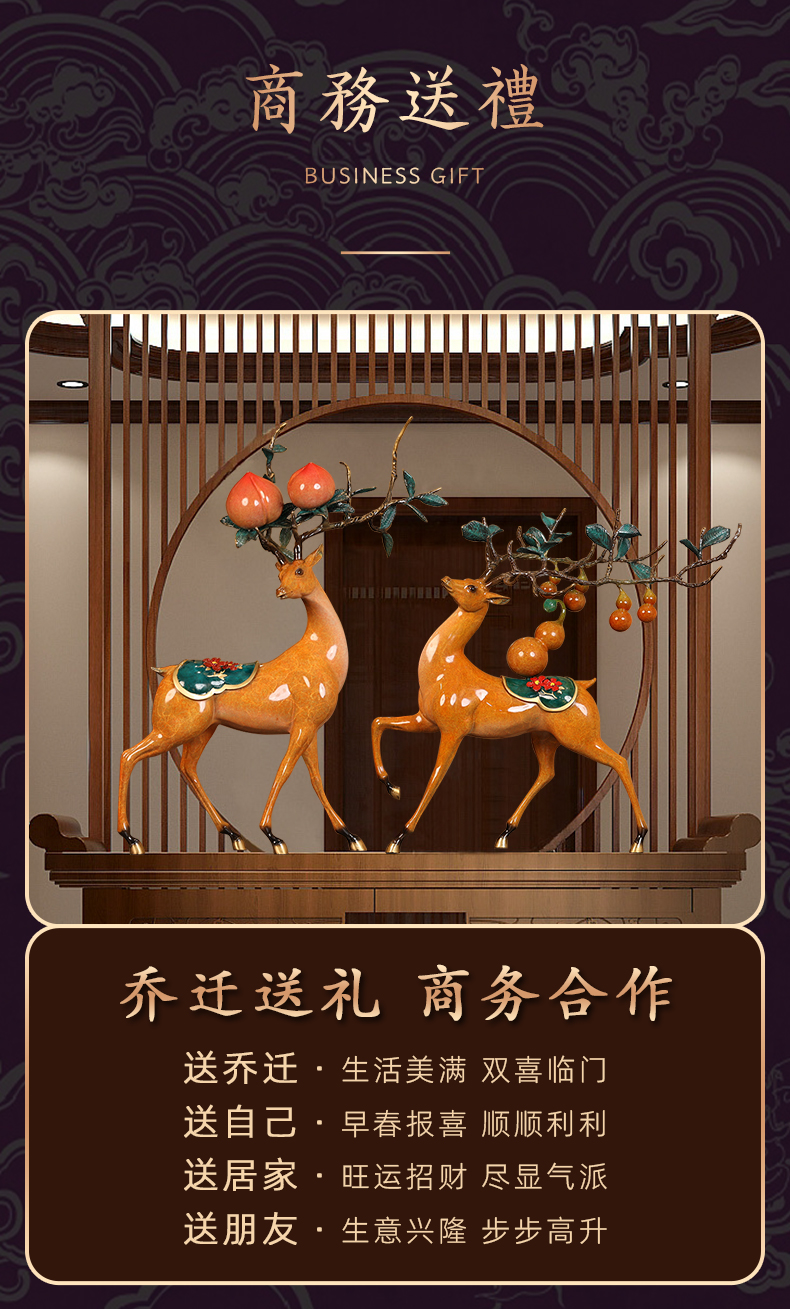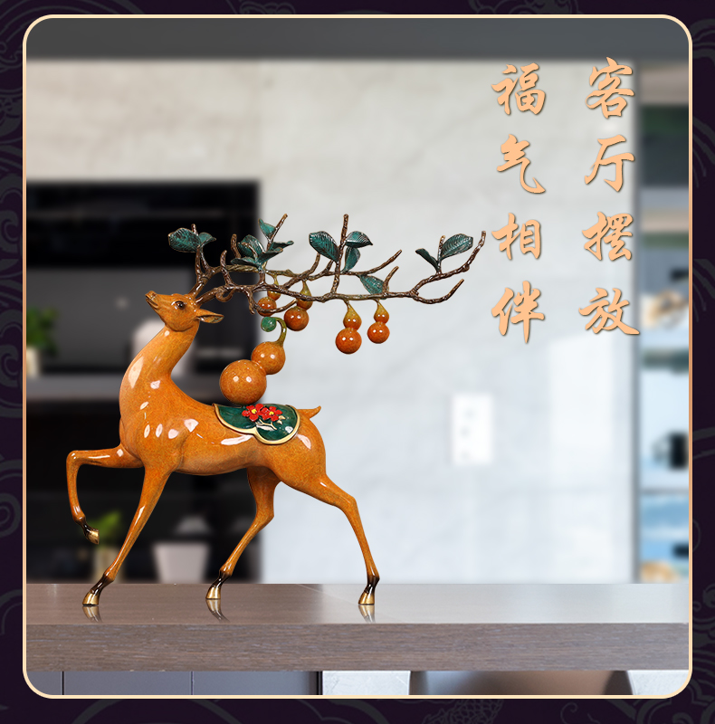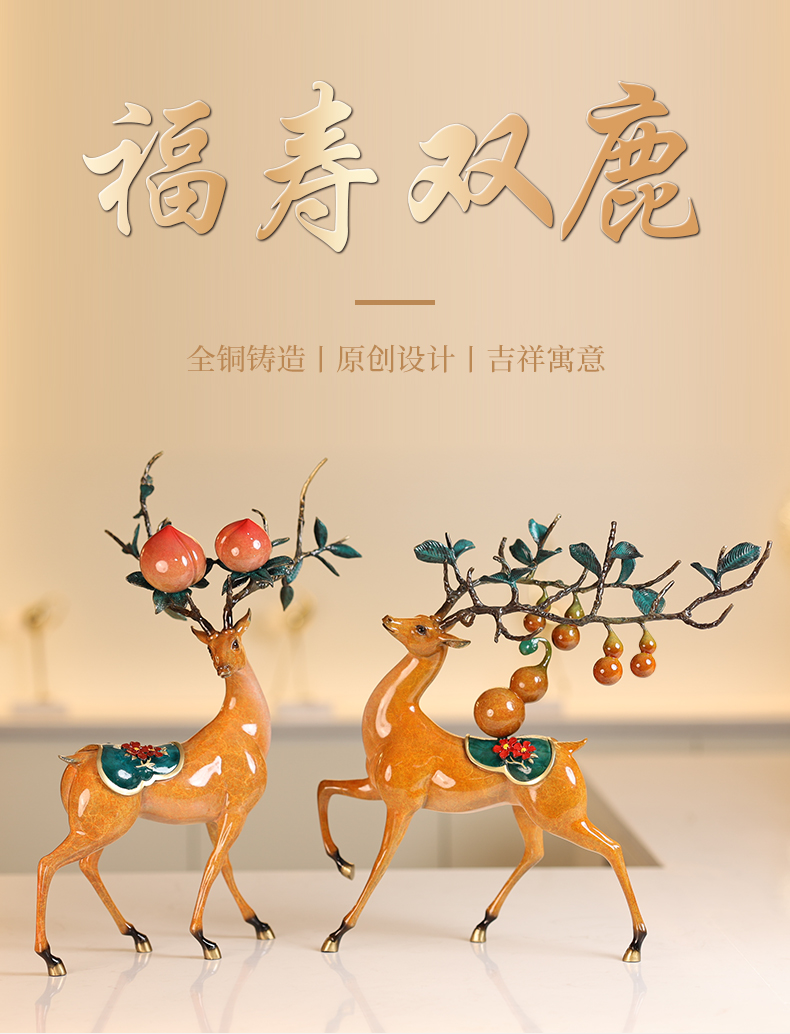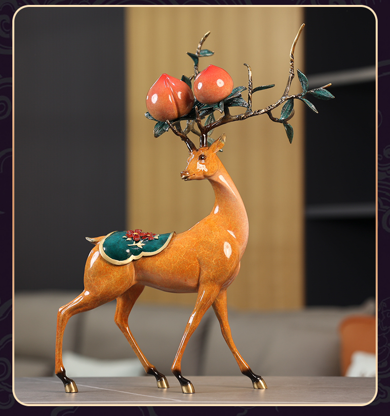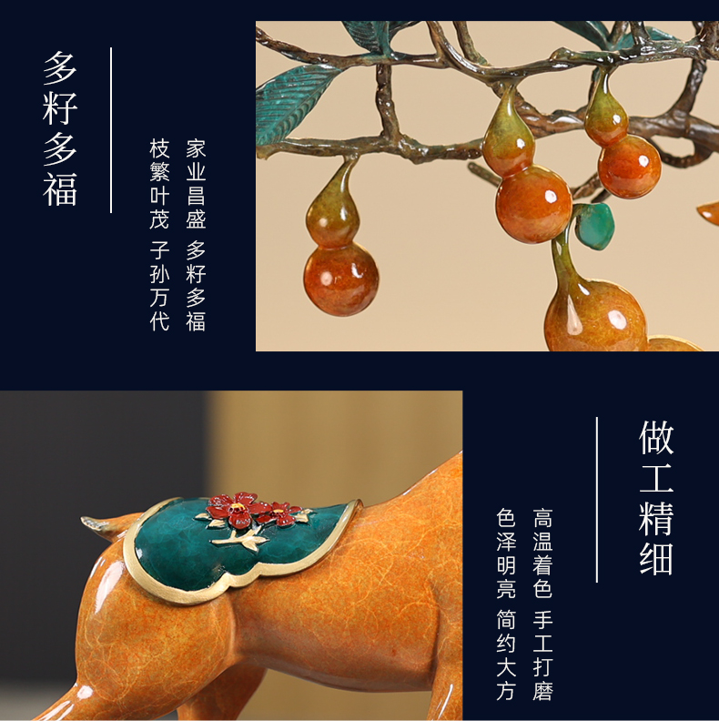 E-QK-BJ1220 五福临门大号铜鹿摆件