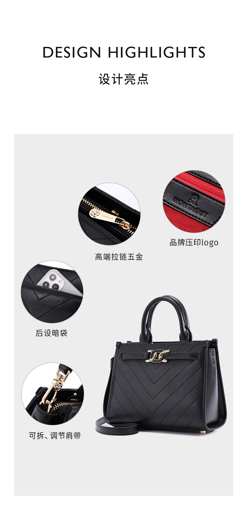 梦特娇新款女士真皮手提包时尚斜挎包潮流单肩包