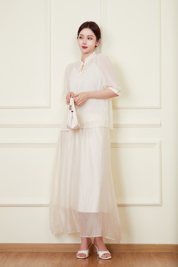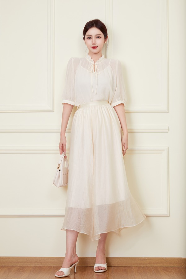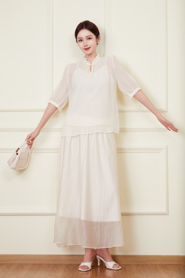 ANSUABEL 米色肌理感衬衣半裙套装 20307