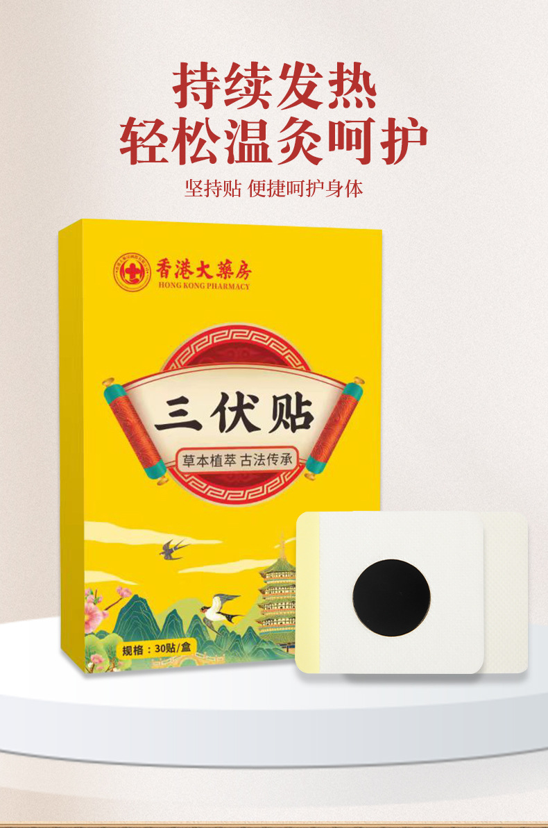 「买2送1!单盒30贴」香港大药房三伏贴 艾灸贴温灸贴肚脐贴膏药贴夏季三九贴 艾草贴