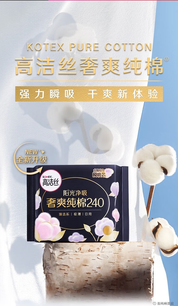 【自营】 高洁丝 卫生巾日用奢爽纯棉姨妈巾臻选 甄选 56片组合装(日用 夜用)