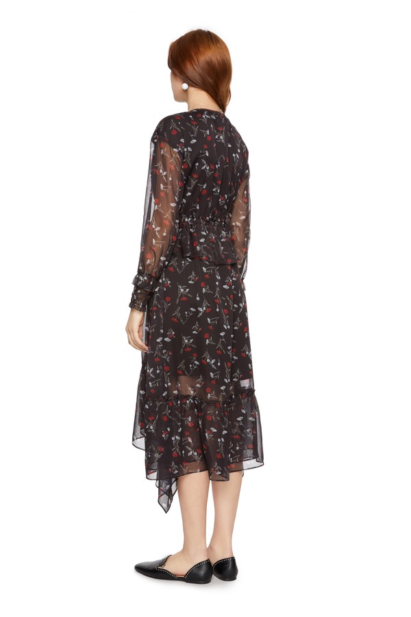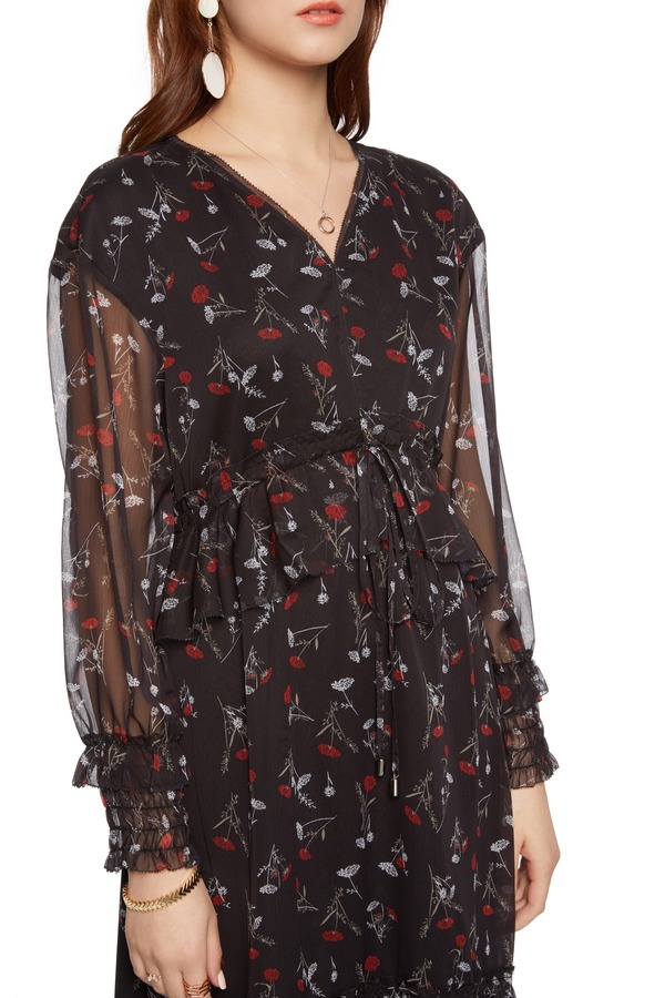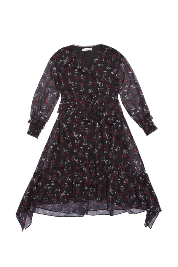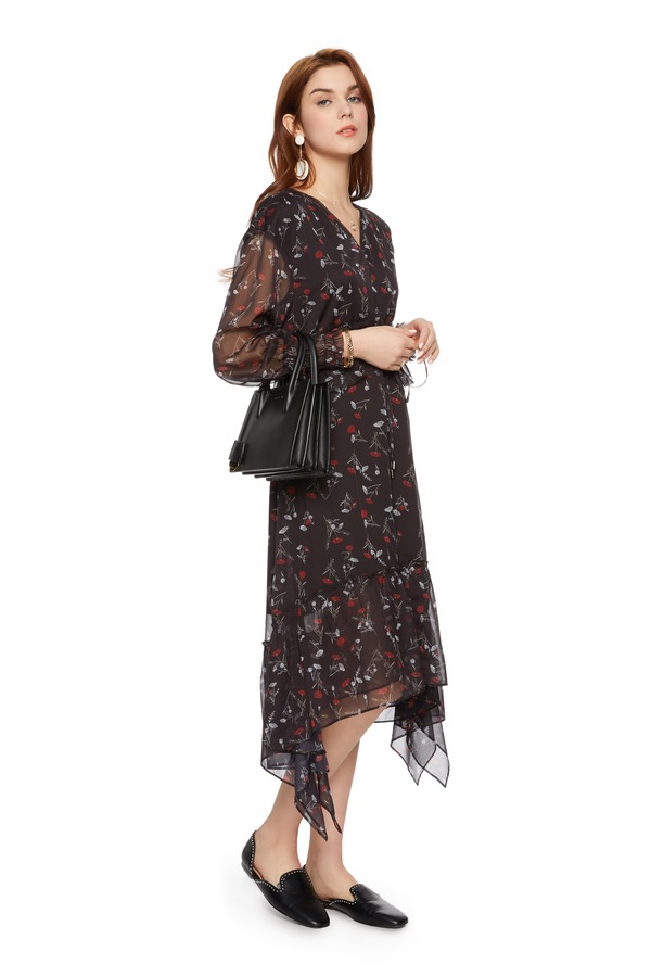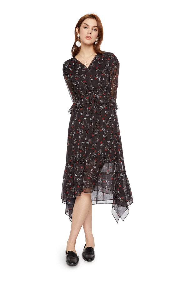 SUMMER & SAGE 花朵饰不规则V领连衣裙 5595