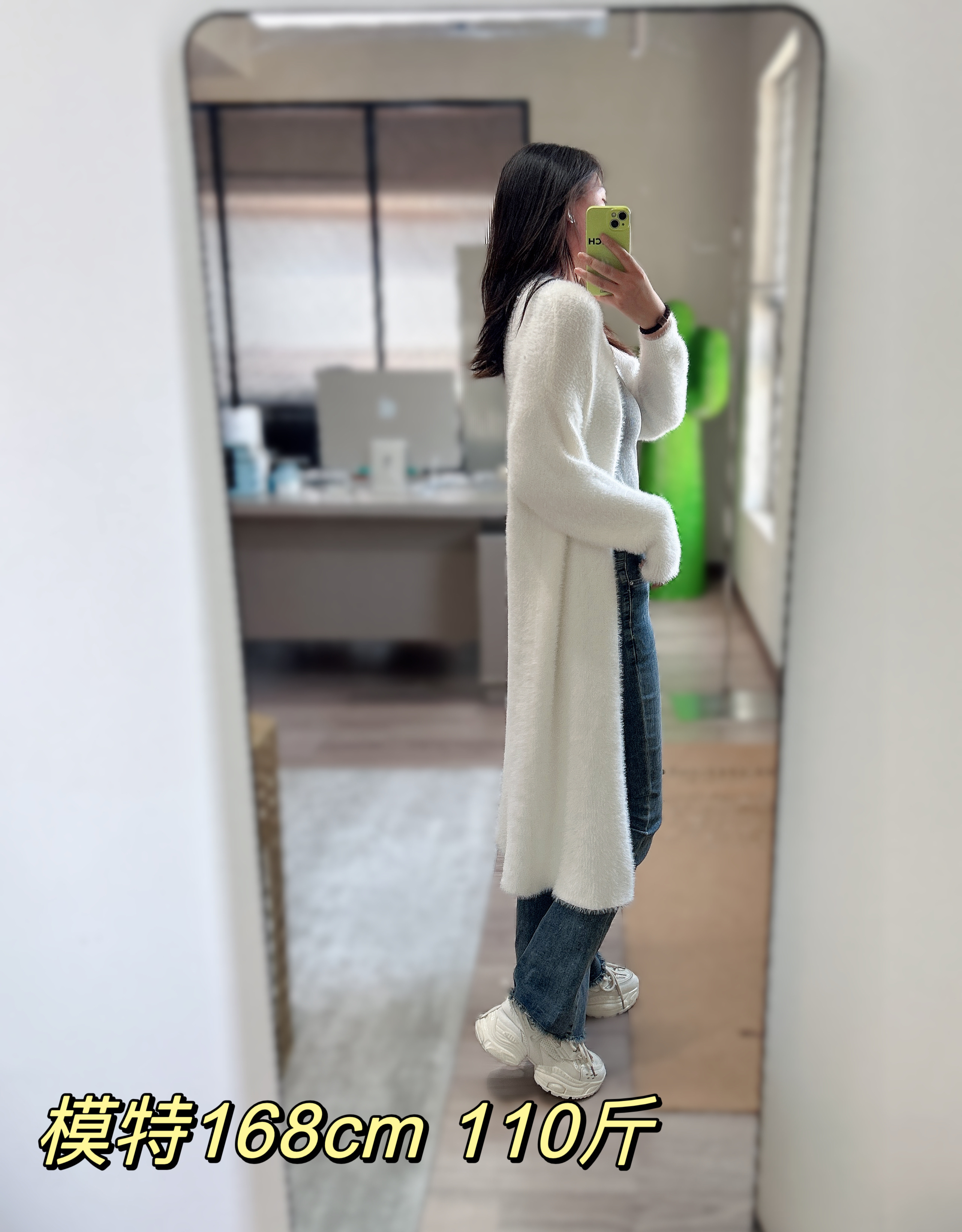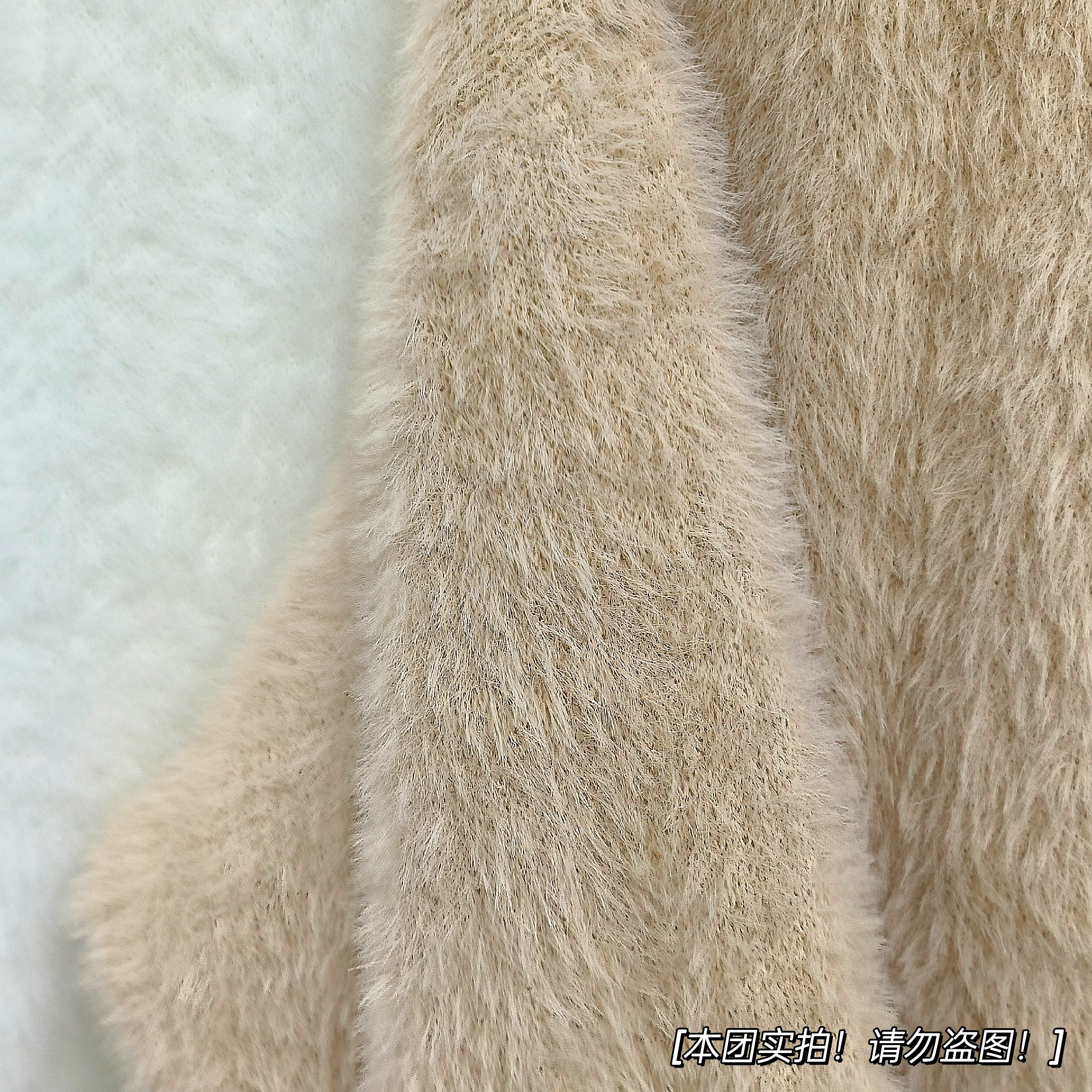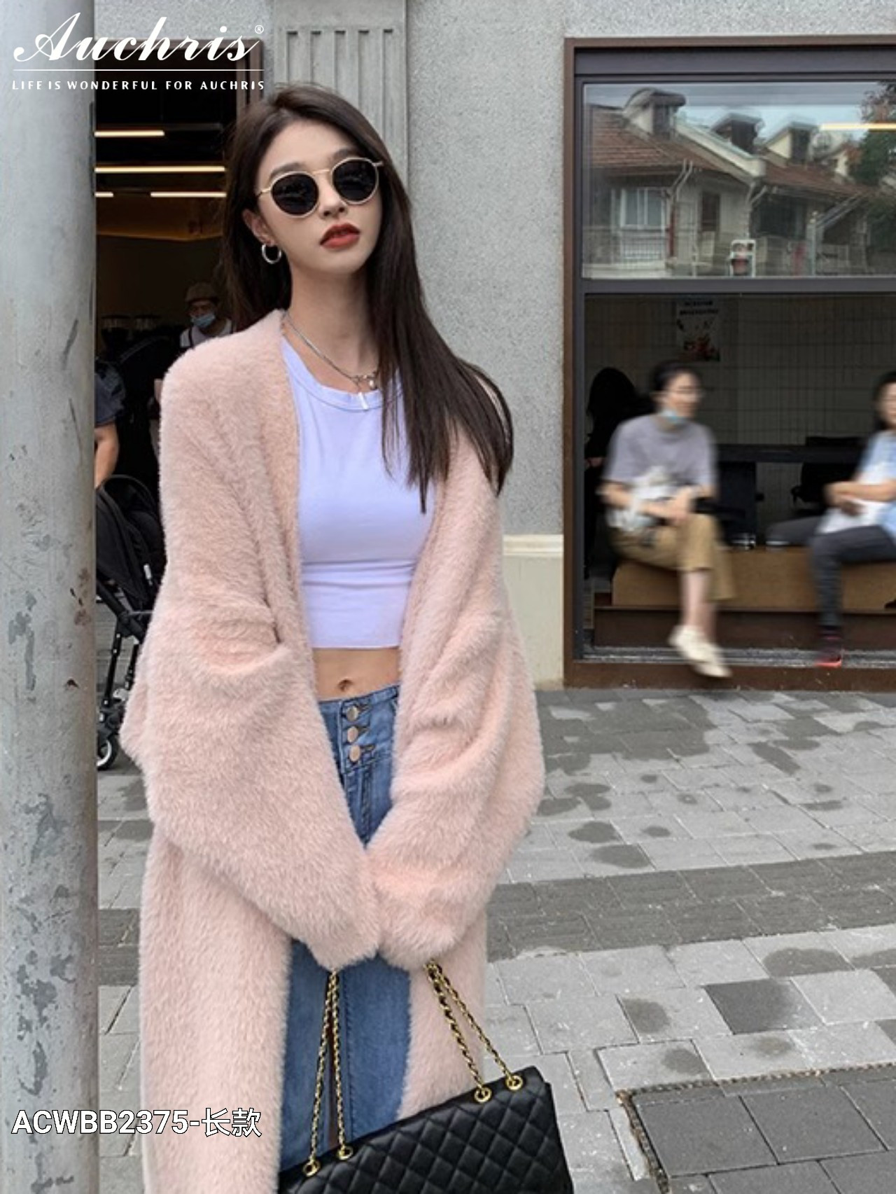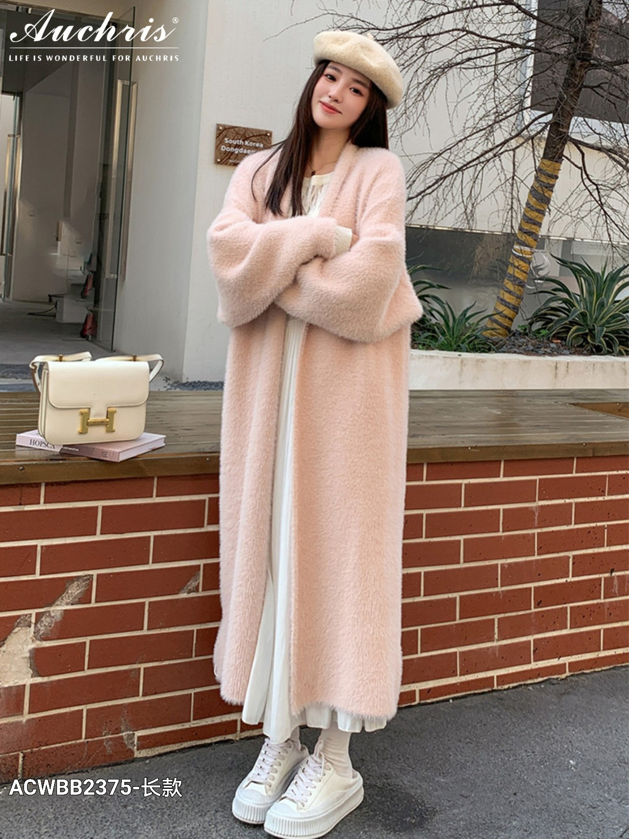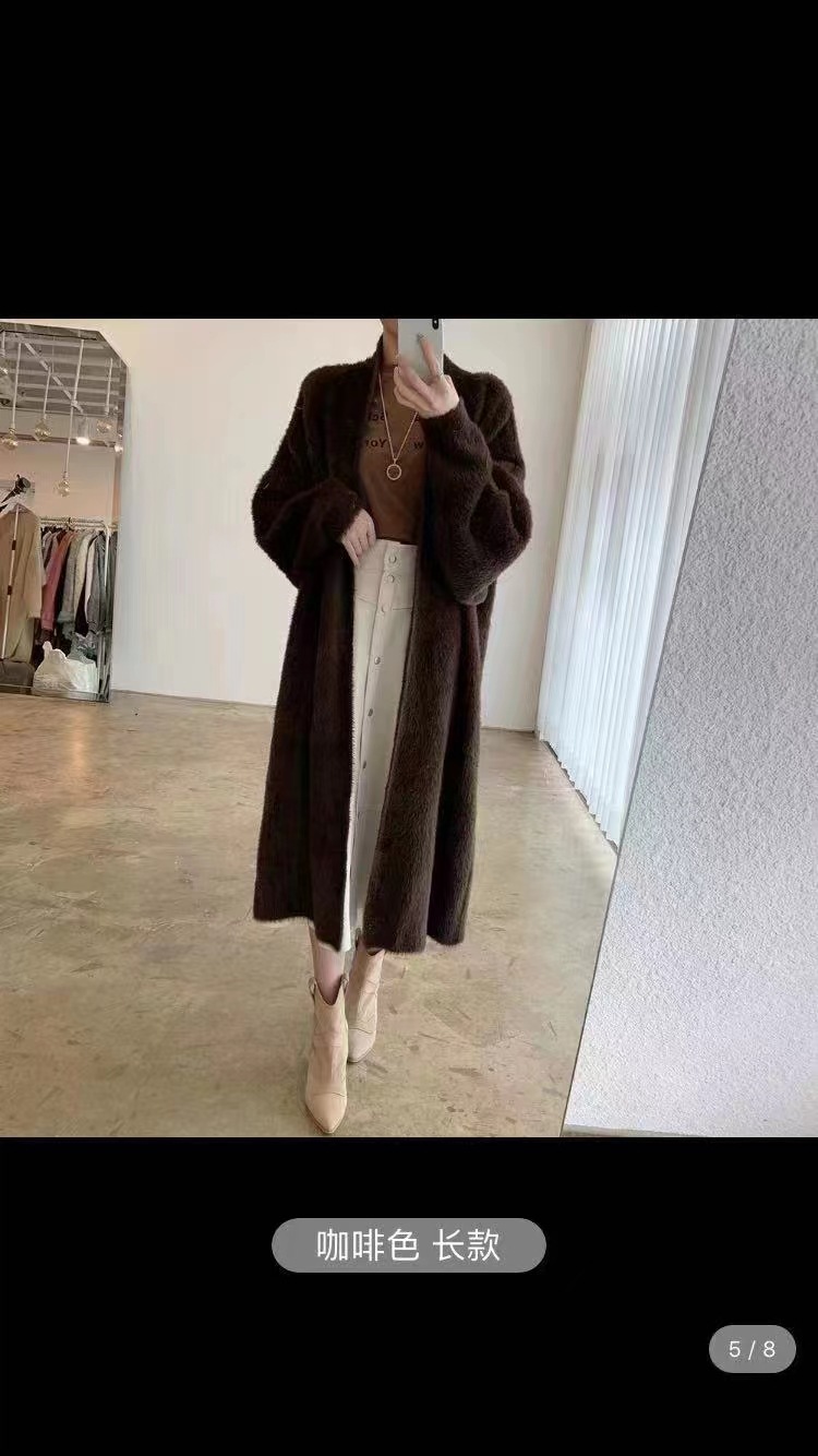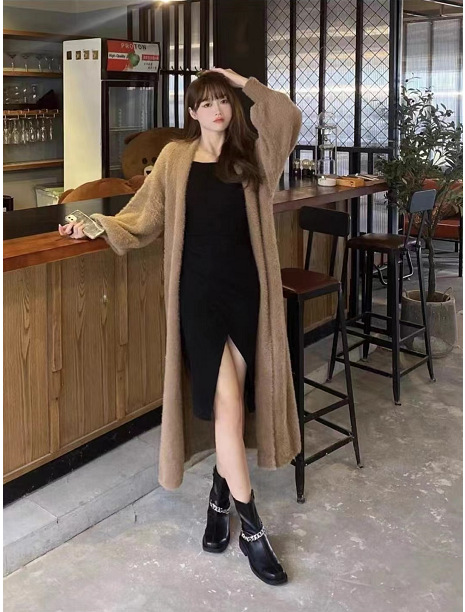 【商品名称】慵懒风中长款过膝仿水貂绒毛衣外套