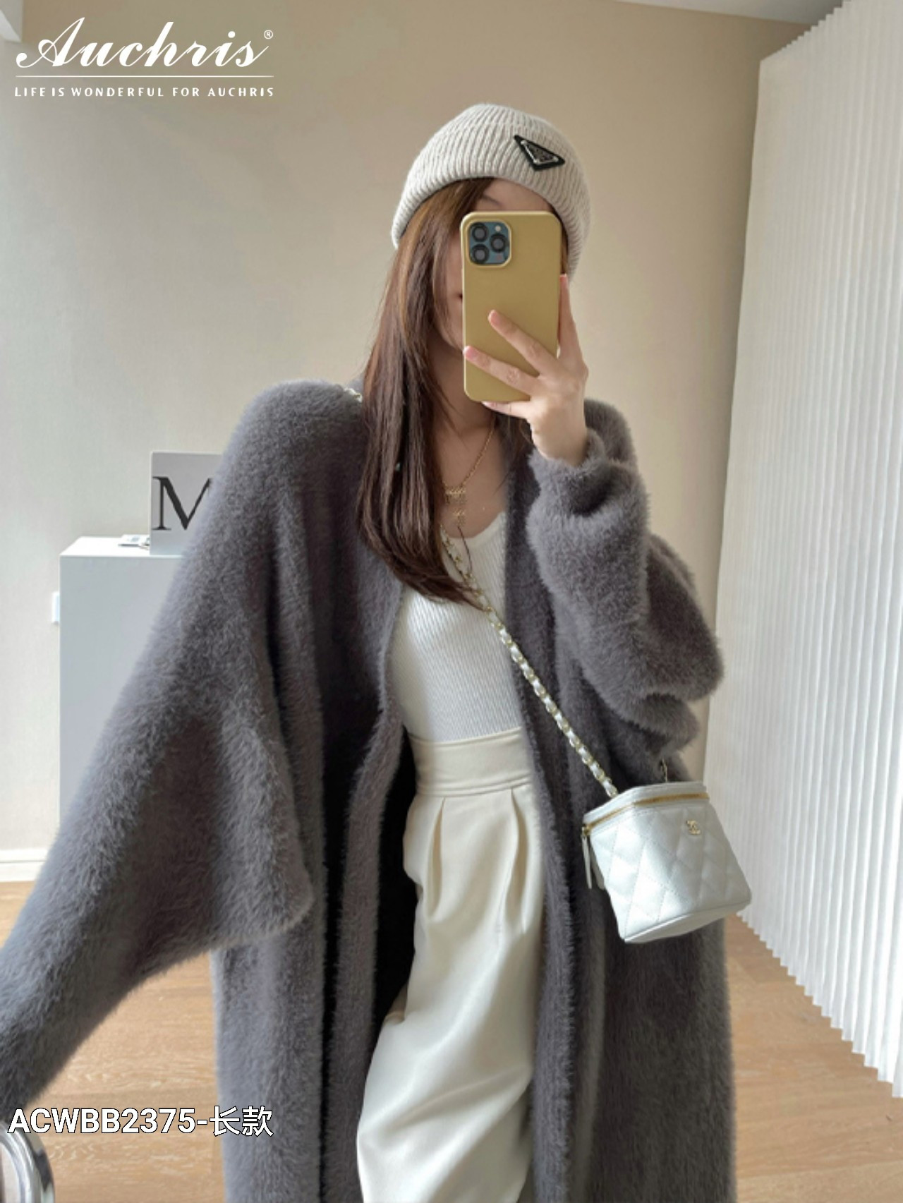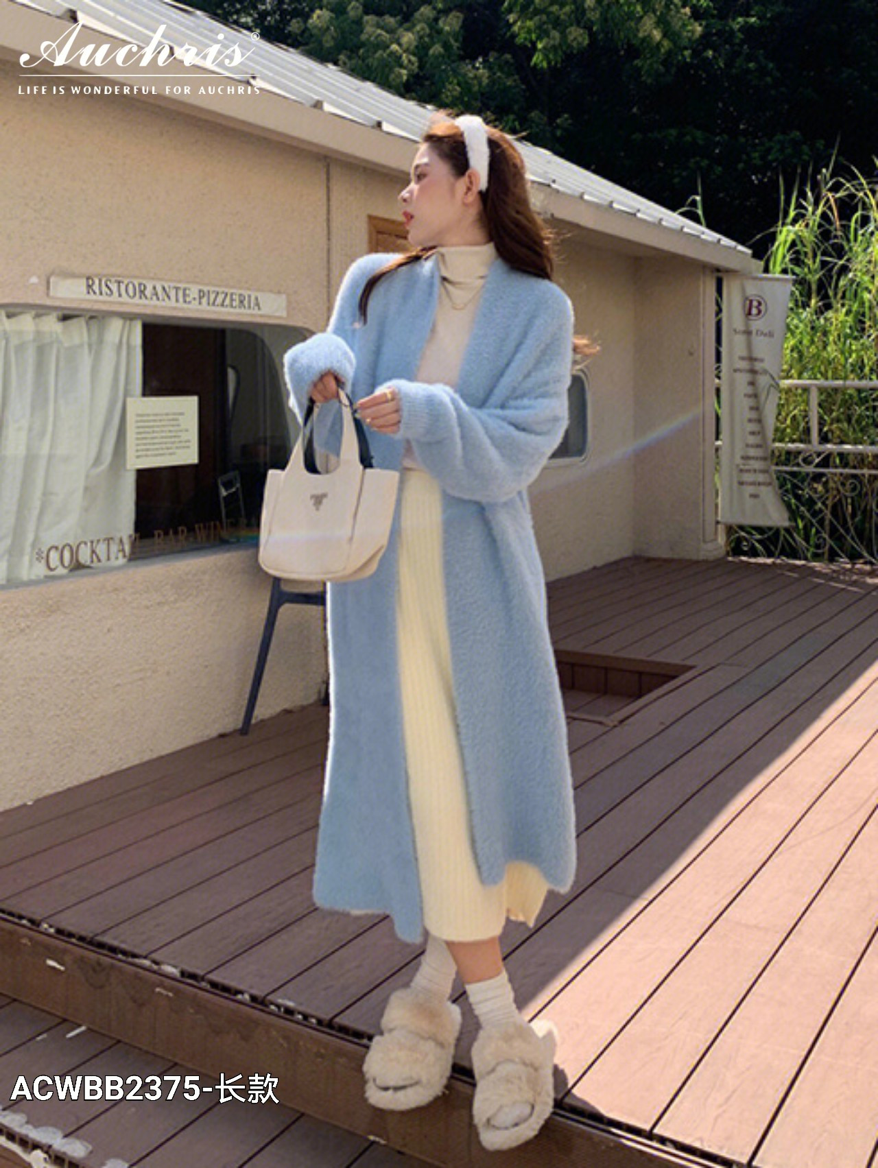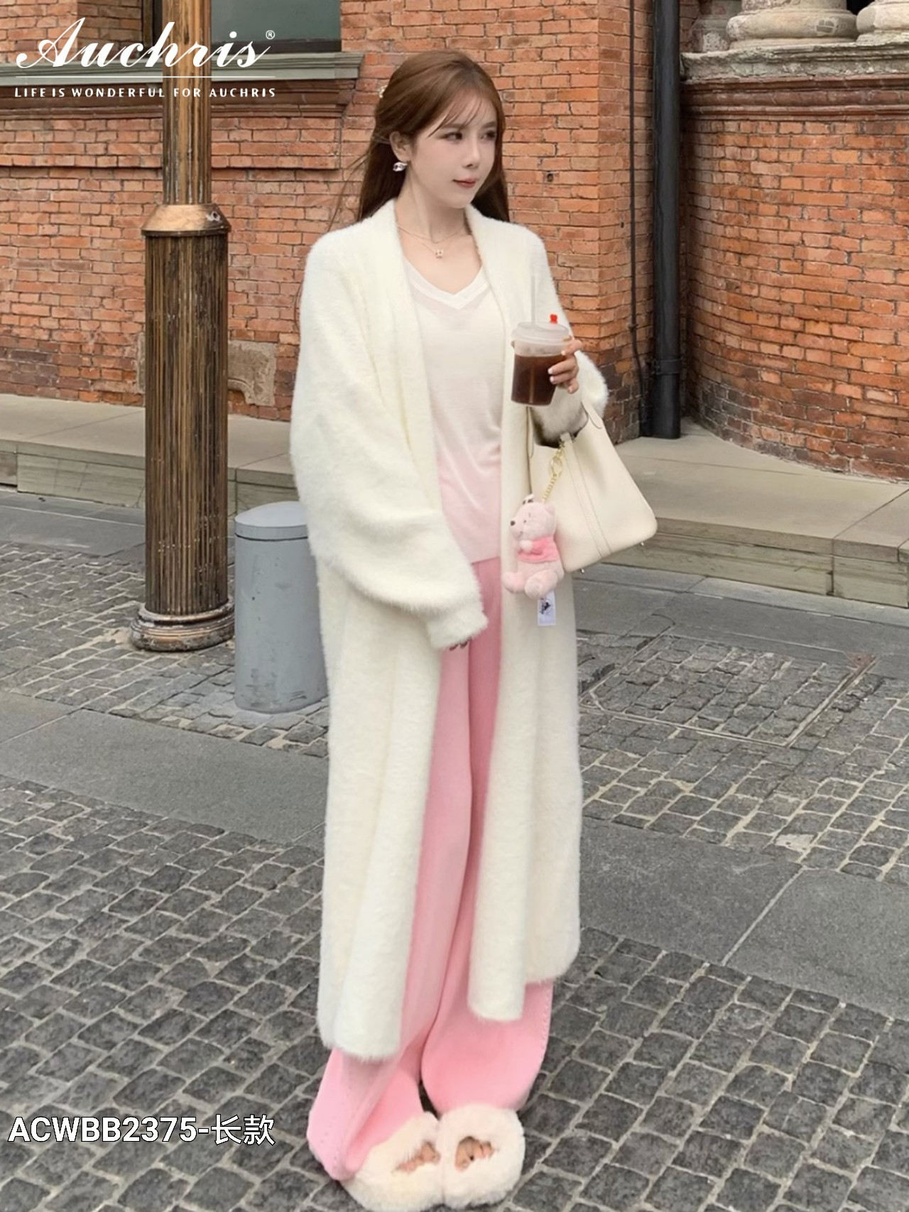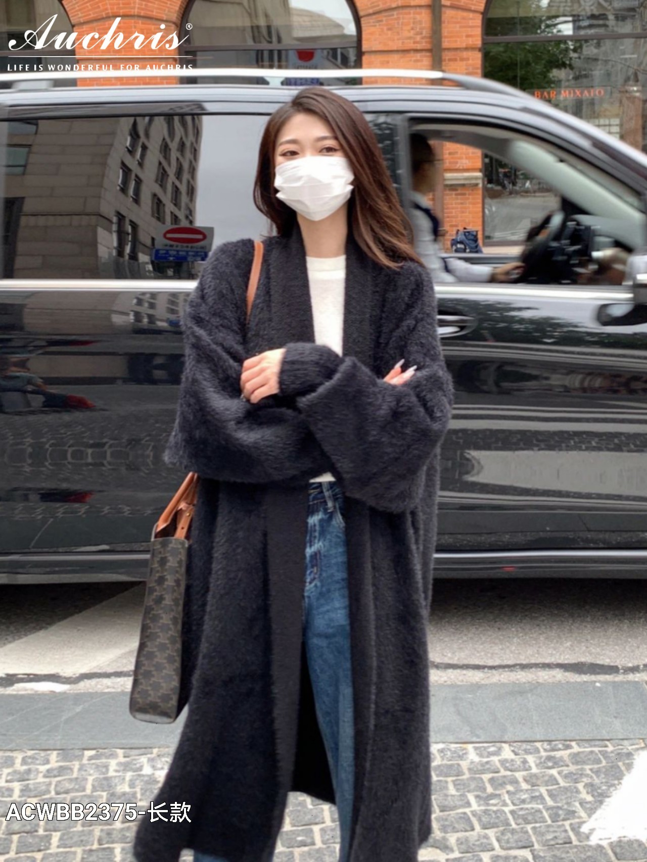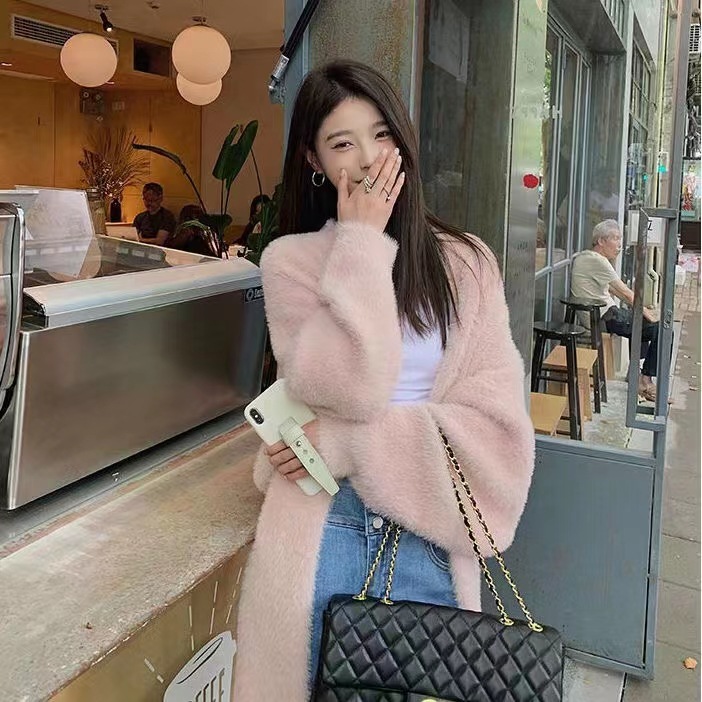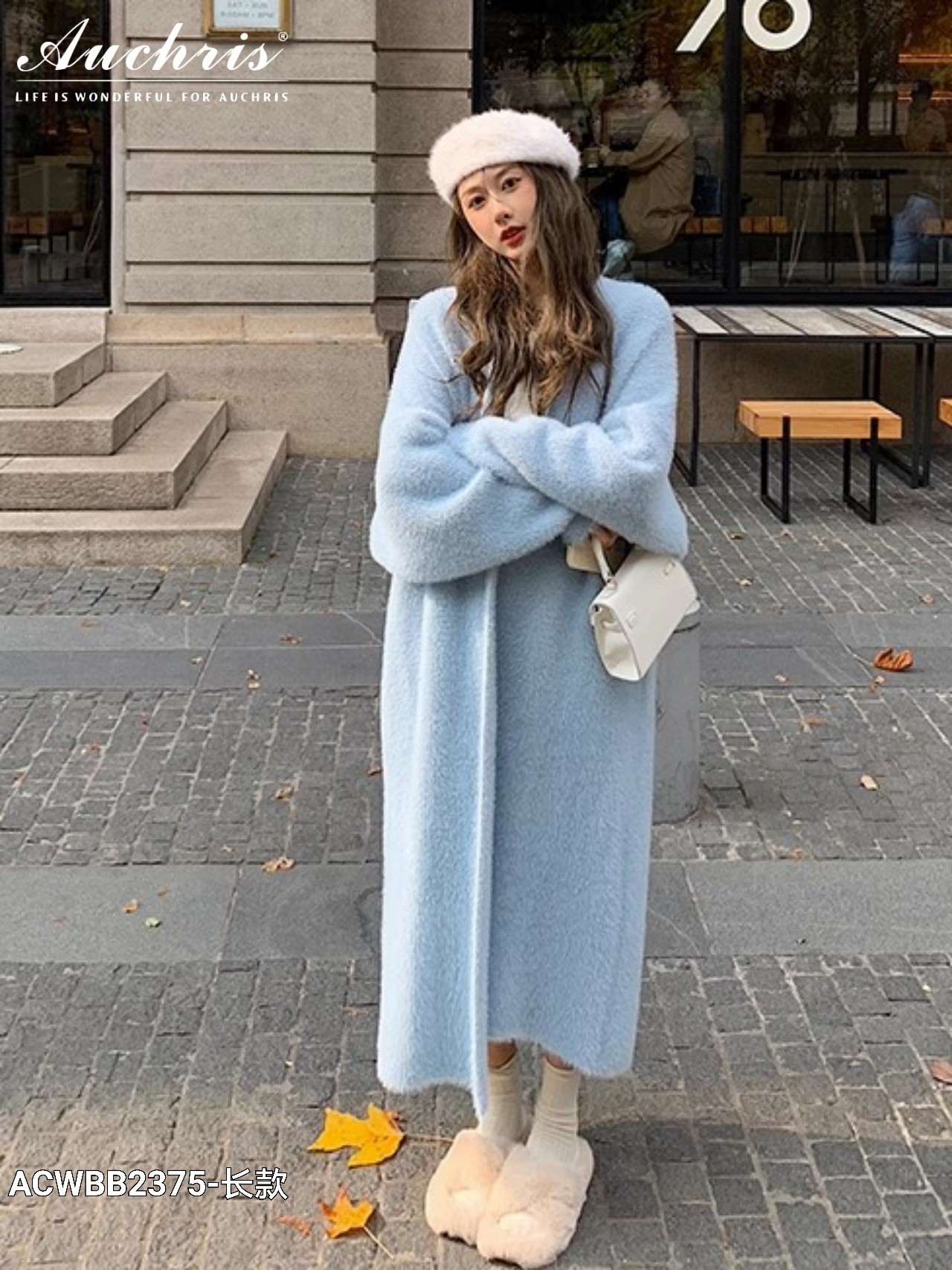 【商品名称】慵懒风中长款过膝仿水貂绒毛衣外套