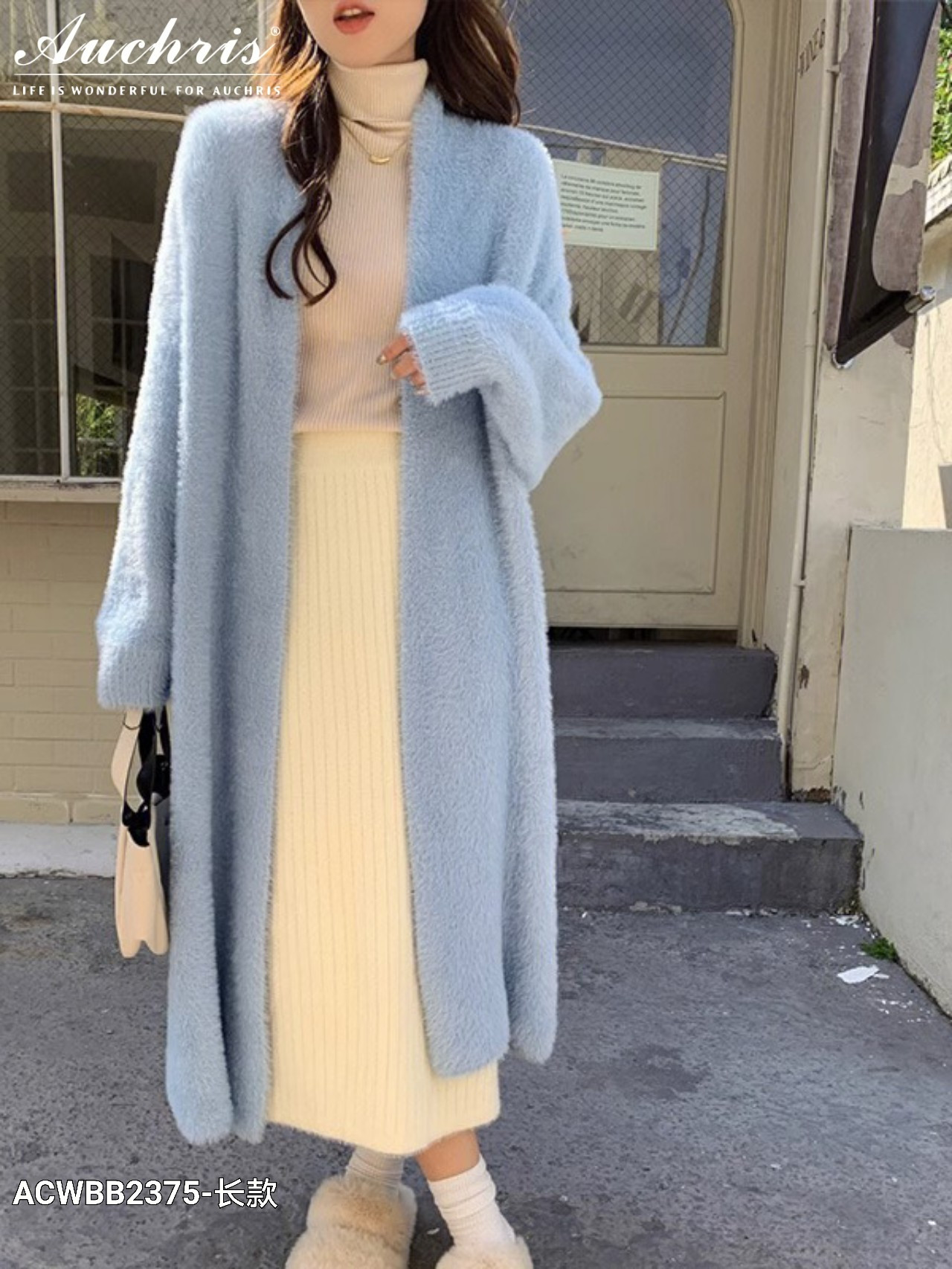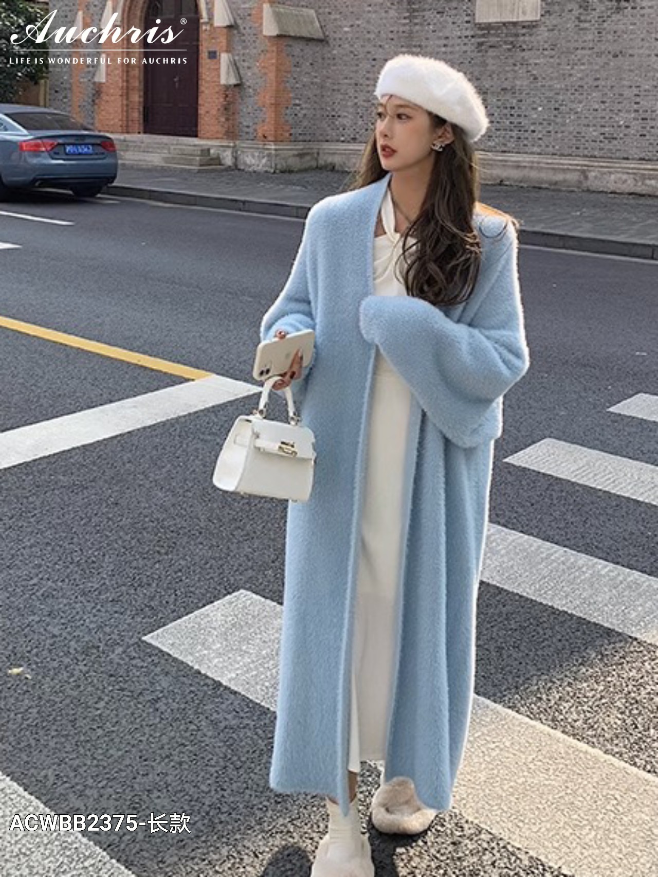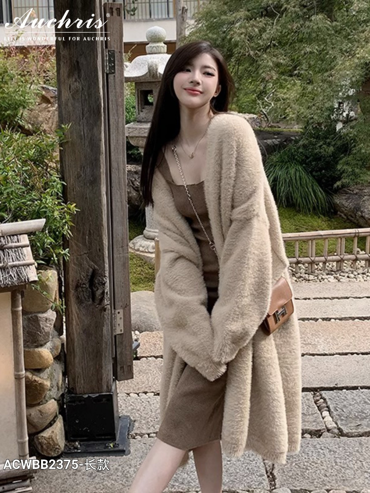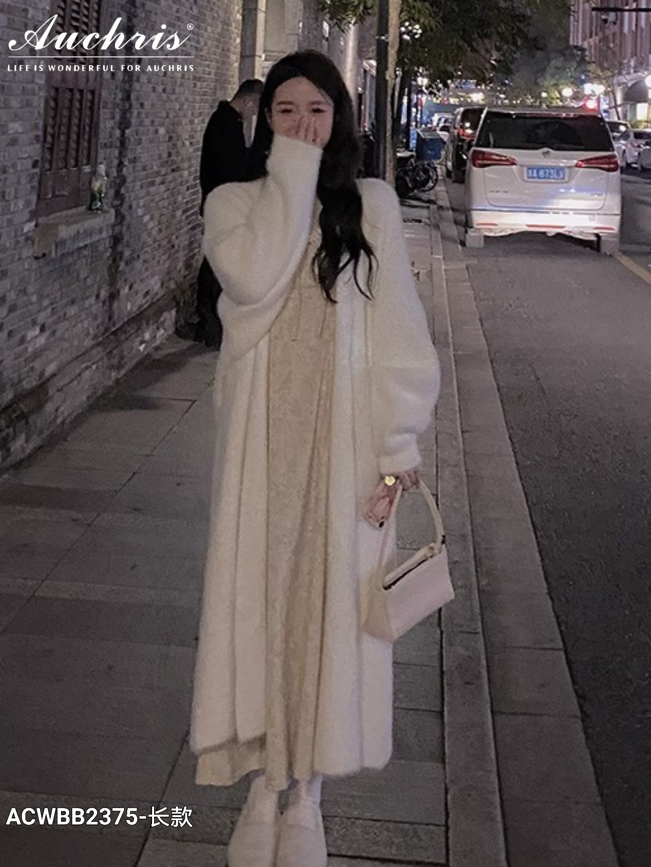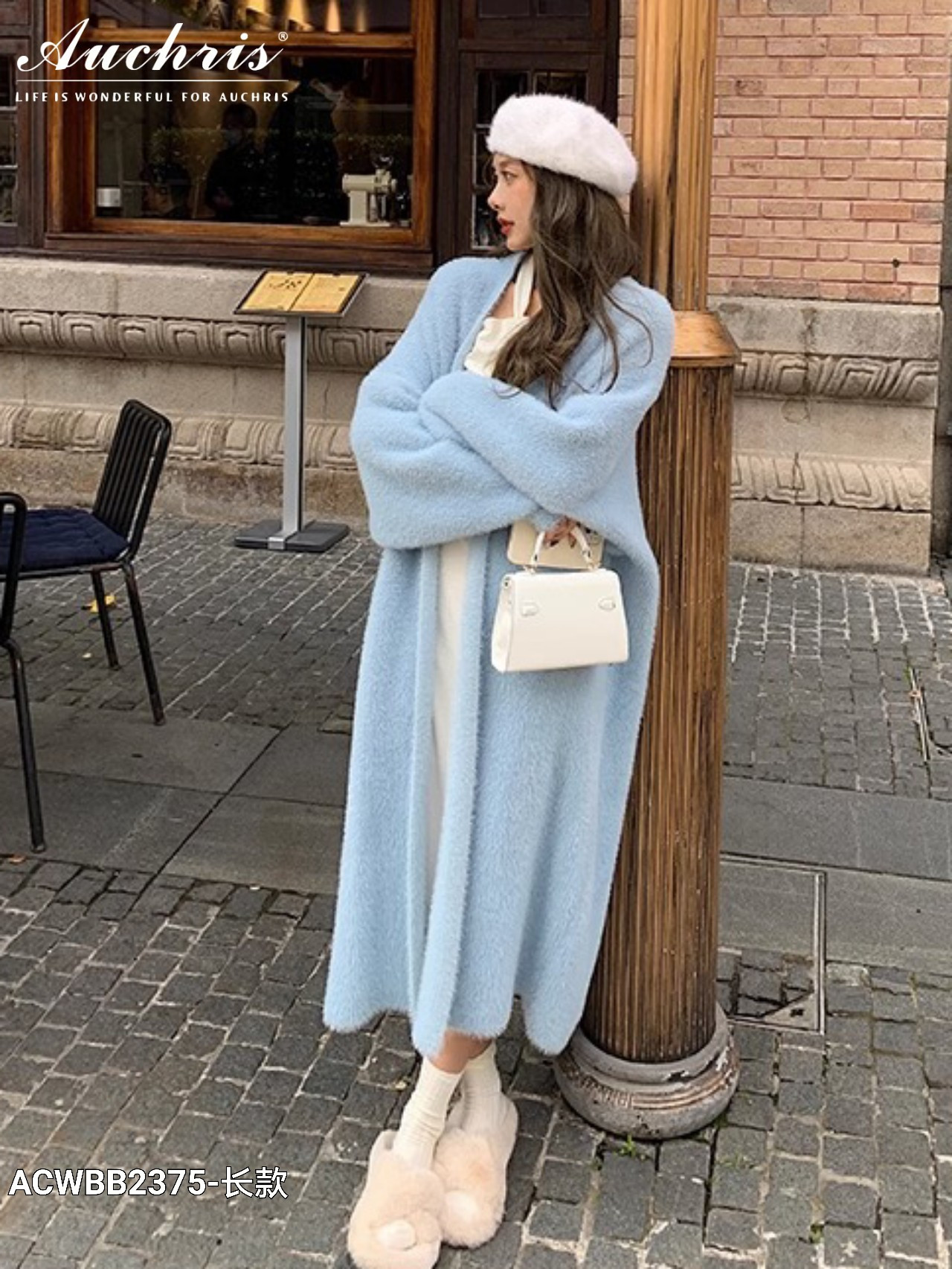 【商品名称】慵懒风中长款过膝仿水貂绒毛衣外套